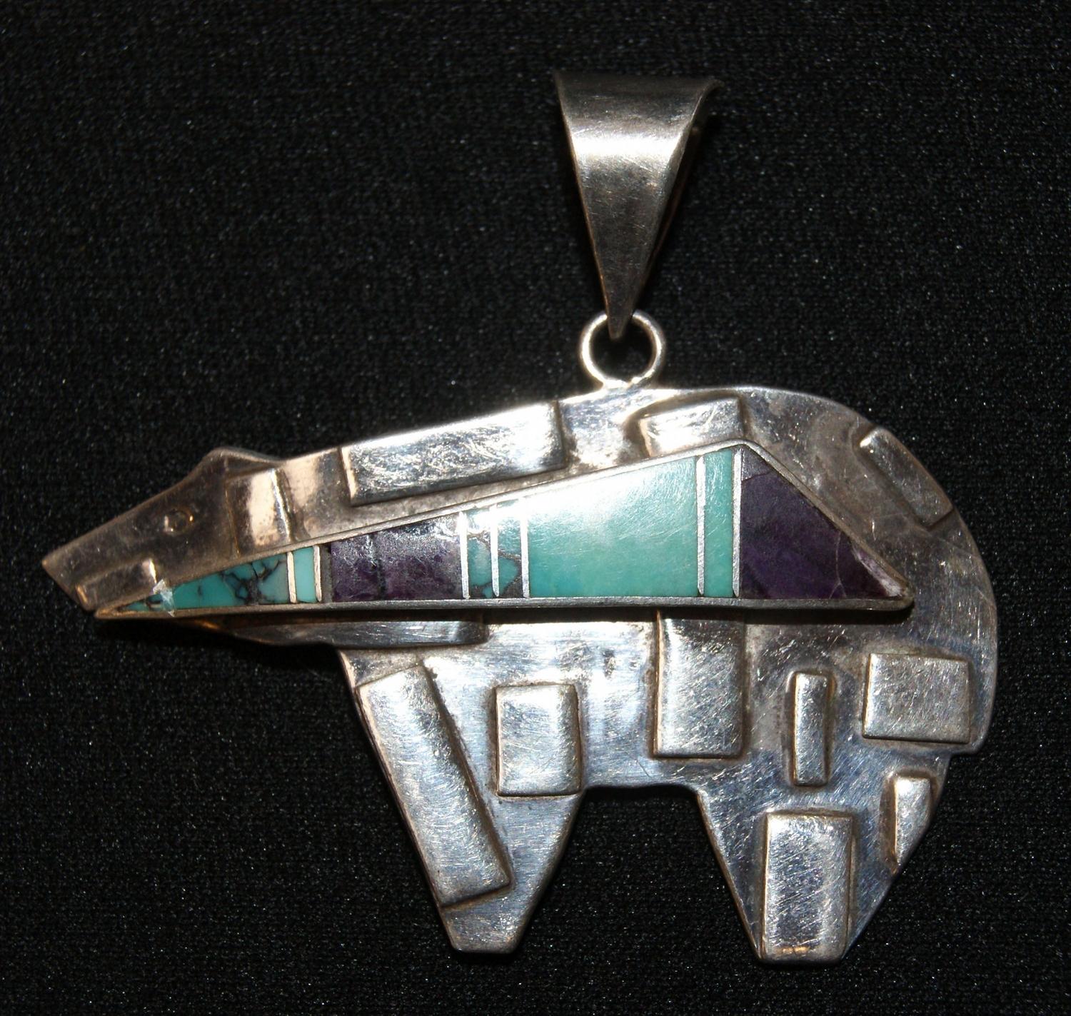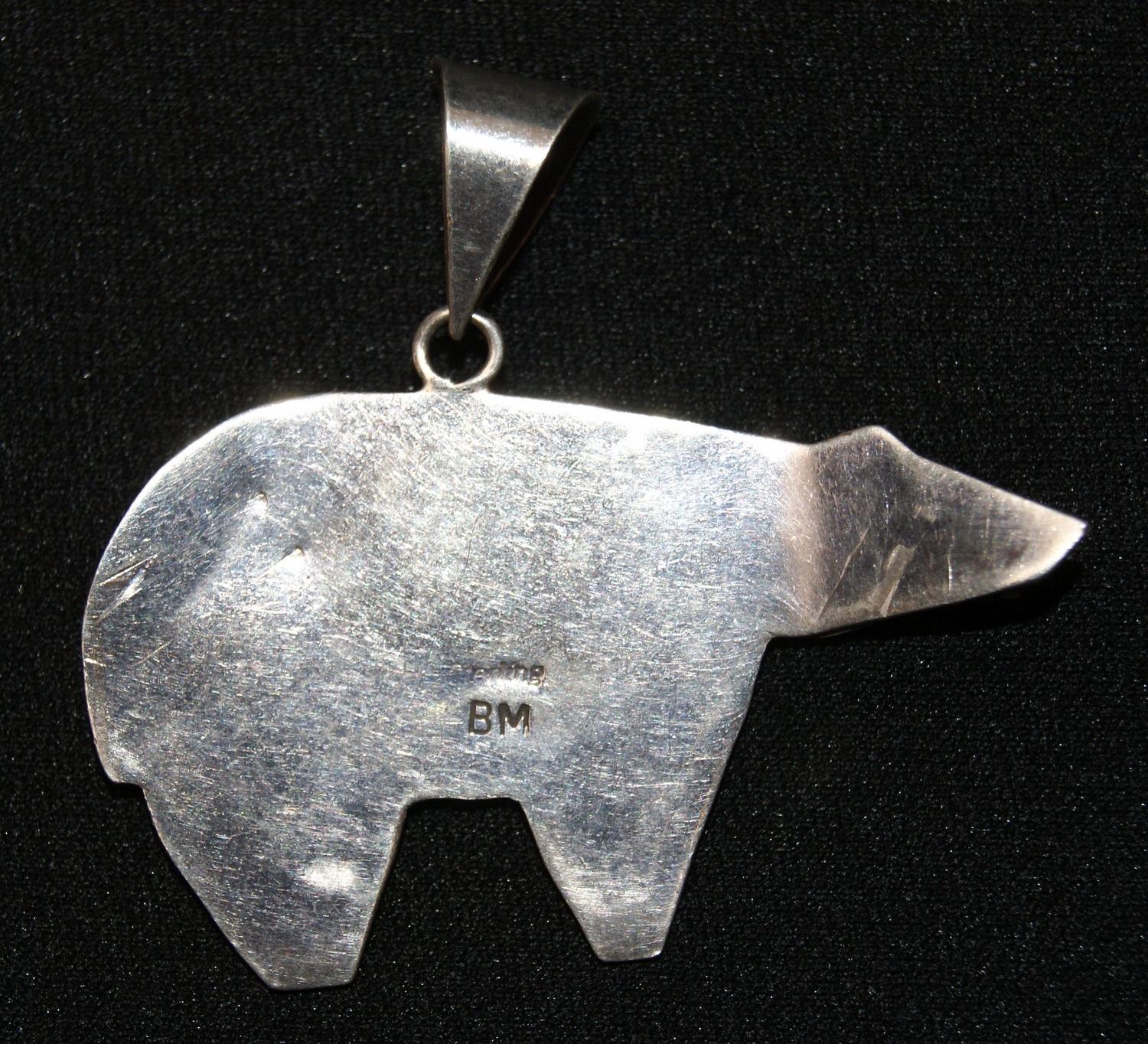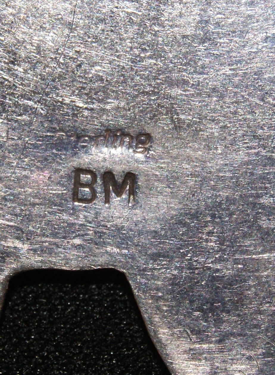 sterling with turquoise & stone inlay, marked B M, 1.75" x2"