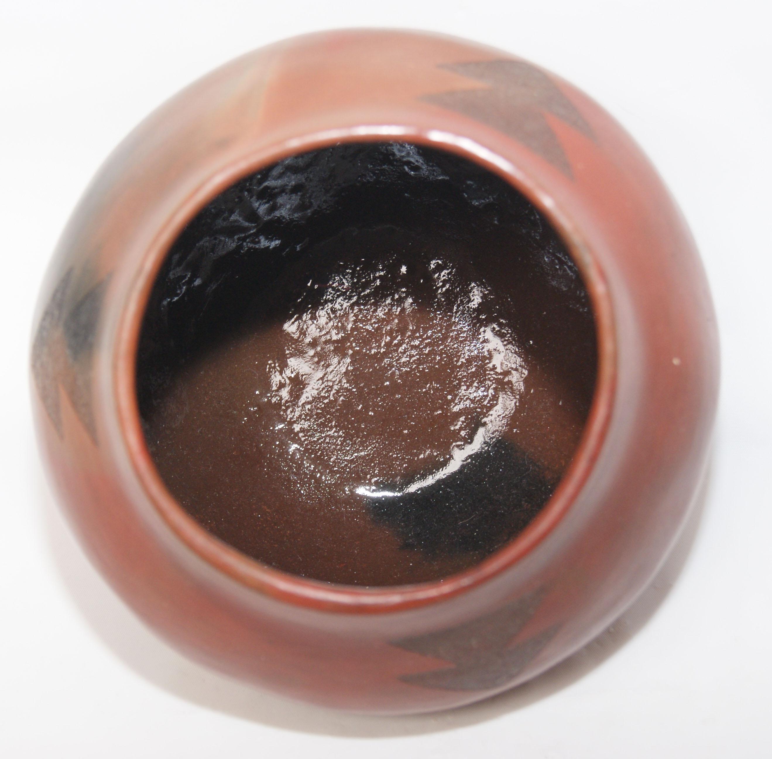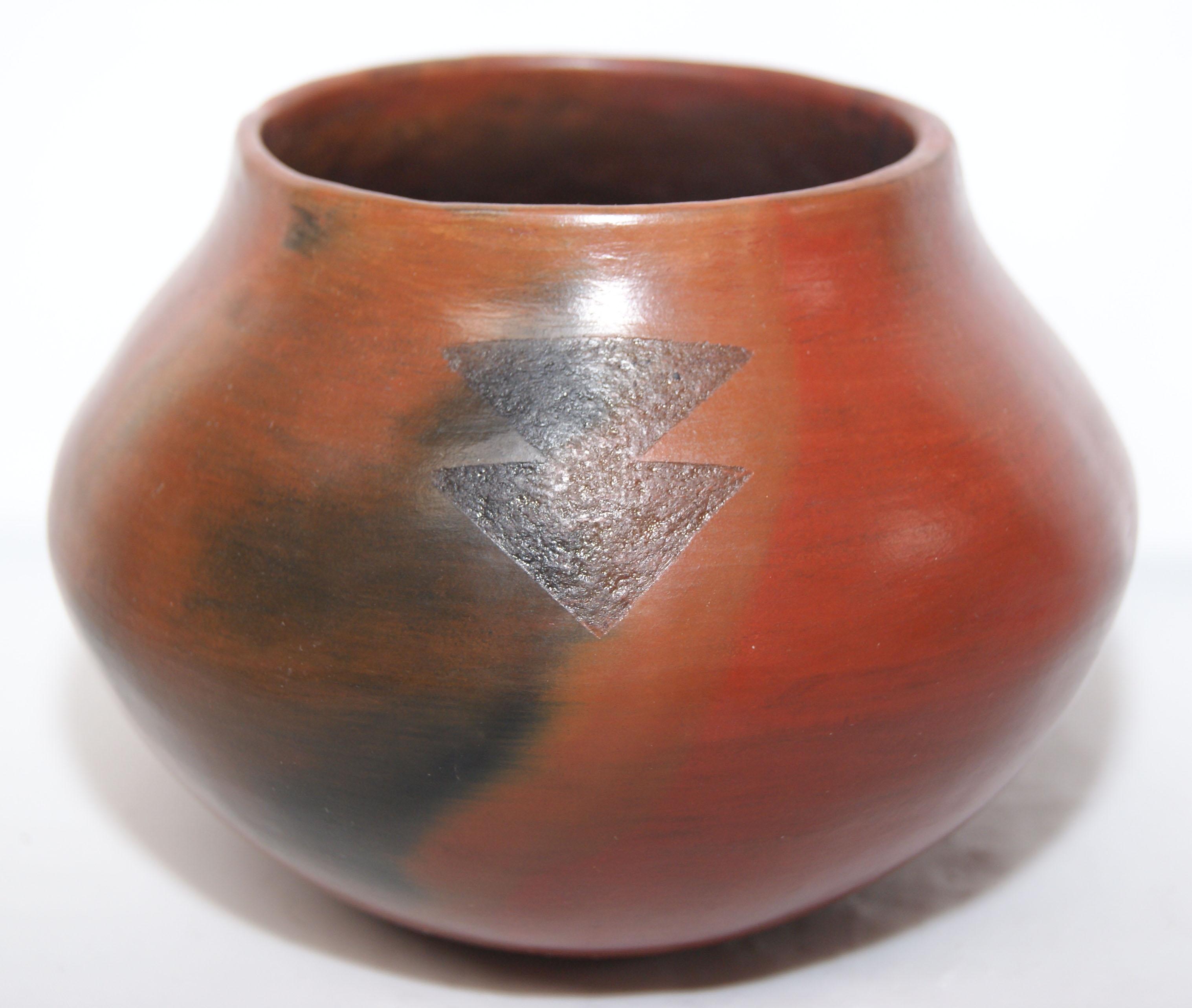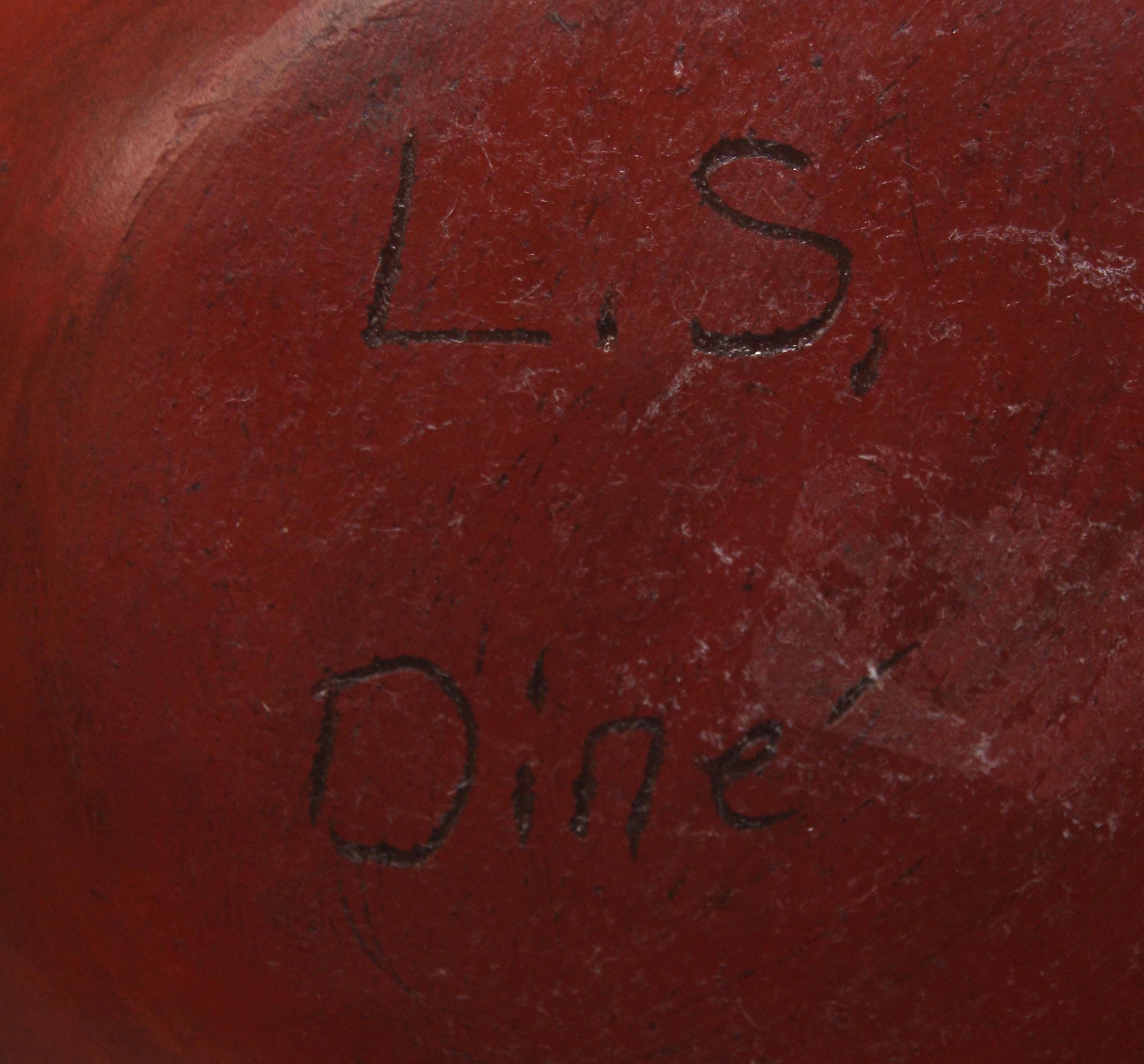 glaze ware with sgraffito design, signed K. S. Dine, 4" x 5.75"