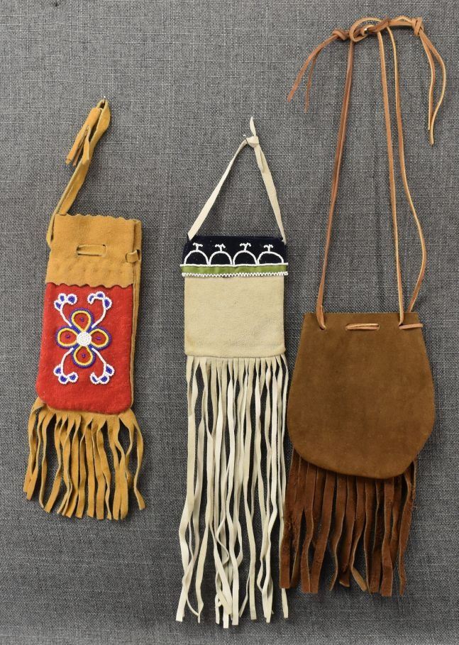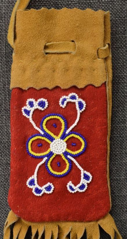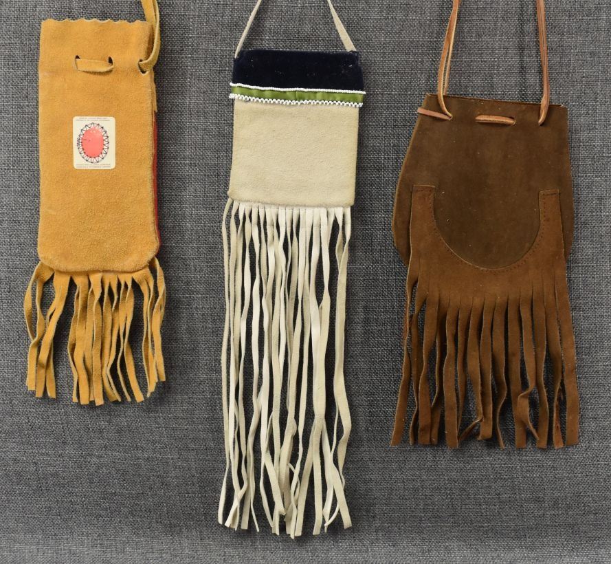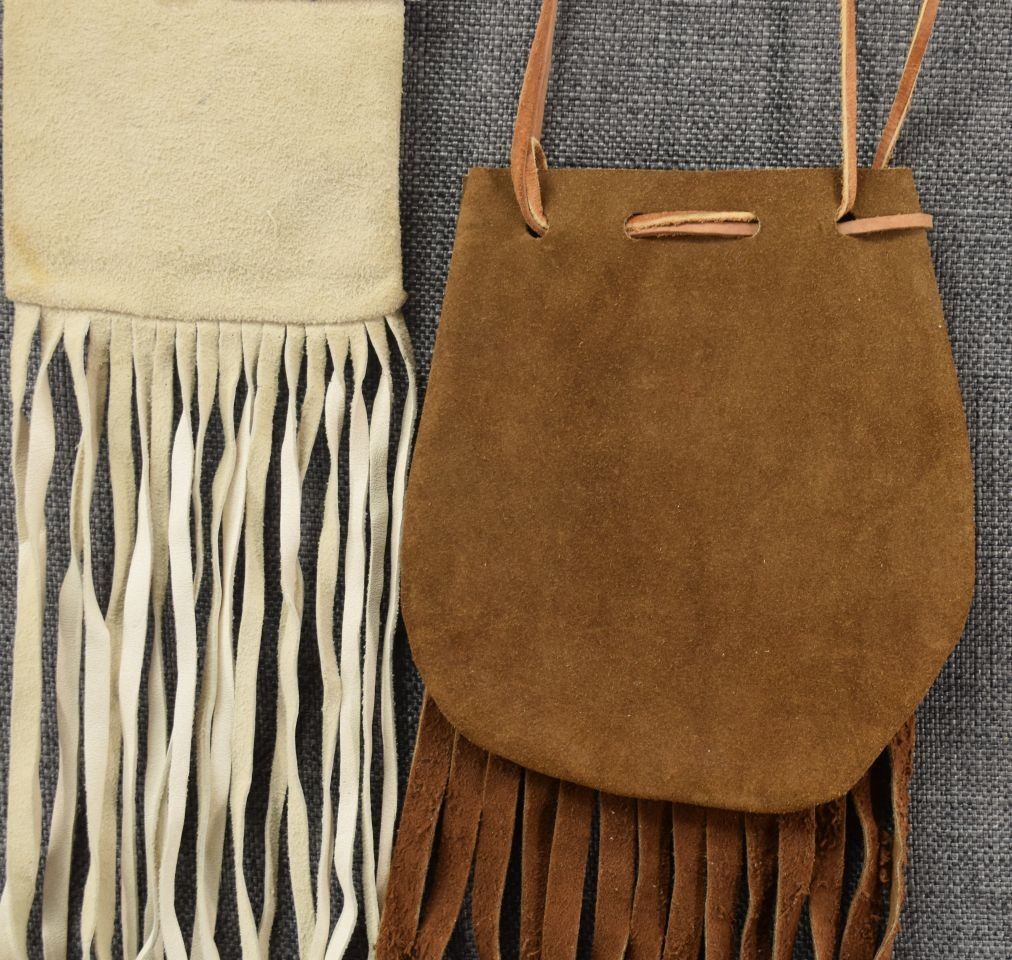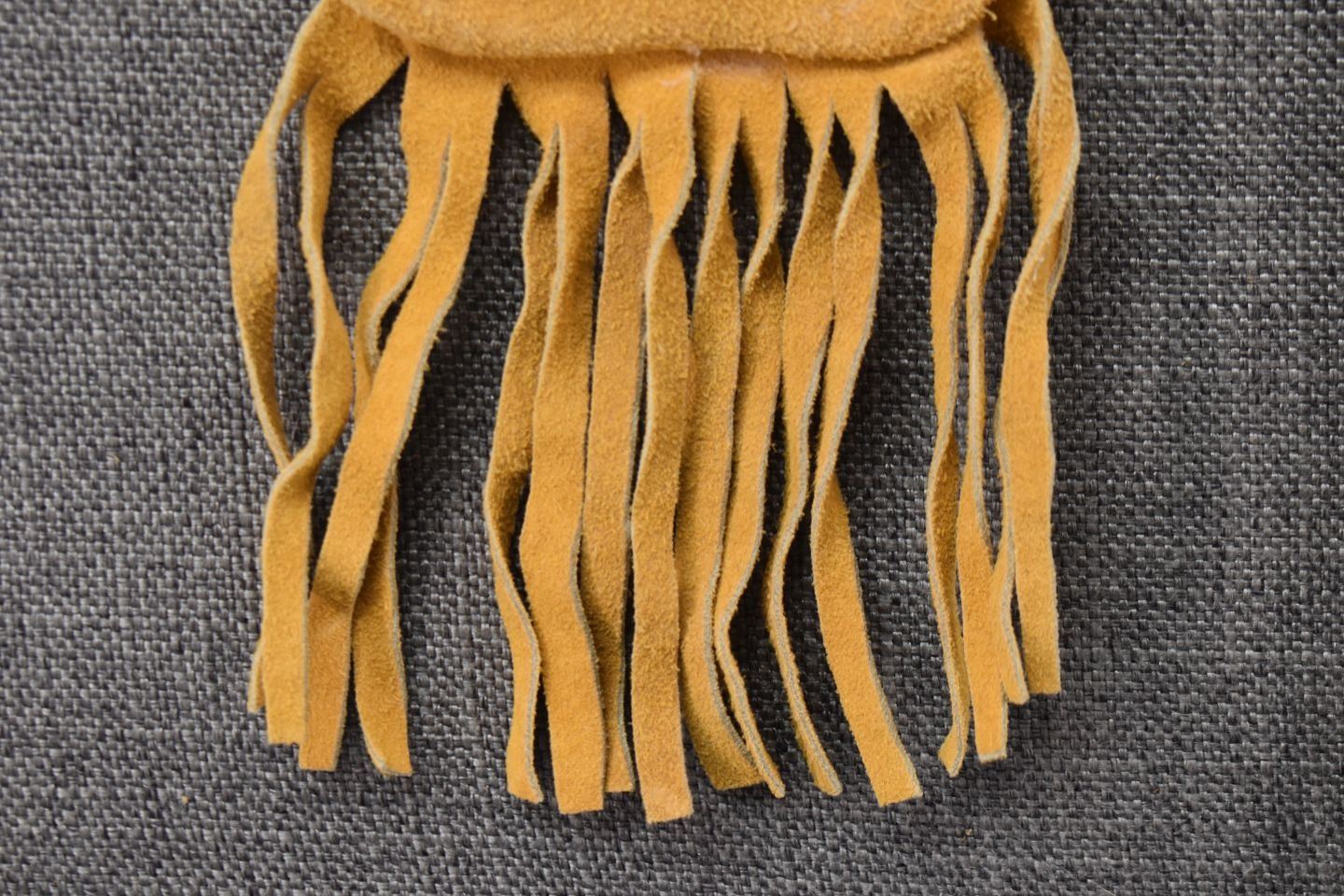 vintage leather with beaded design and fringe largest 8" x 3.5"