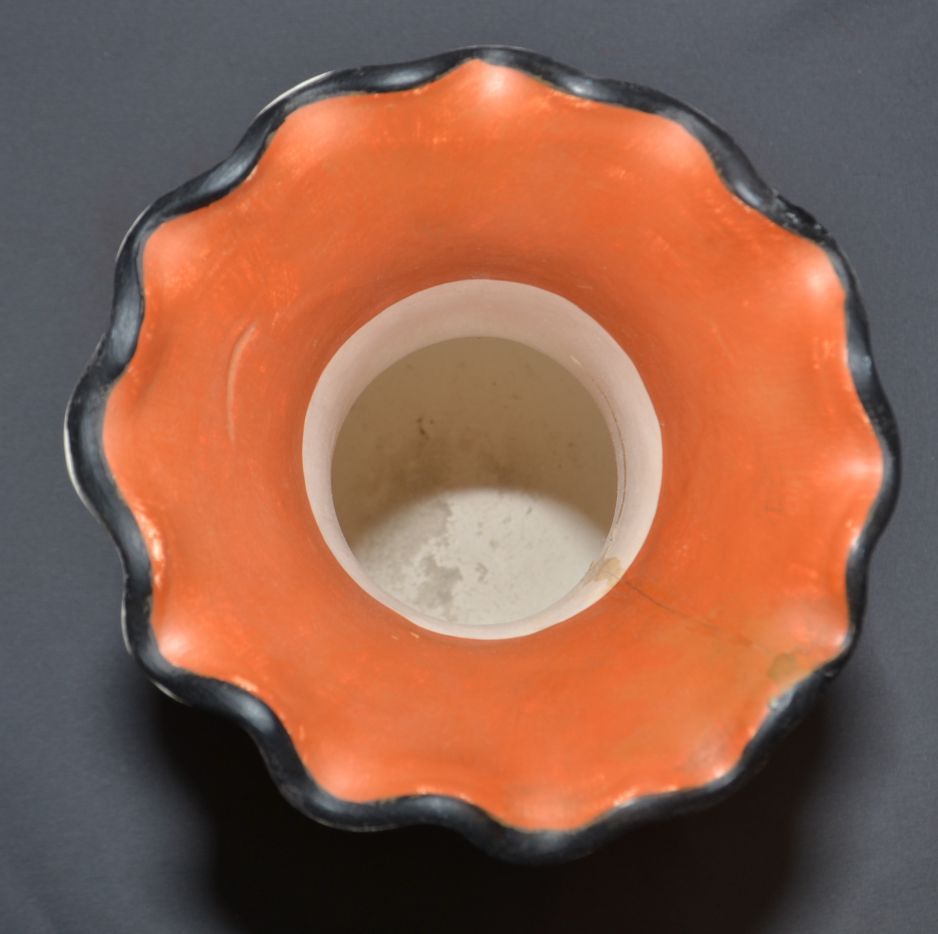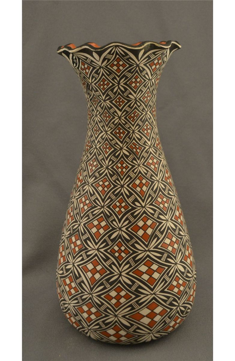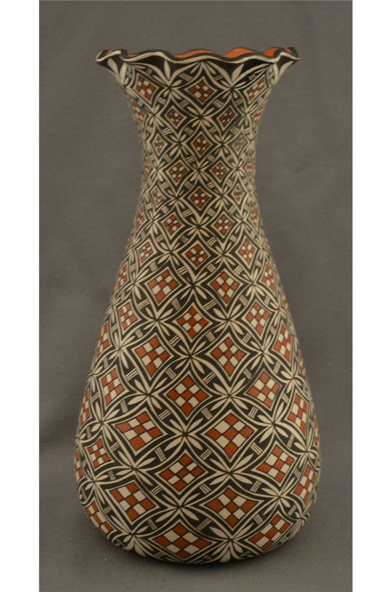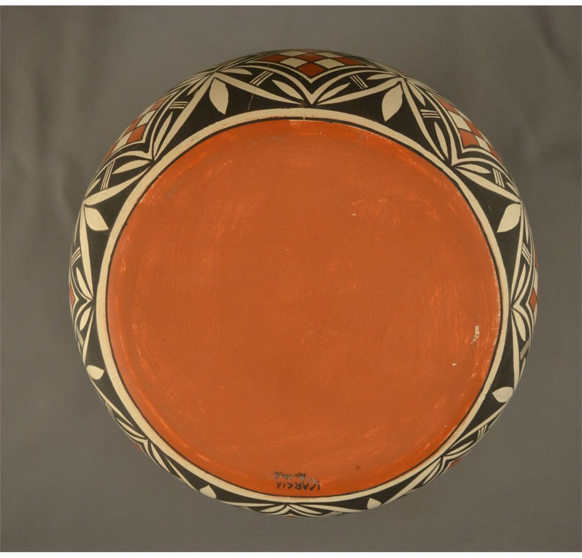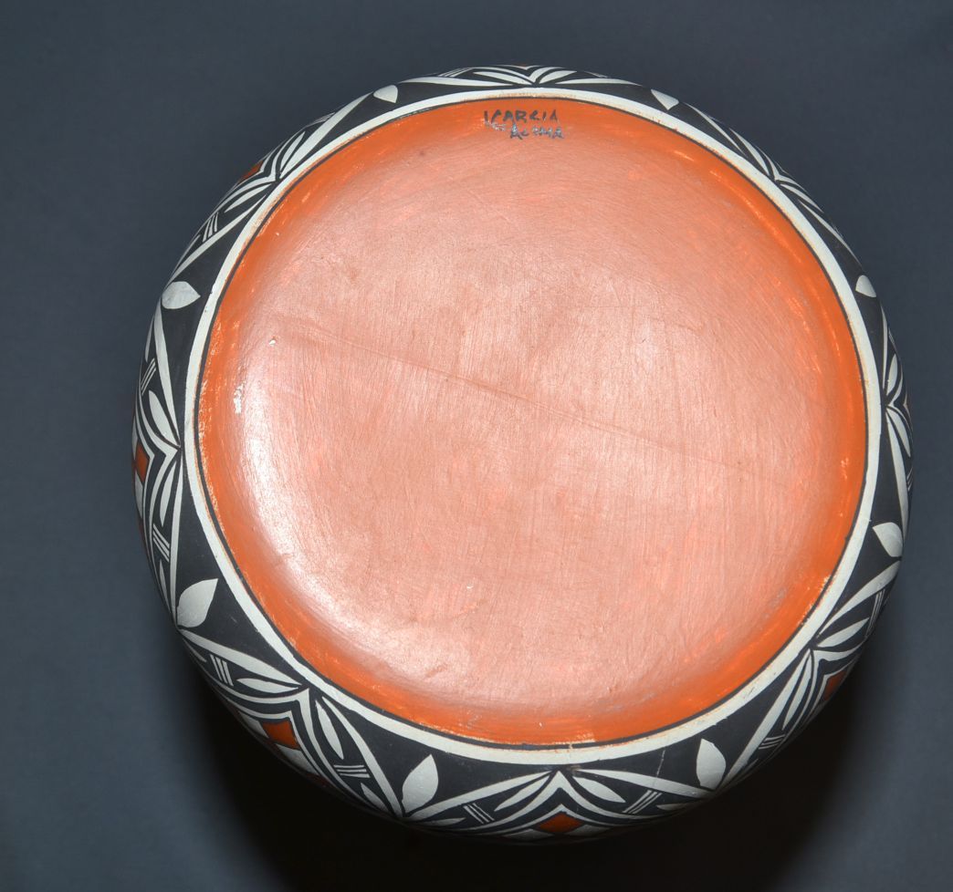 1980s 90s polychrome design has crack that is stablized with glue signed I Garcia, 13.5" x 6.5"