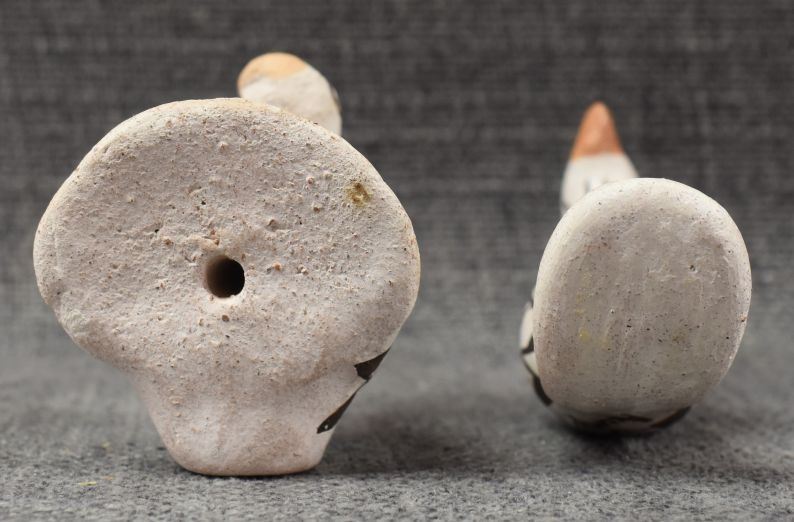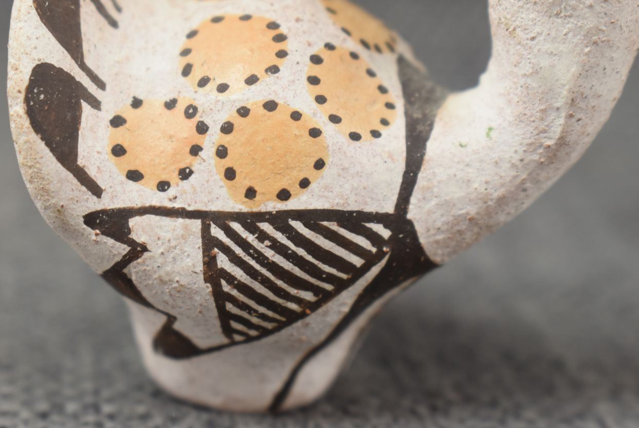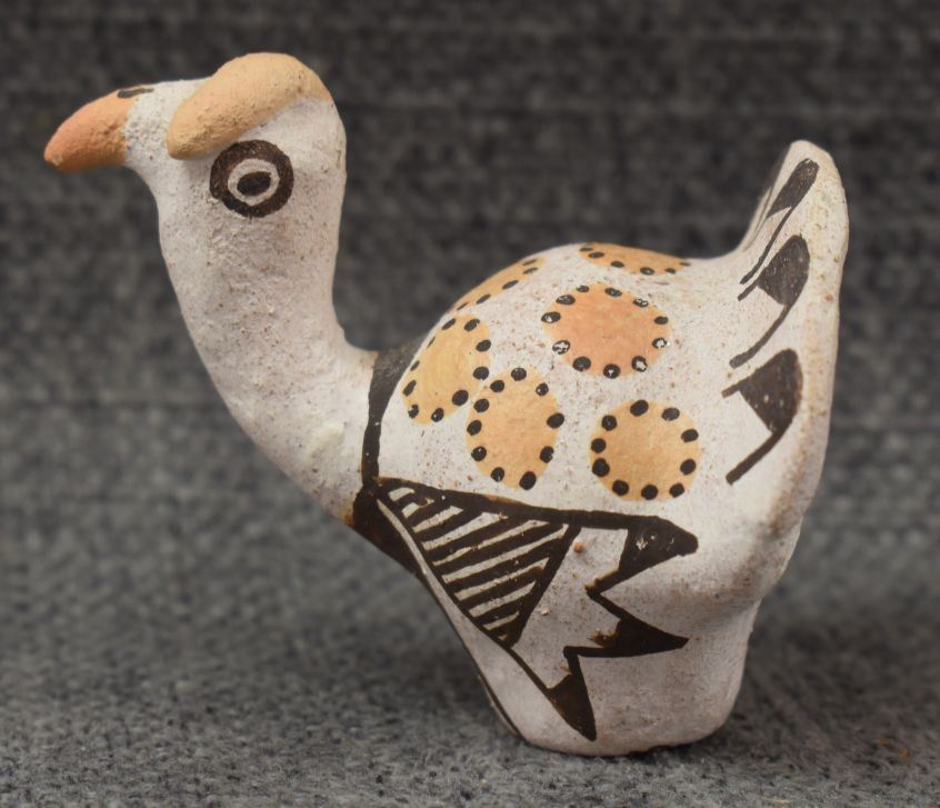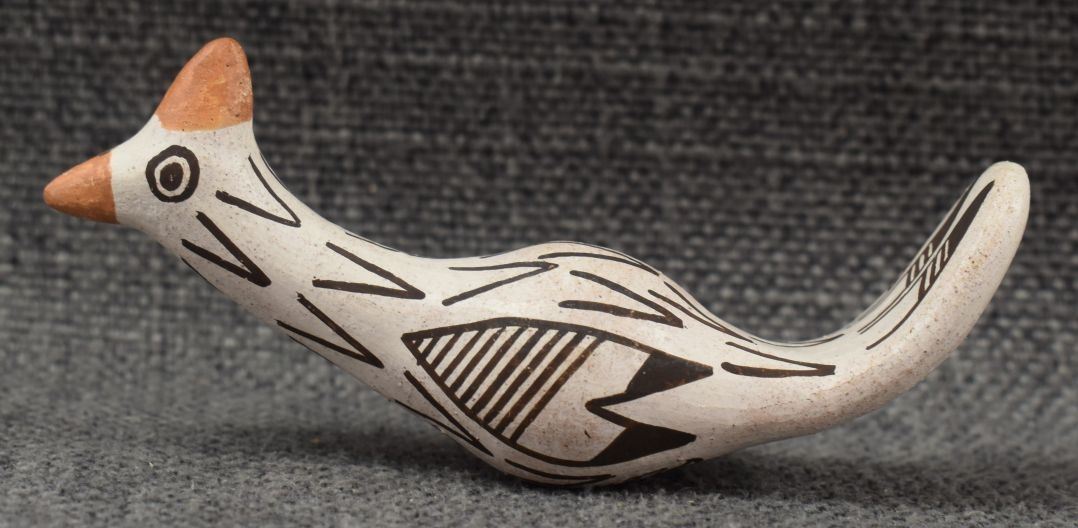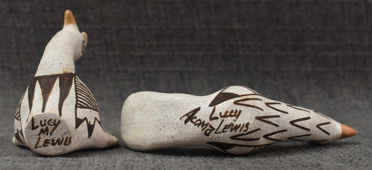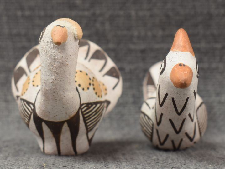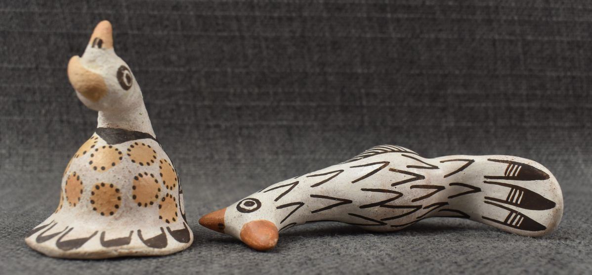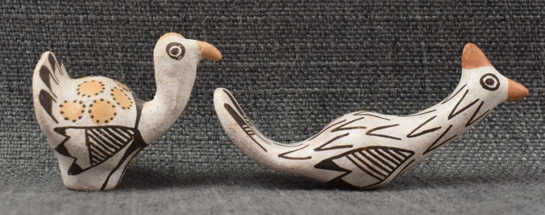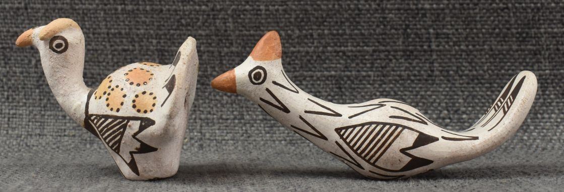 1970's Acoma, hand made pottery birds with polychrome painted design by Lucy Lewis 1.75" x 2.25" x 1.5" and 2" x 4" x 1"