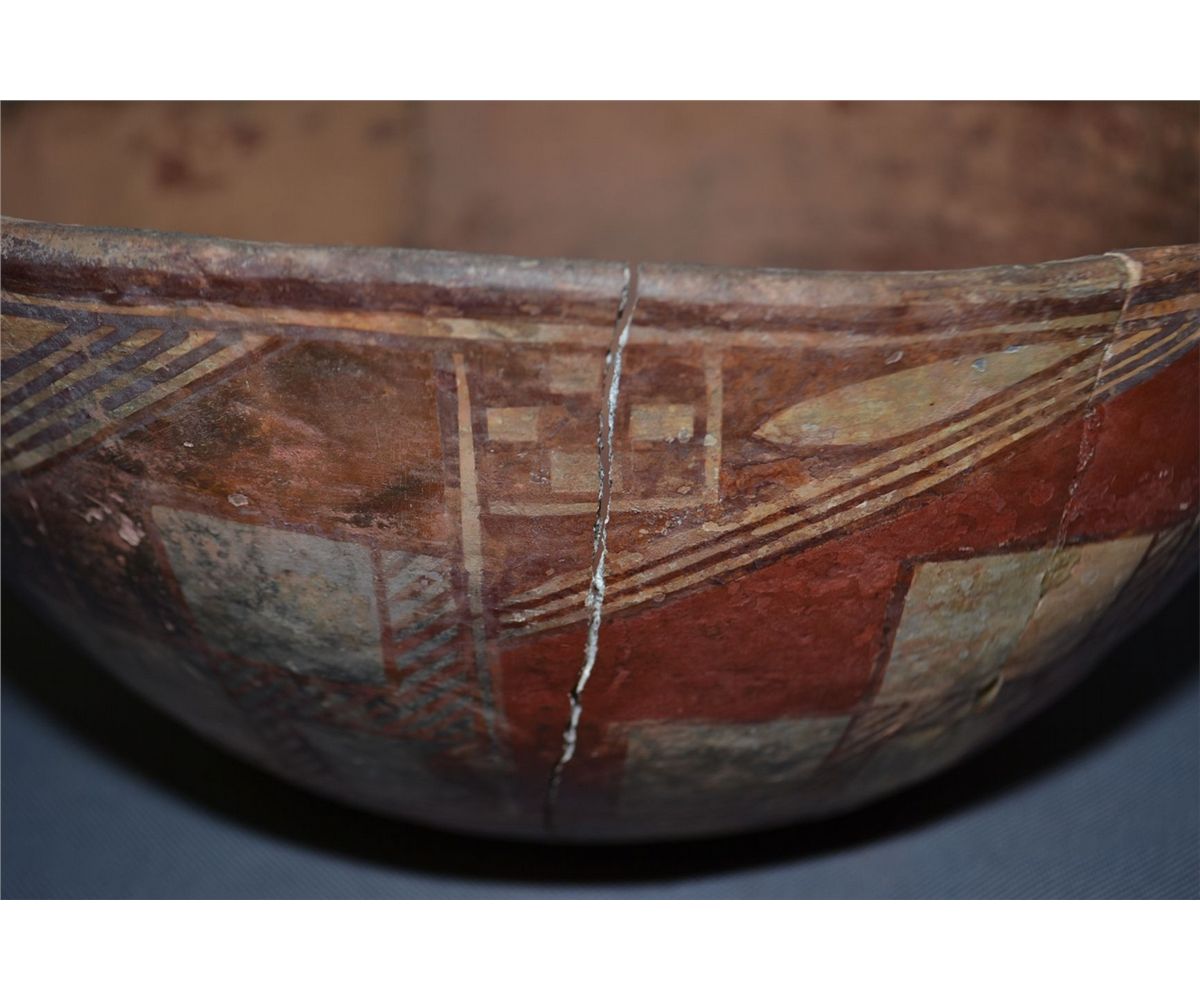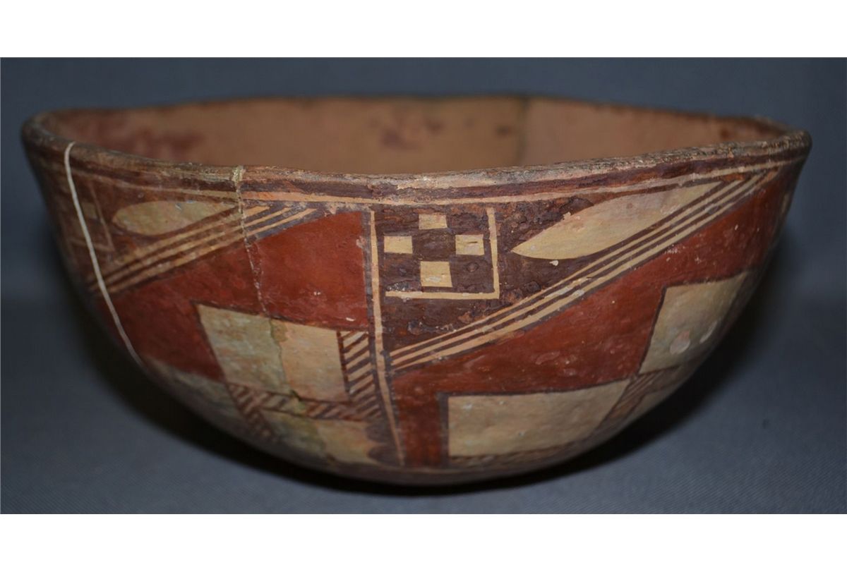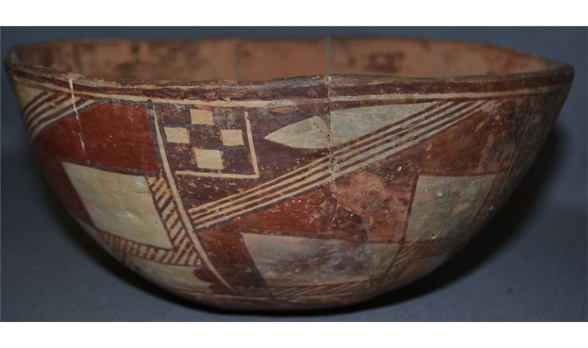 1940s 50s polychrome geometric design has been broken and glued 4" x 9"