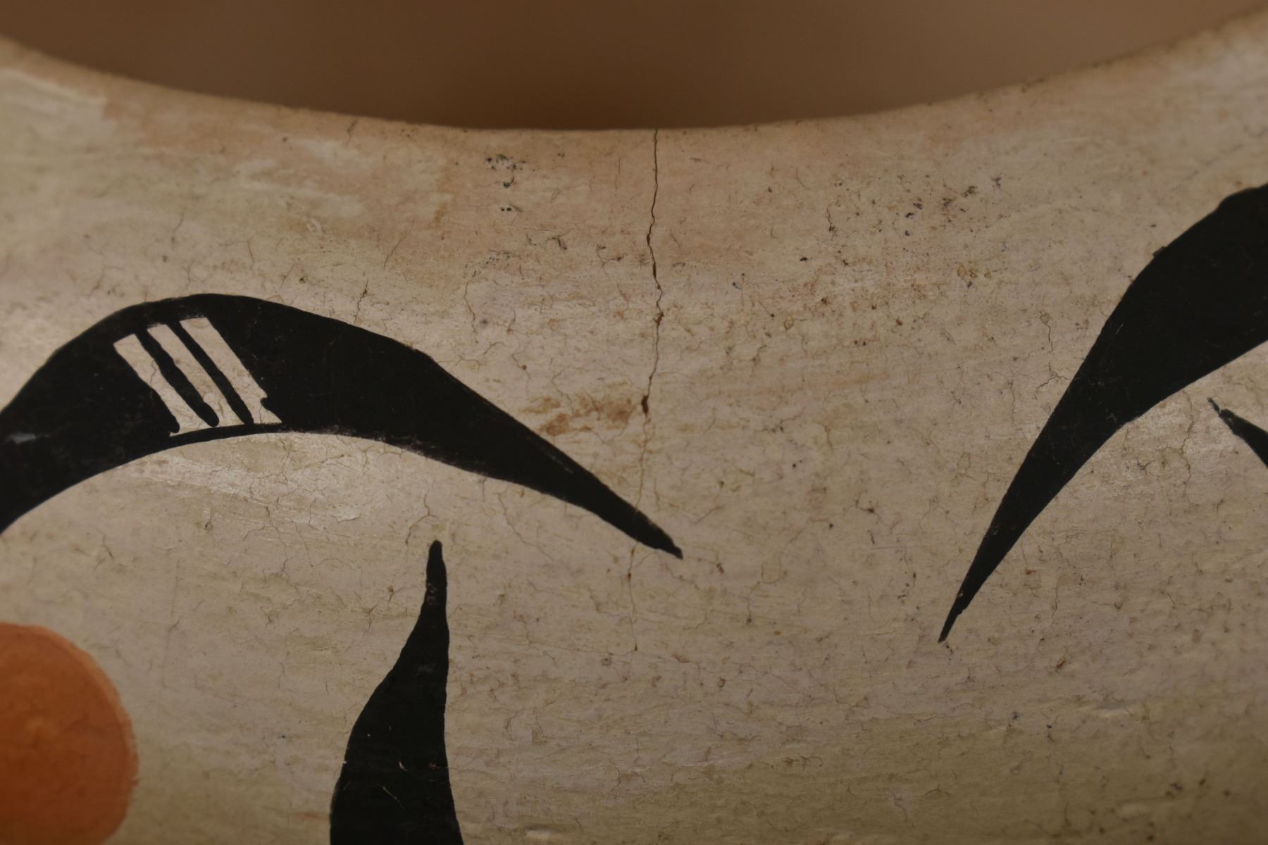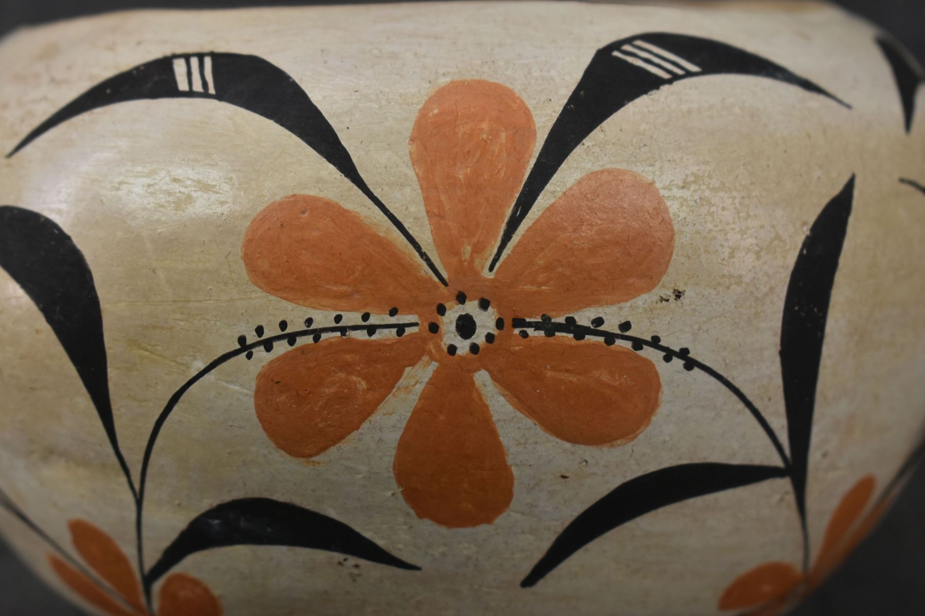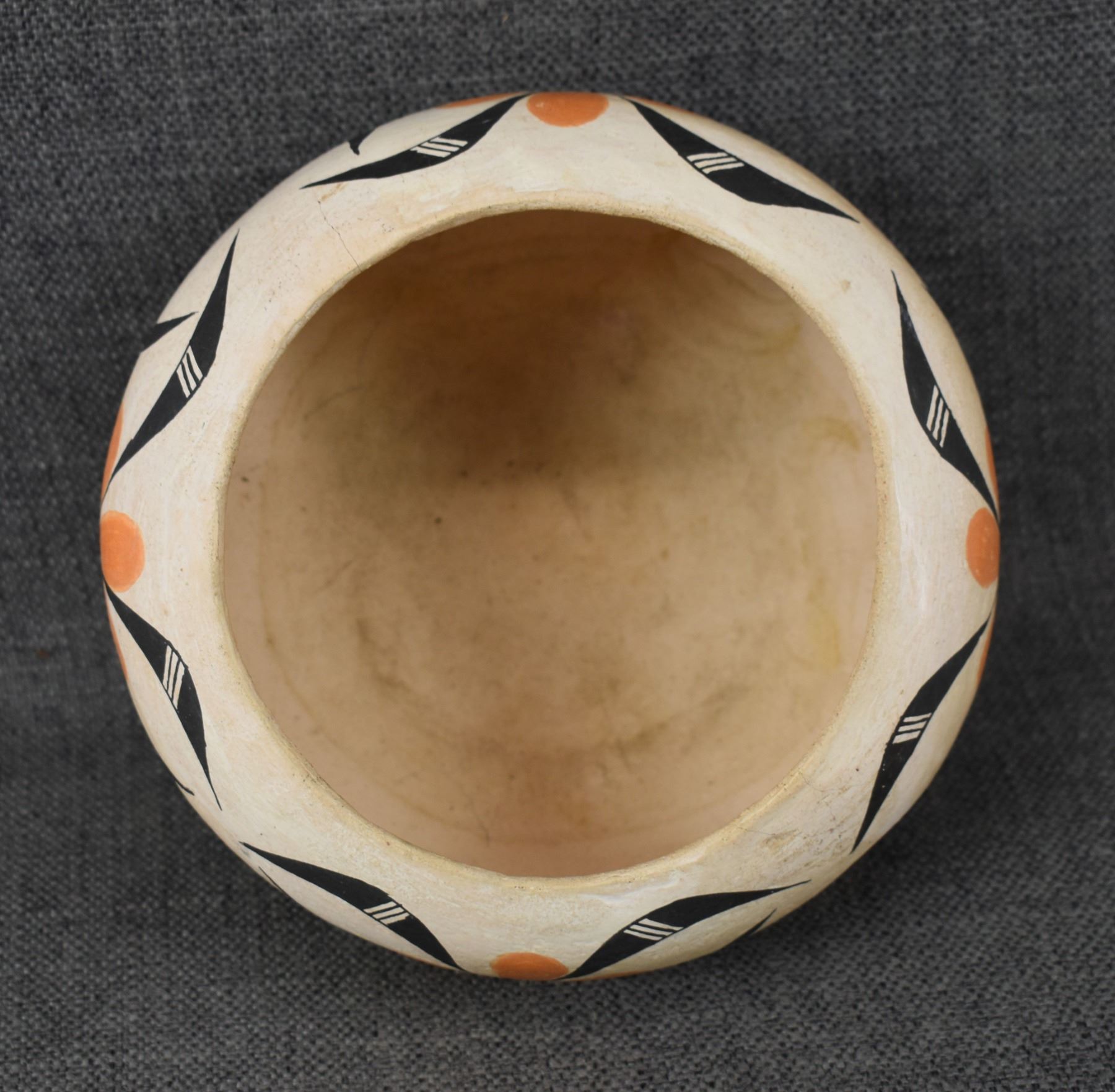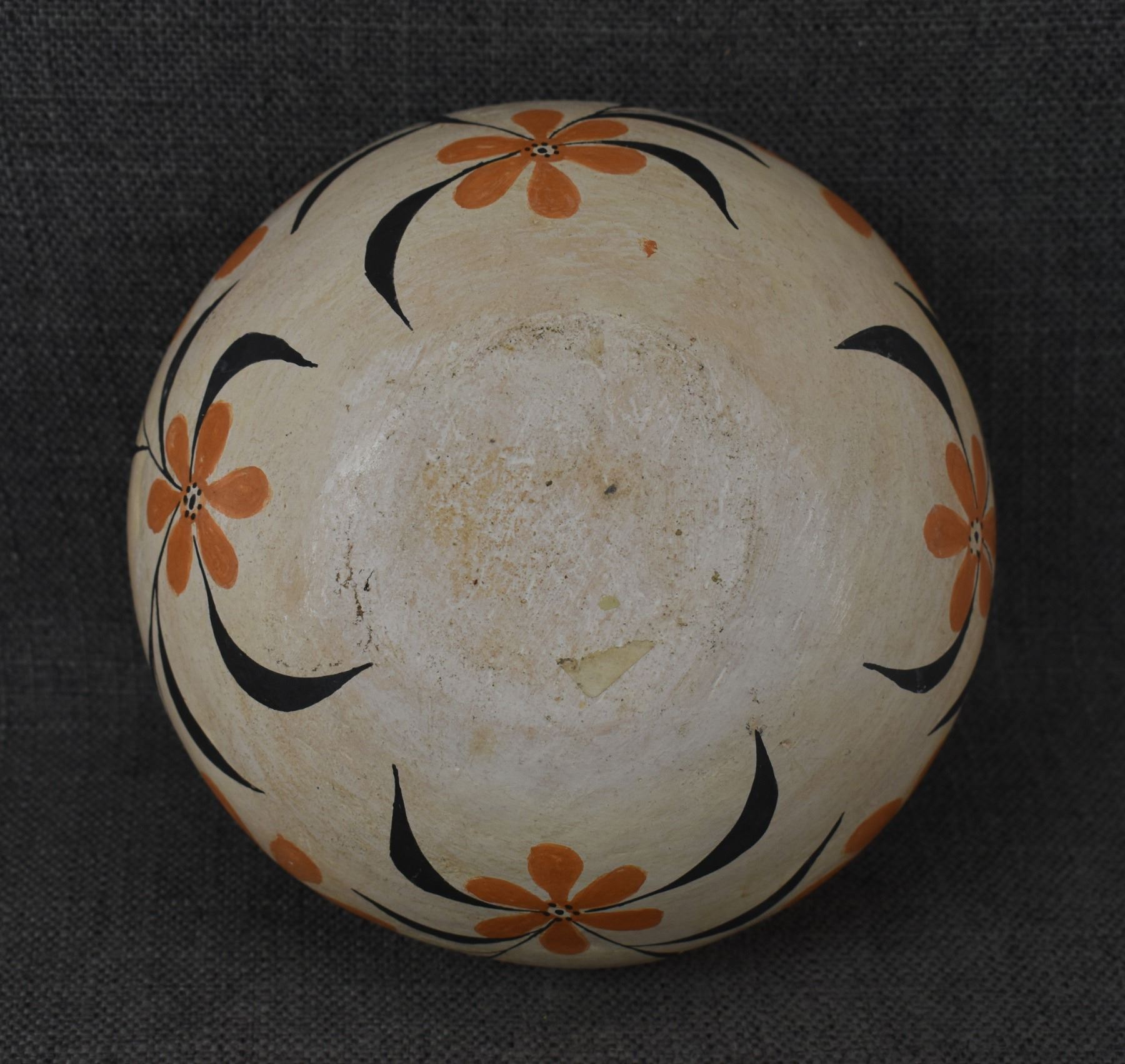 1950's Acoma, hand coiled with polychrome painted floral design, 4.25" x 6.75" has crack.