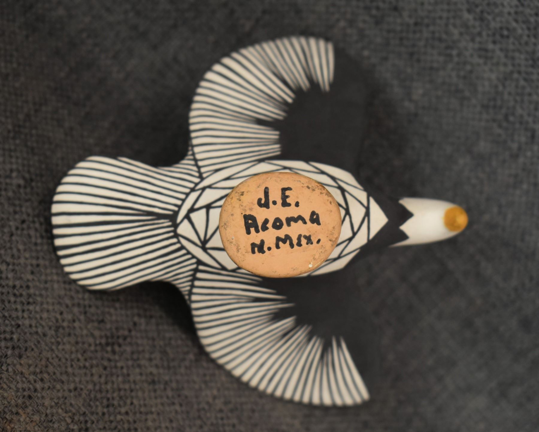 1980-90's Acoma, hand made and painted eagle signed J.E. 3.25" x 4.5" x 4.75"