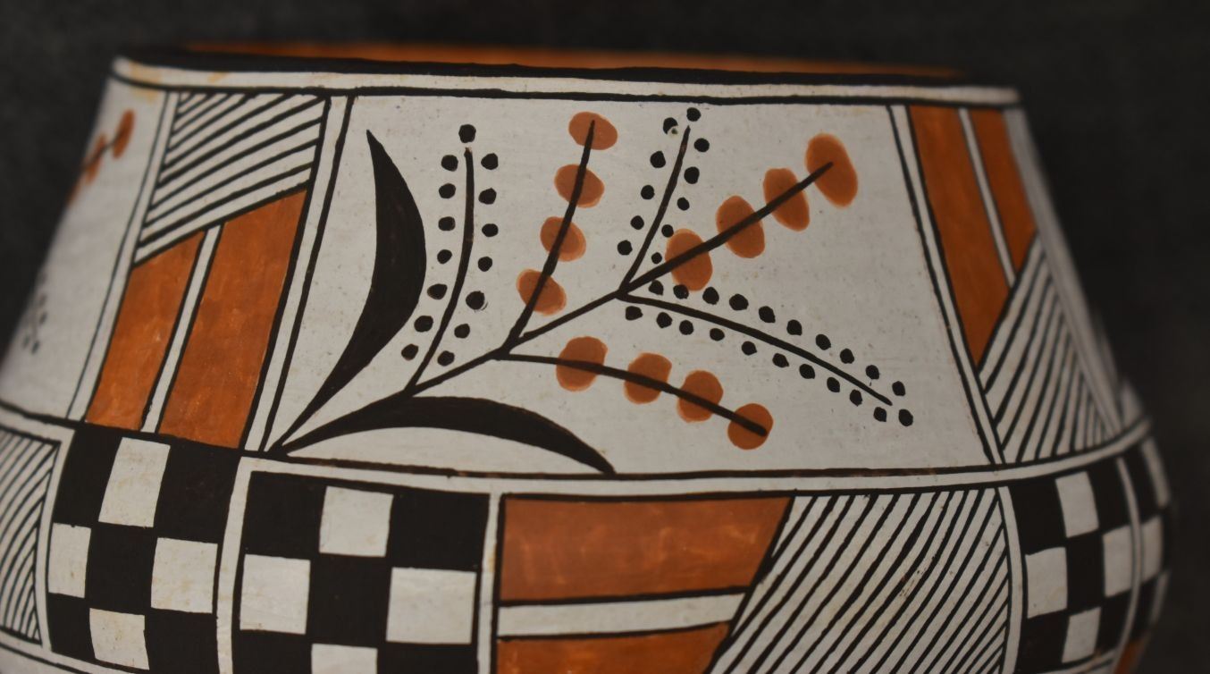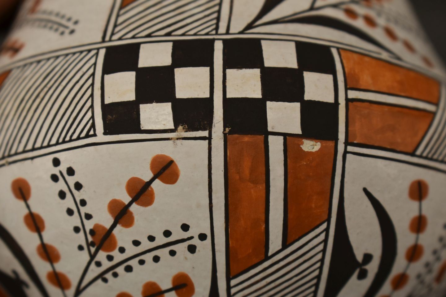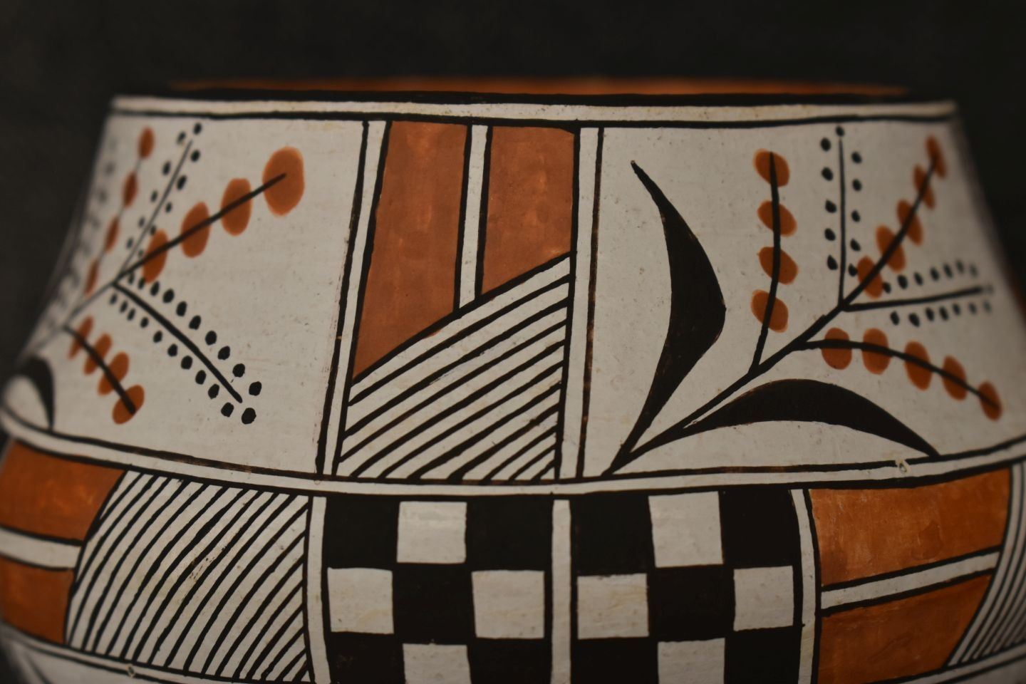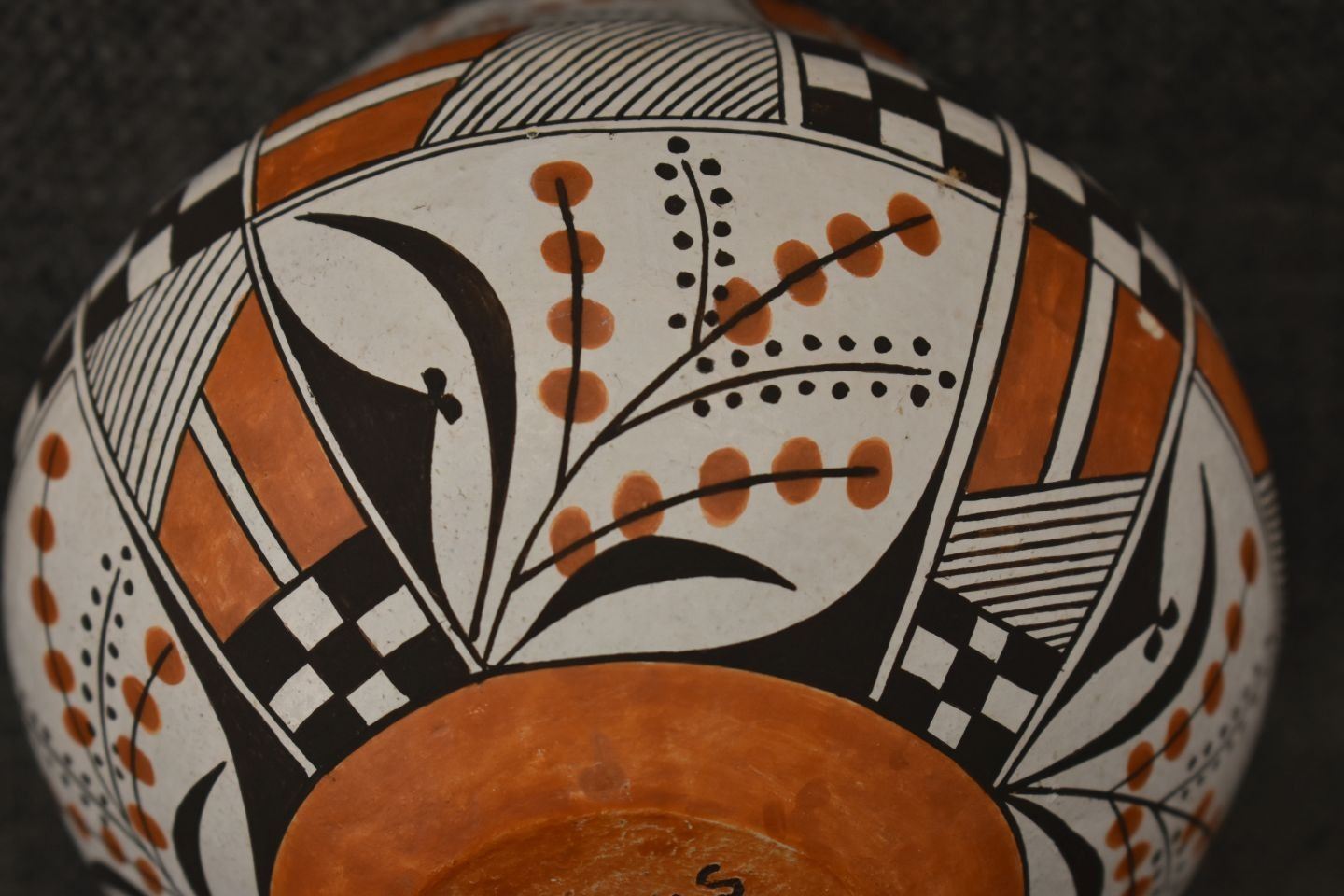 2000's Acoma, hand coiled with polychrome painted floral and geometric design by Anne Lewis "aaKume dyuuni" 3.5" x 4.25"