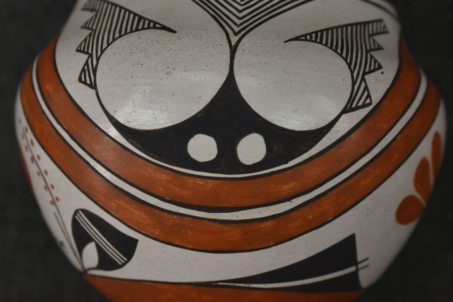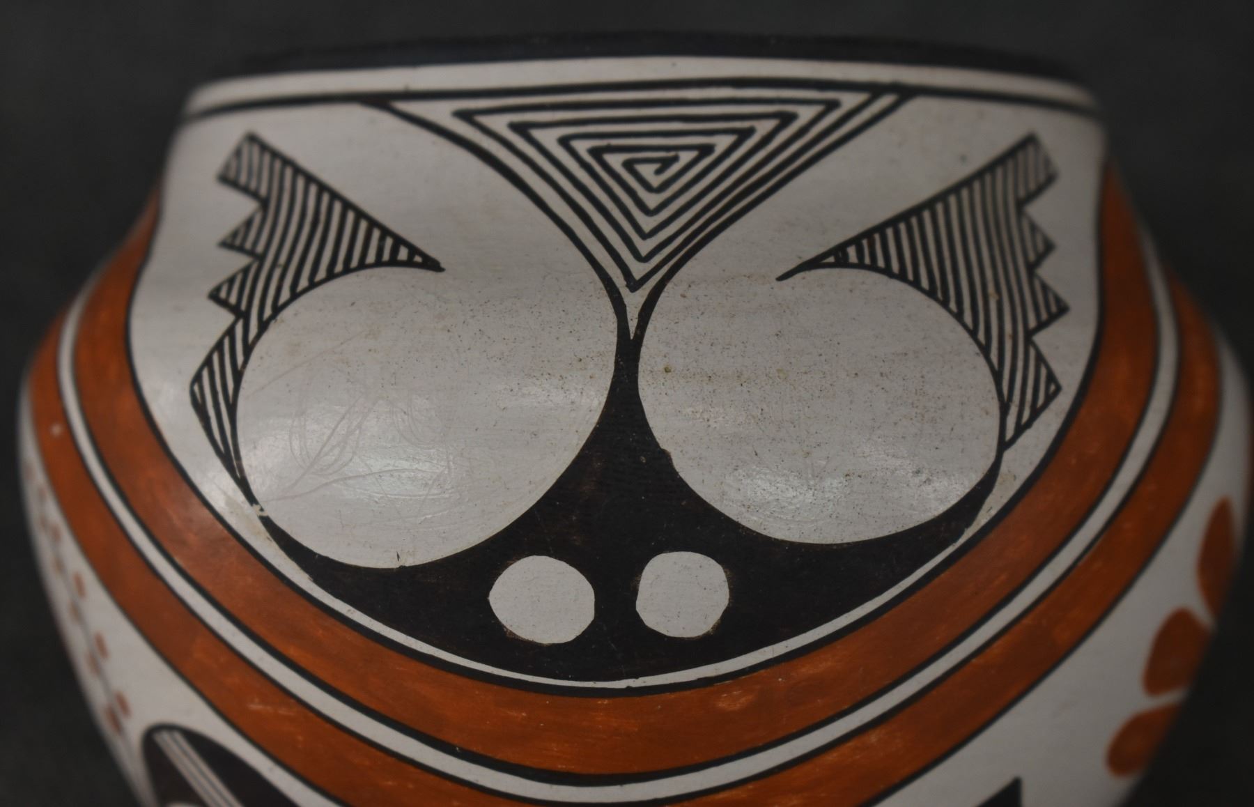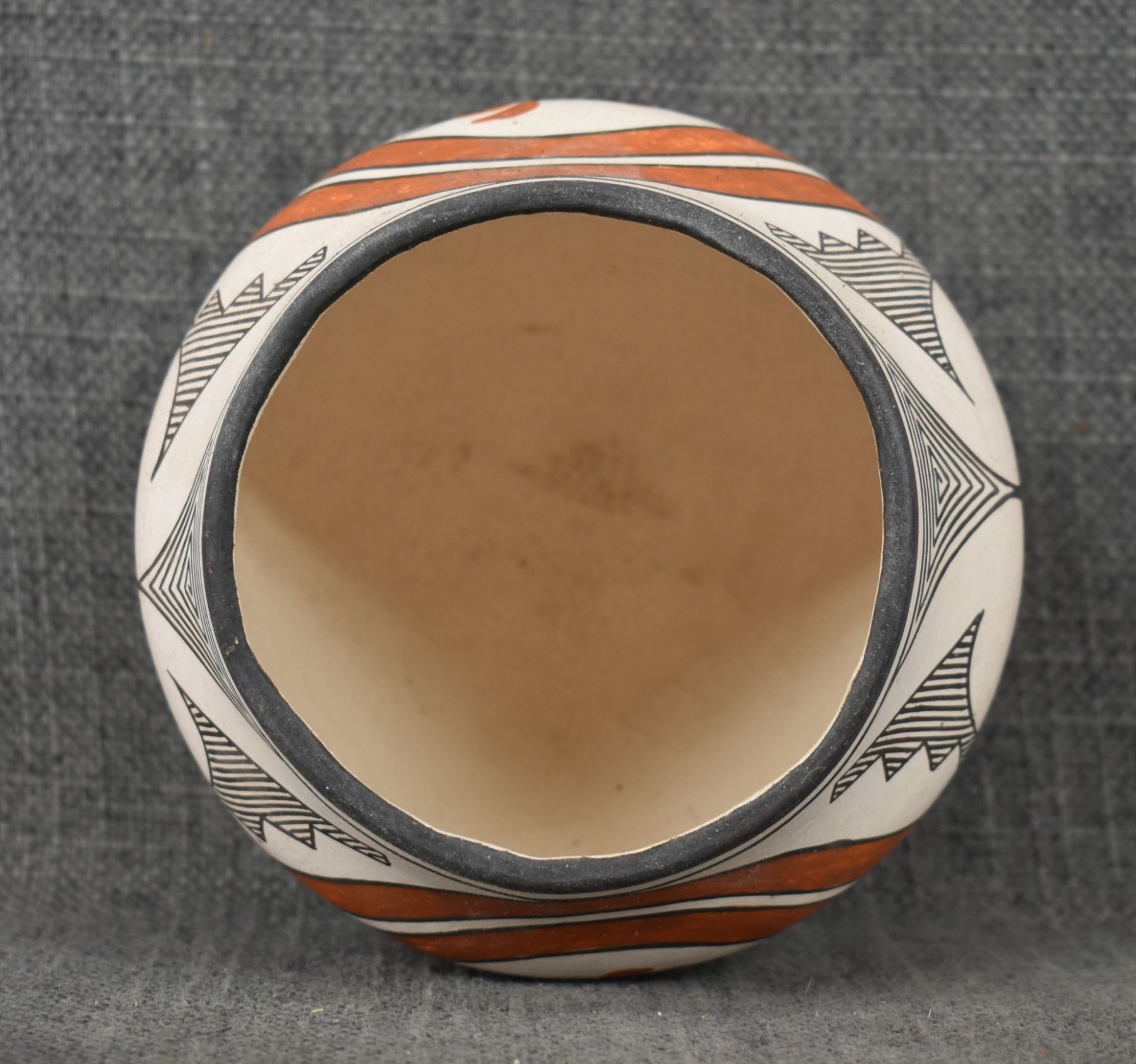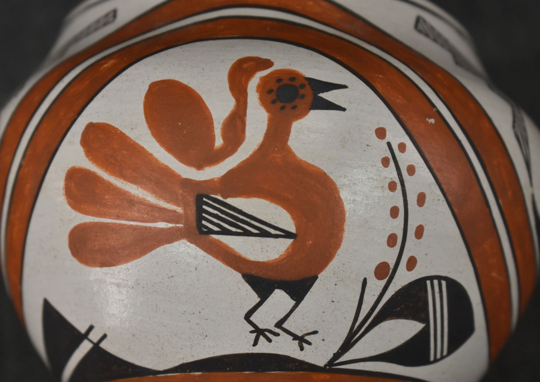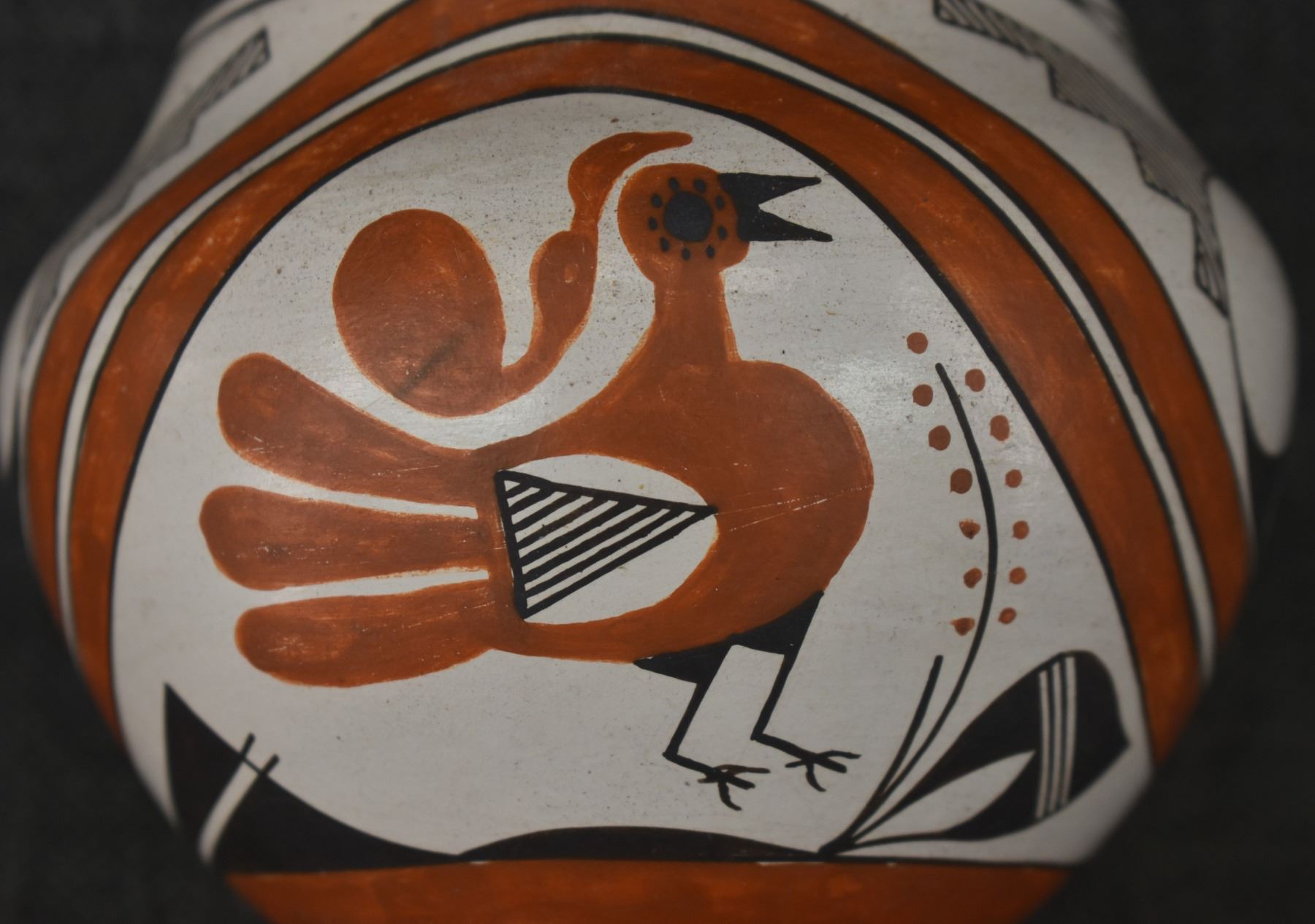 1970's Acoma, hand coiled with polychrome painted turkey and geometric design by Rose Chino, 3.75" x 4.75"