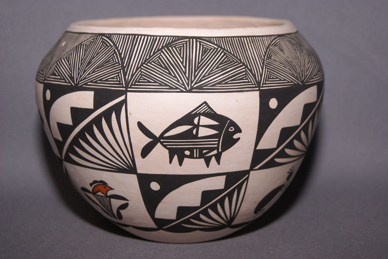1990's polychrome fine line design and animals signed Priscilla T. Jim, 5.25" x 6.75"