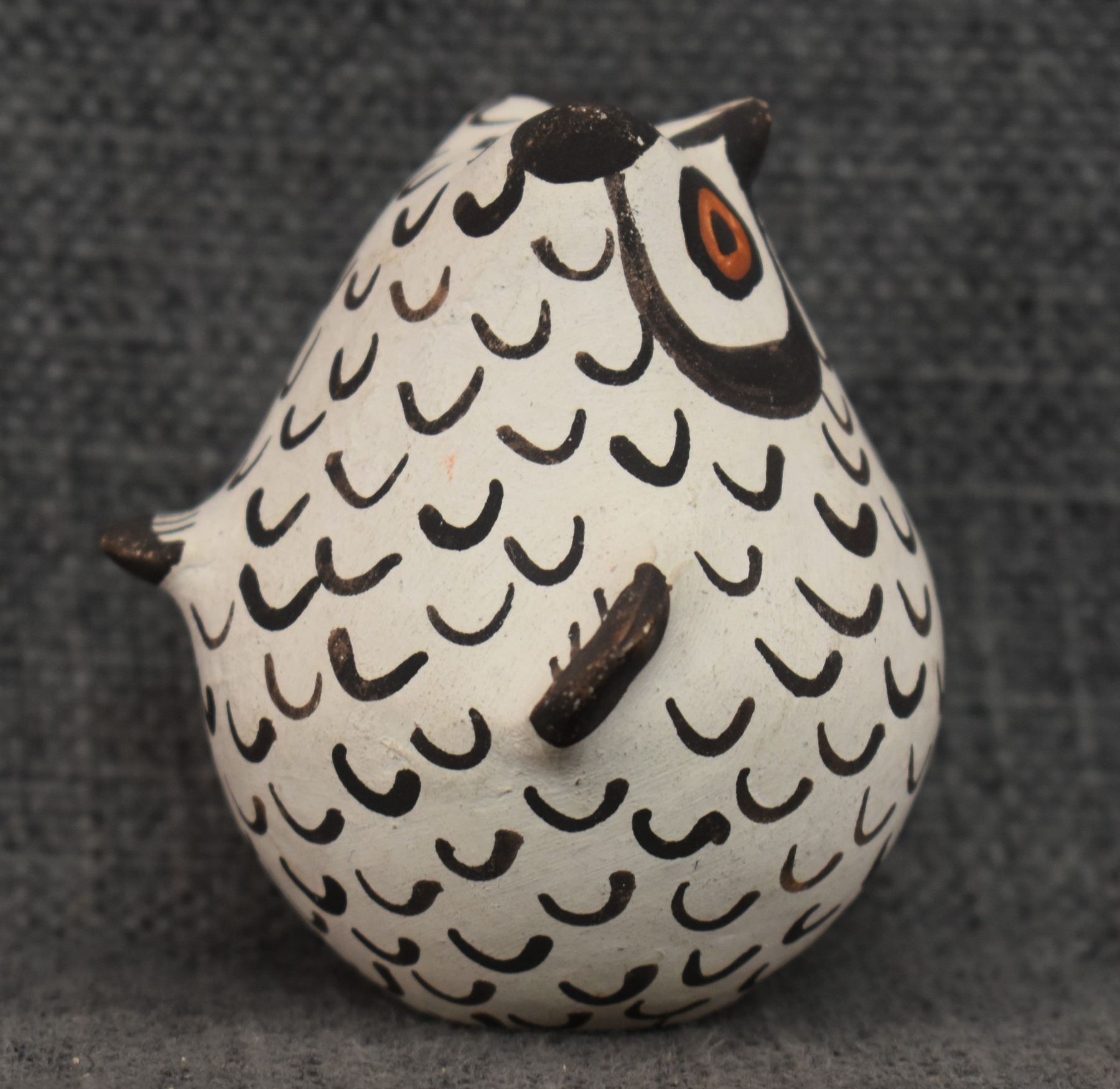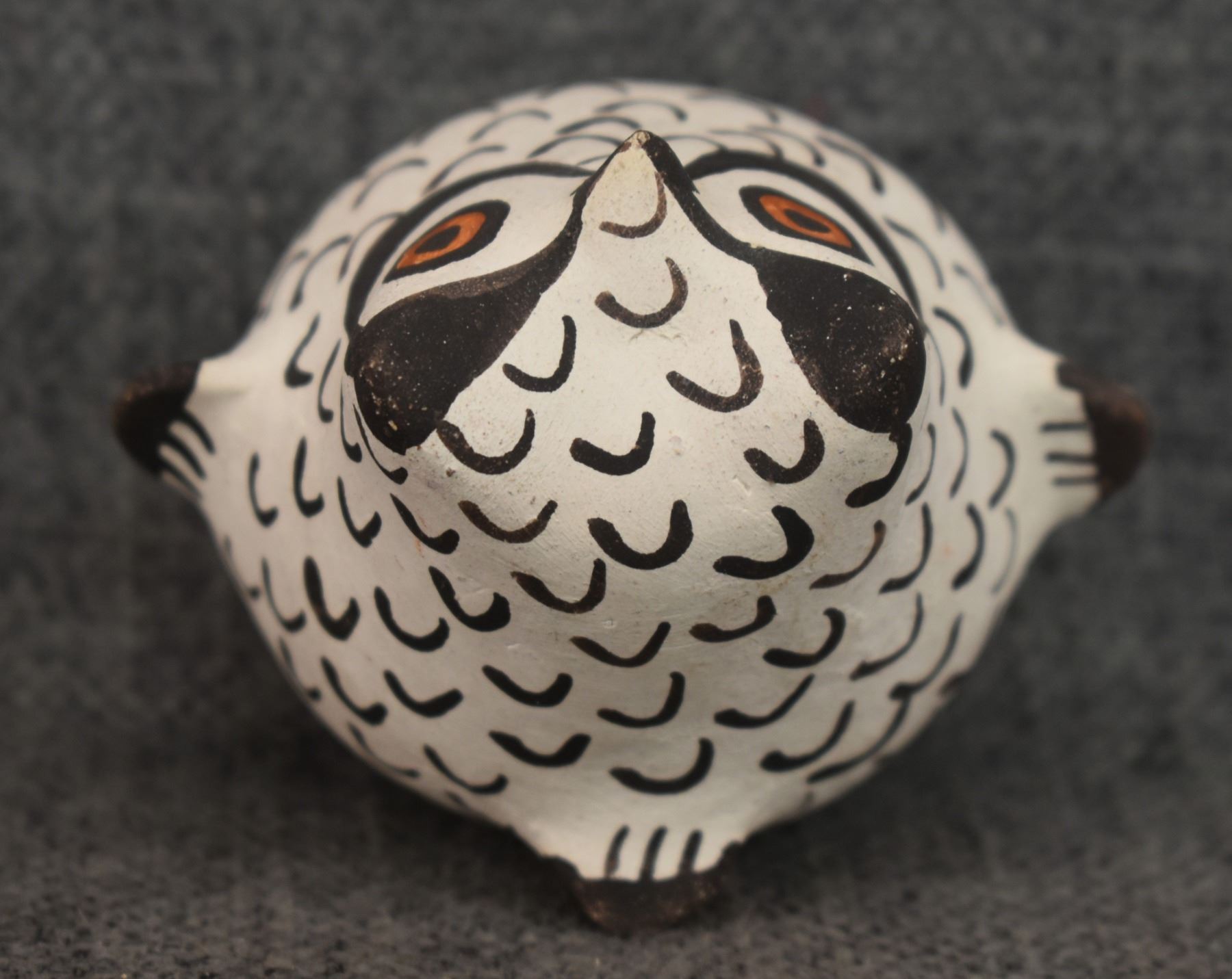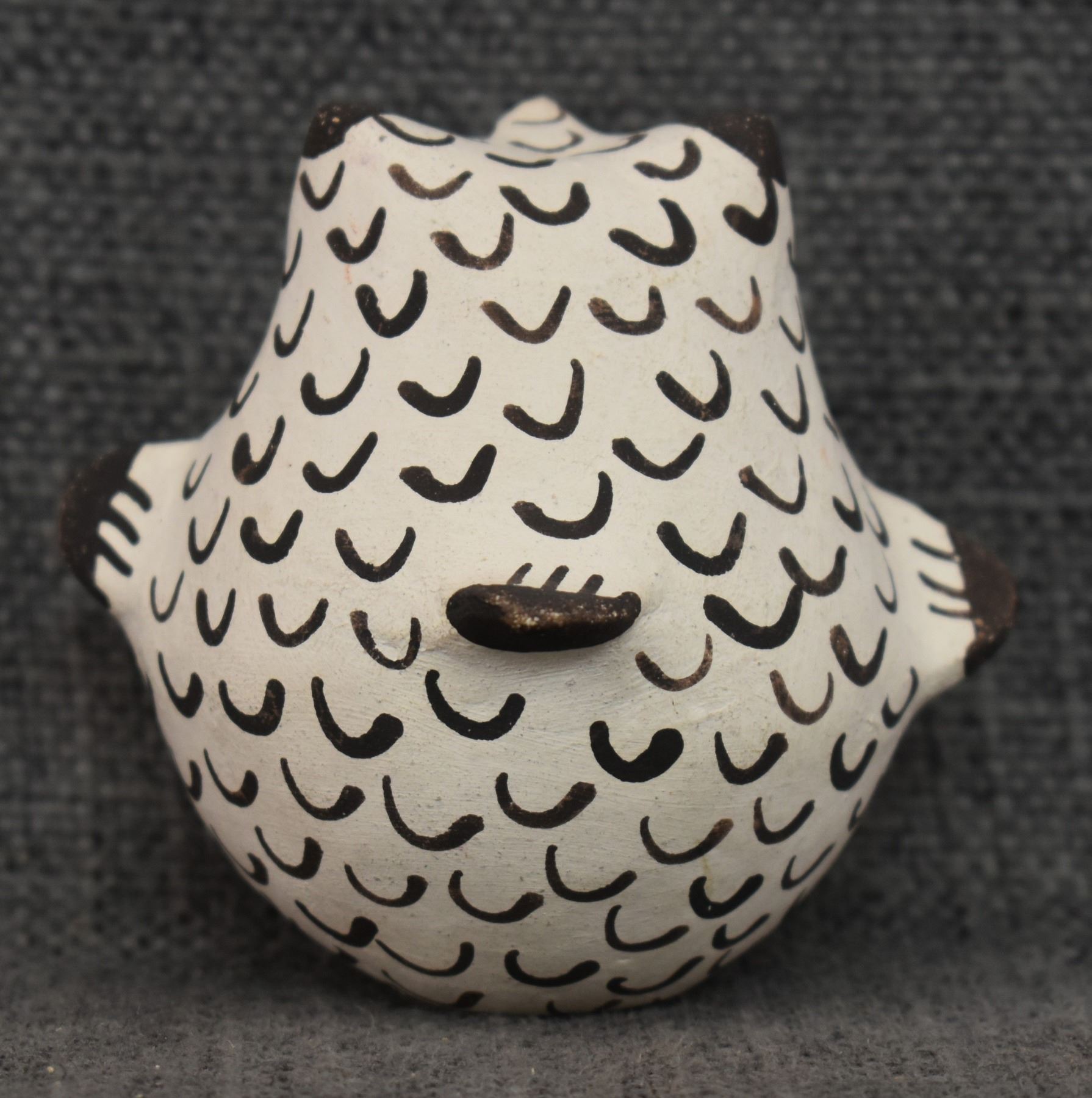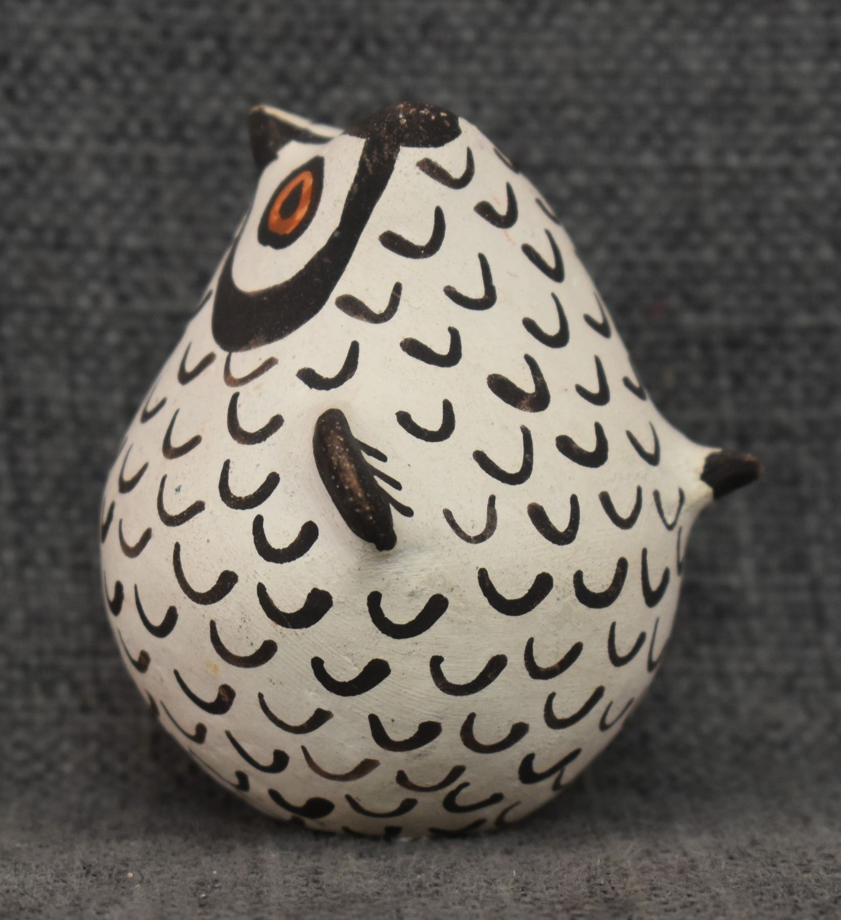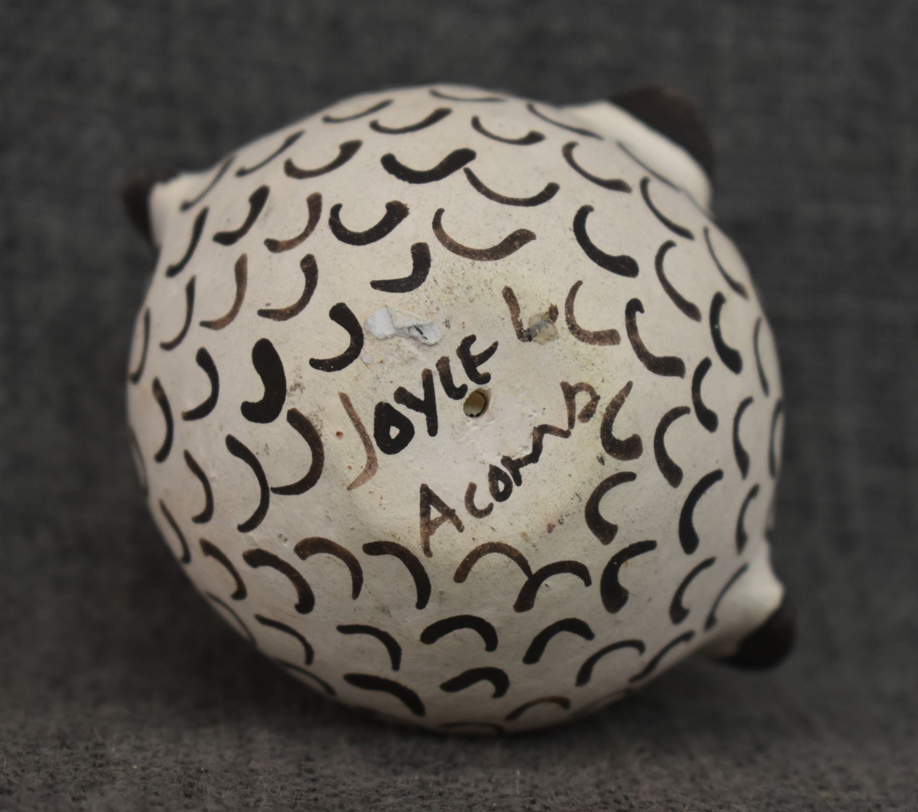 1970's Acoma. Hand coiled and painted pottery owl, signed Joyce. 3'' x 3''
