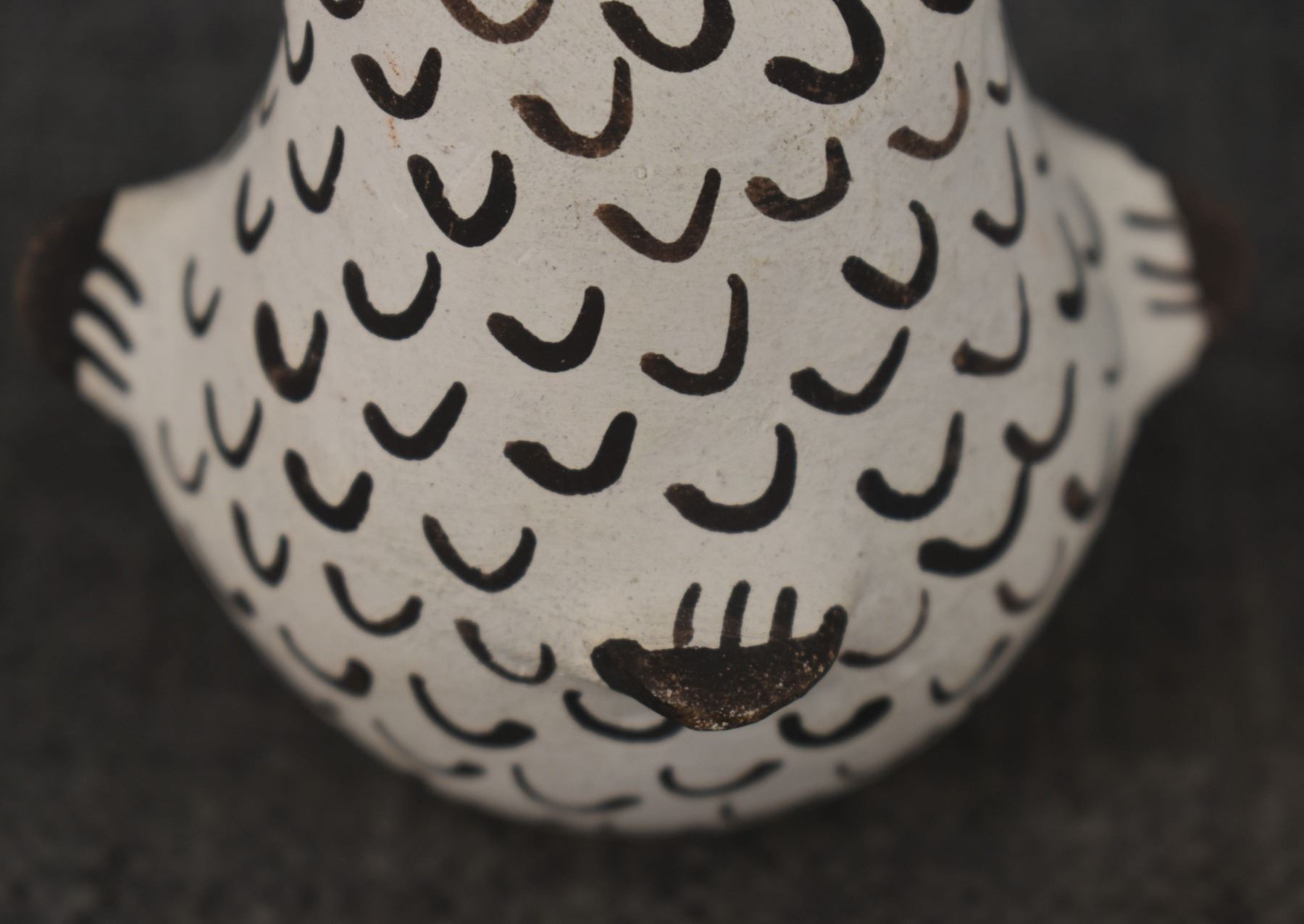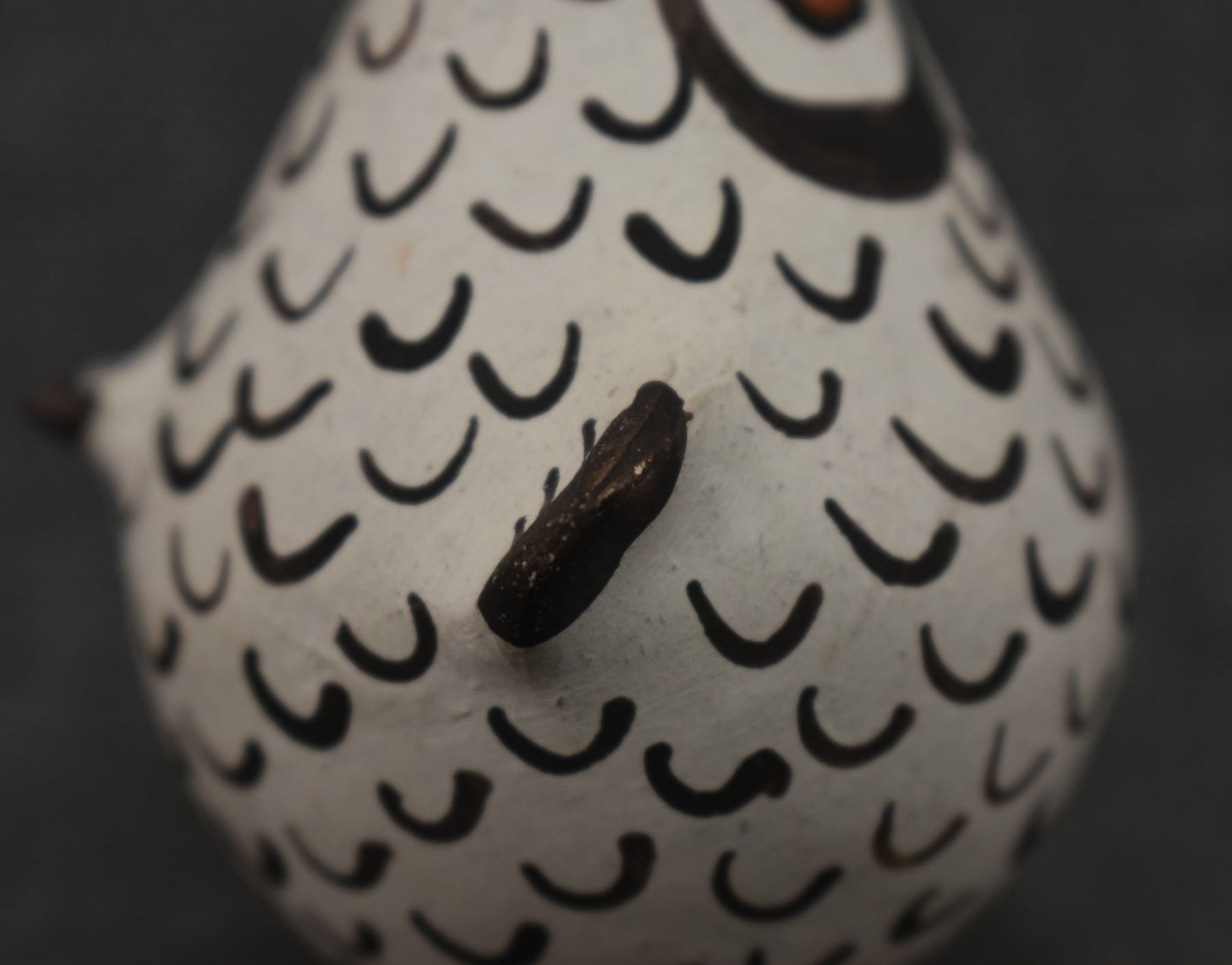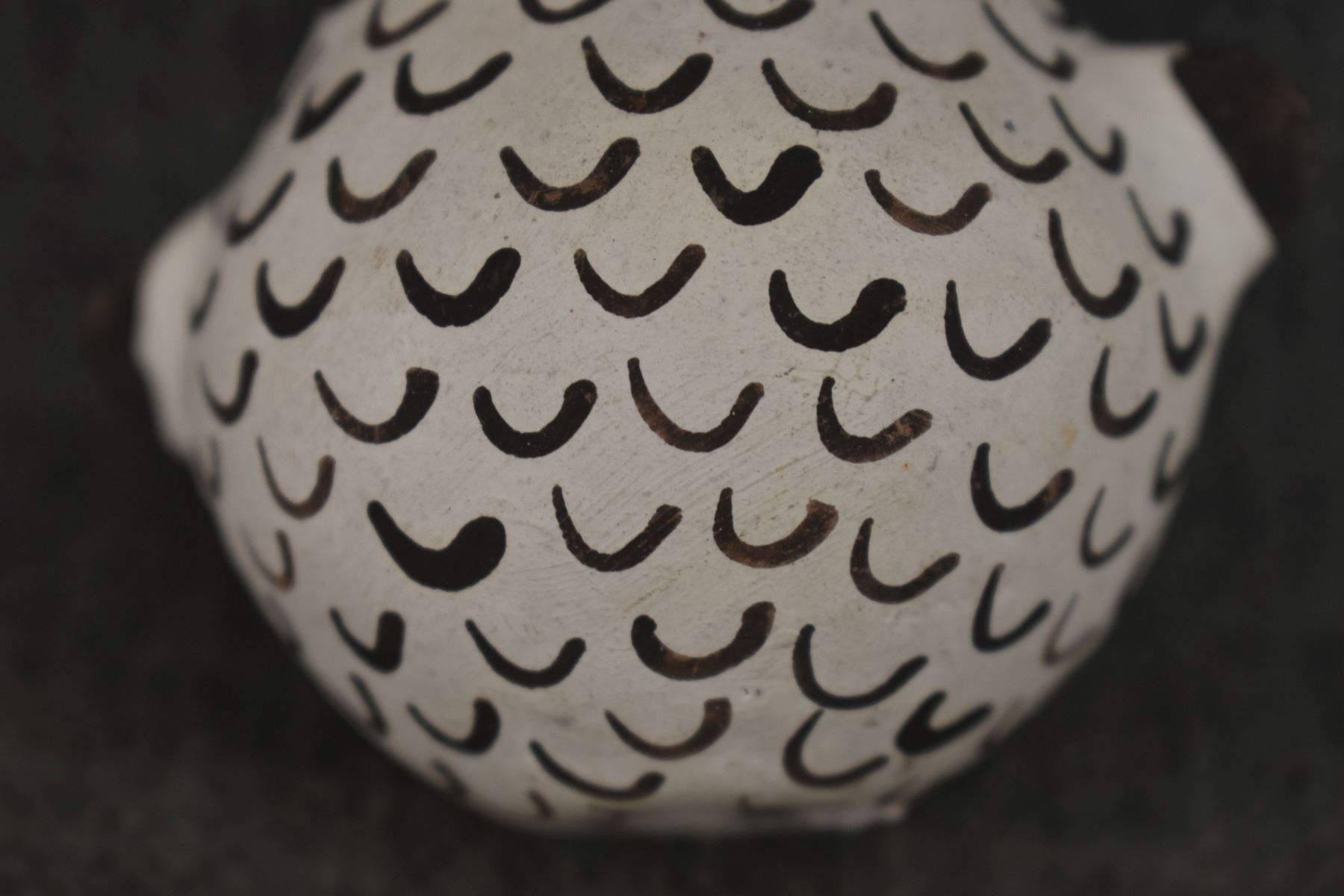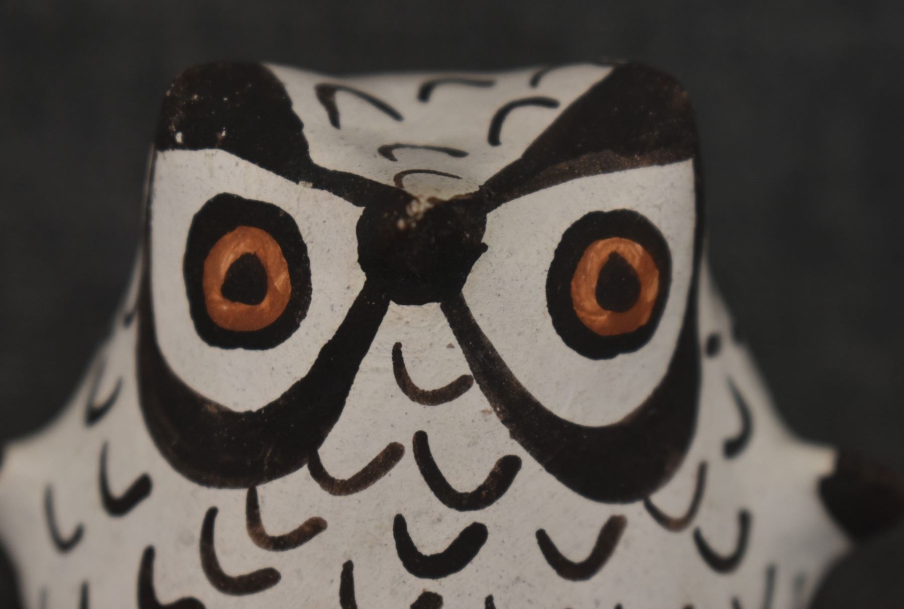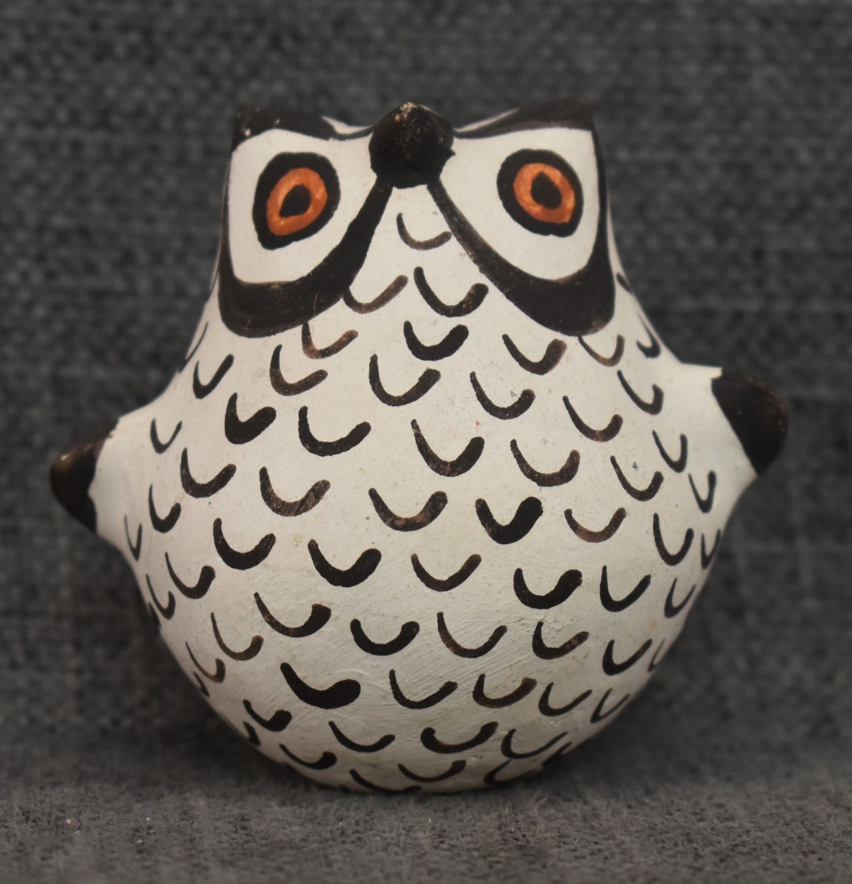 1970's Acoma. Hand coiled and painted pottery owl, signed Joyce. 3'' x 3''