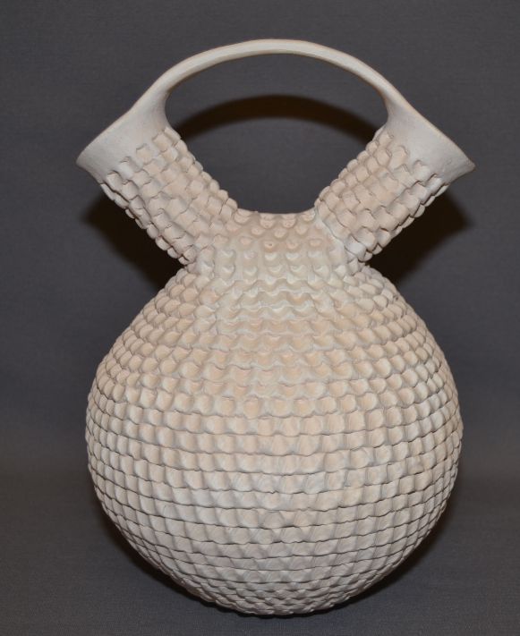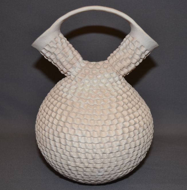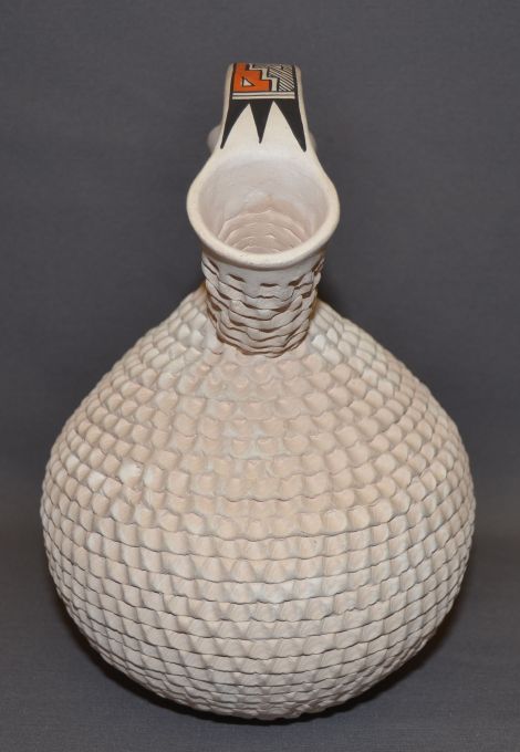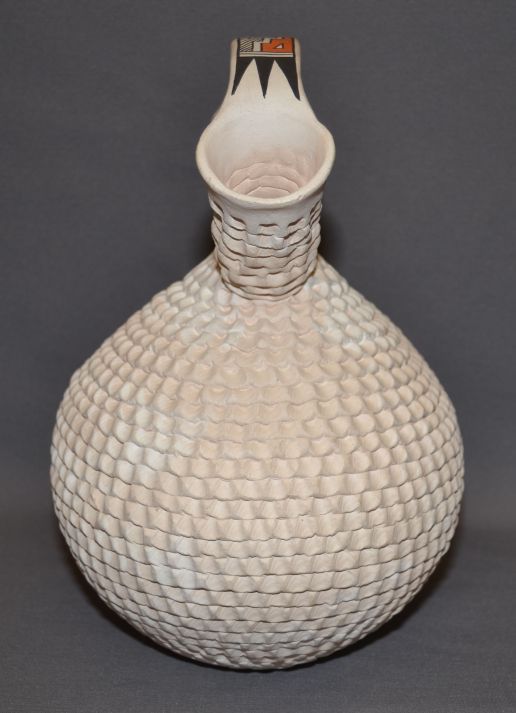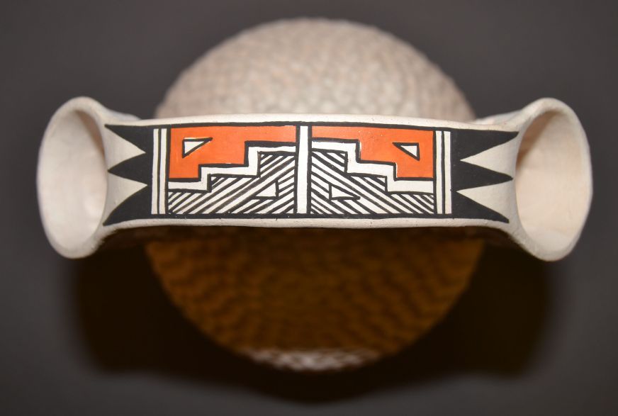 1970s corrugated design with polychrome painted handle signed S Shutiva 10.5"x7"