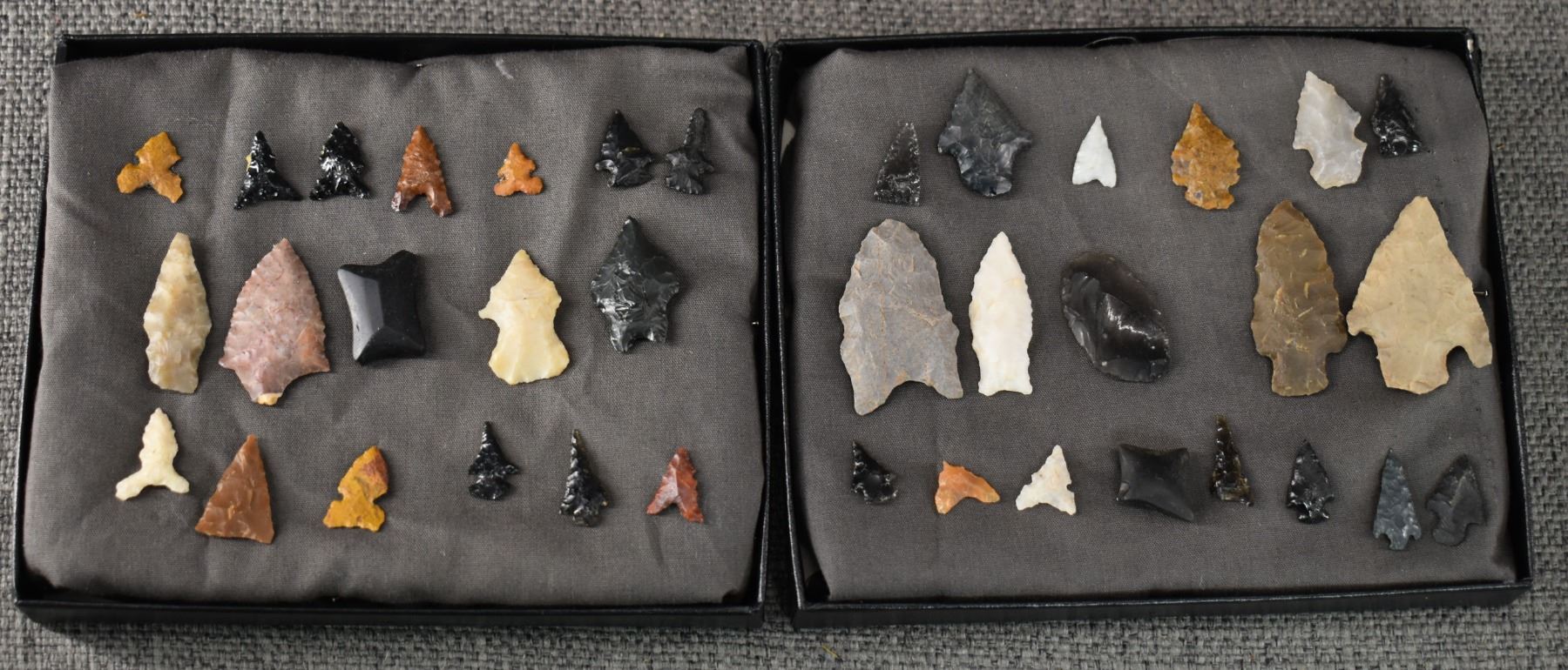 prehistoric Anasazi, hand knapped from stone arrowheads and bird points largest 1.5" long smallest .5" long