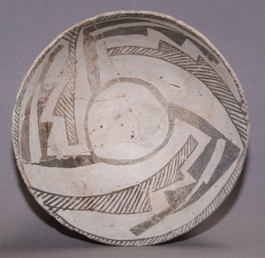 prehistoric black on white design has been glued has small amount of plaster, 3.5" x 8"