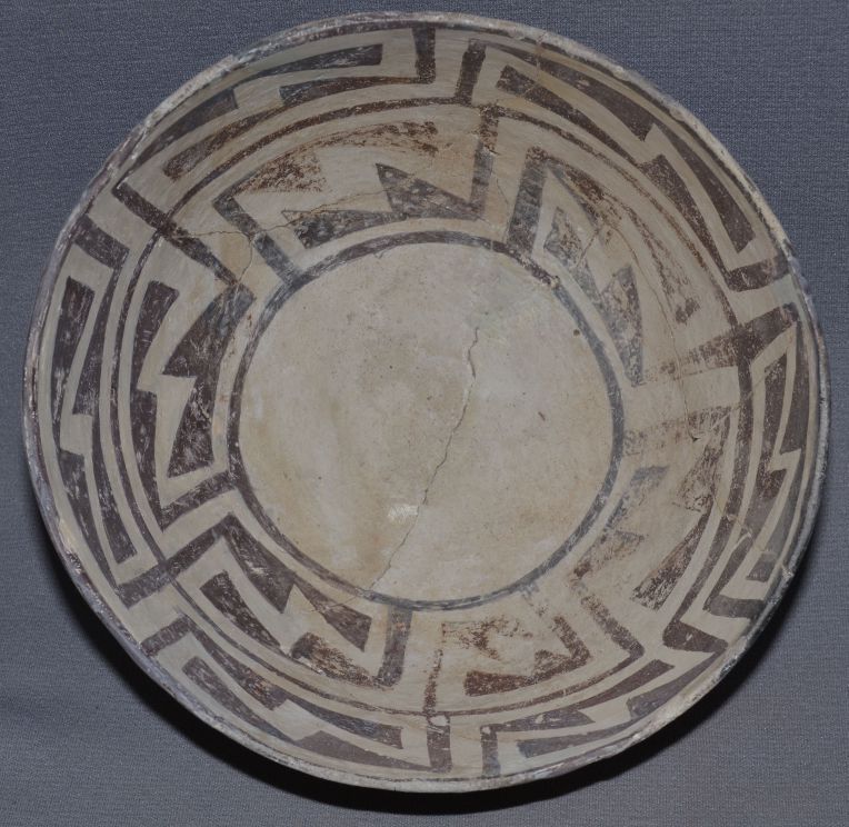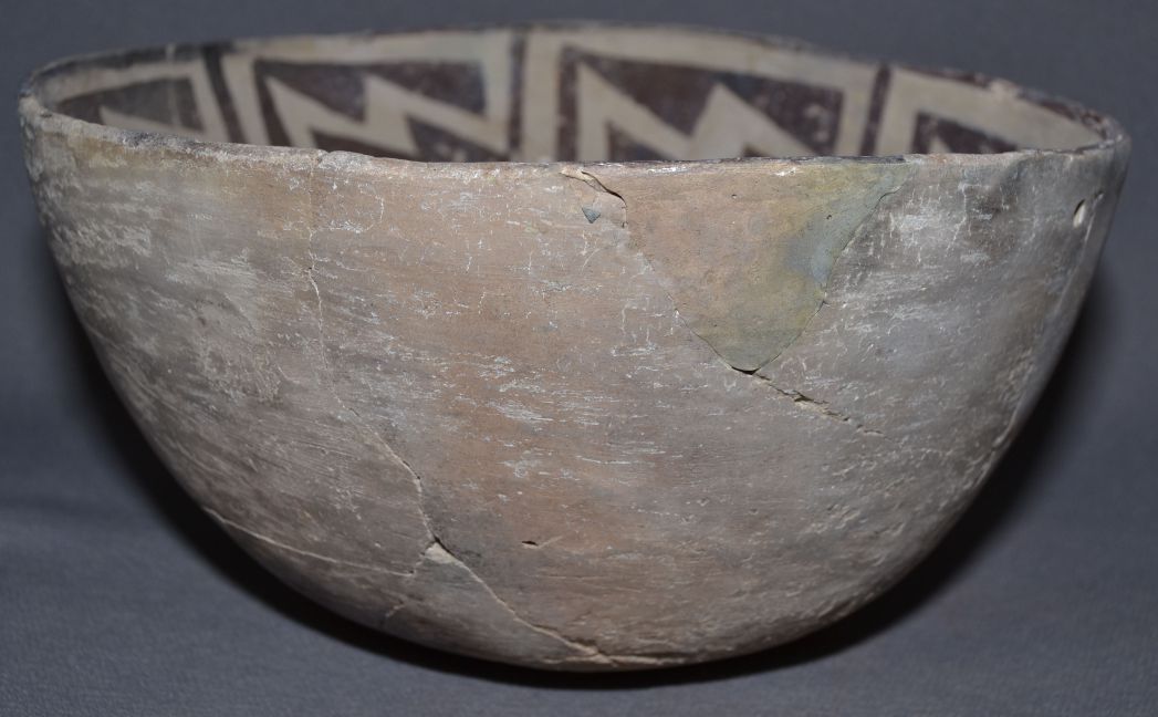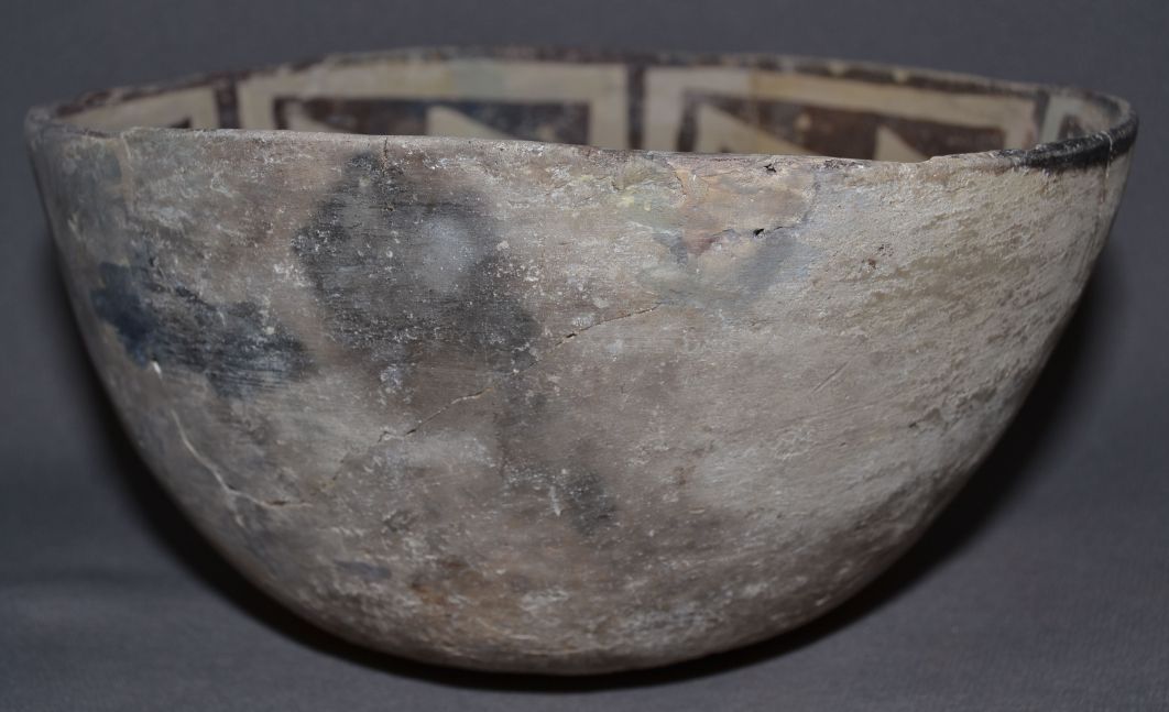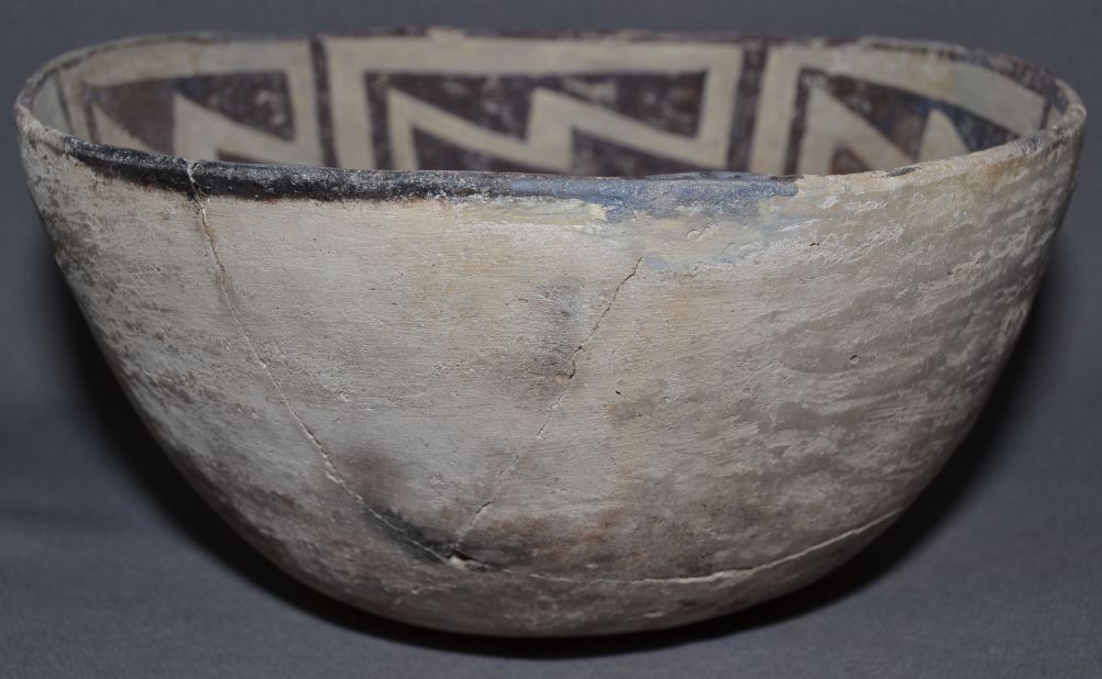prehistoric black on white painted design proximally 15% plaster 4" x 8.5"l