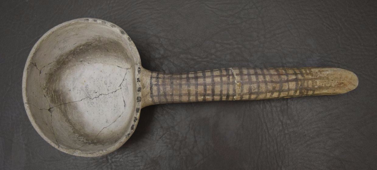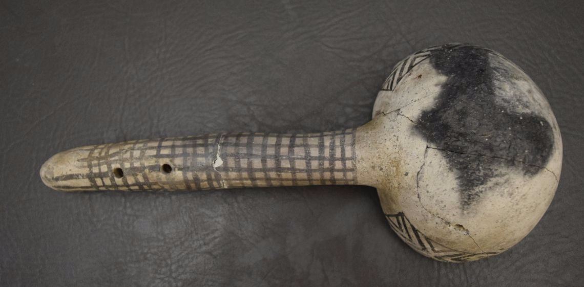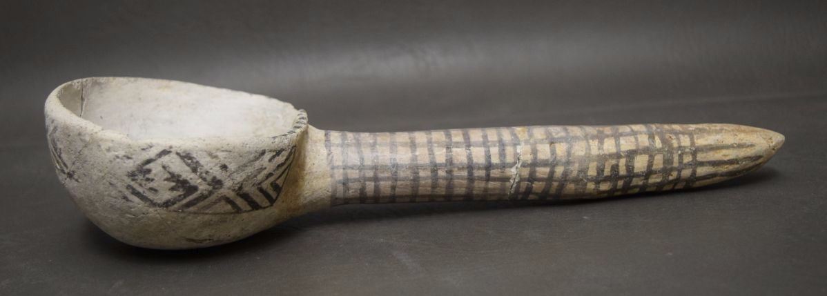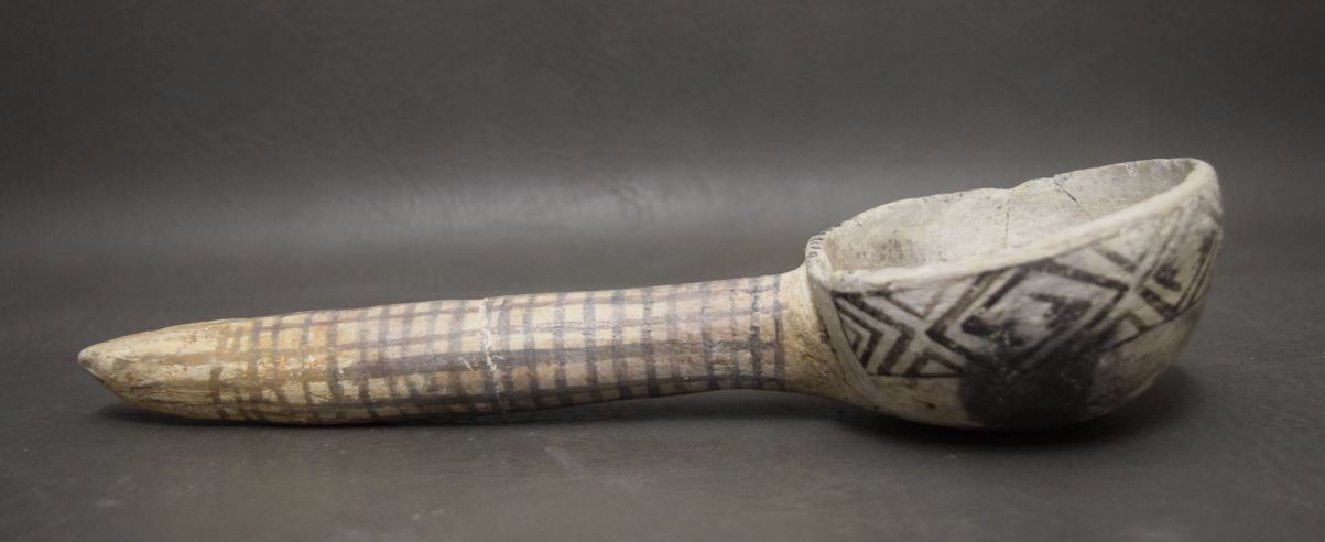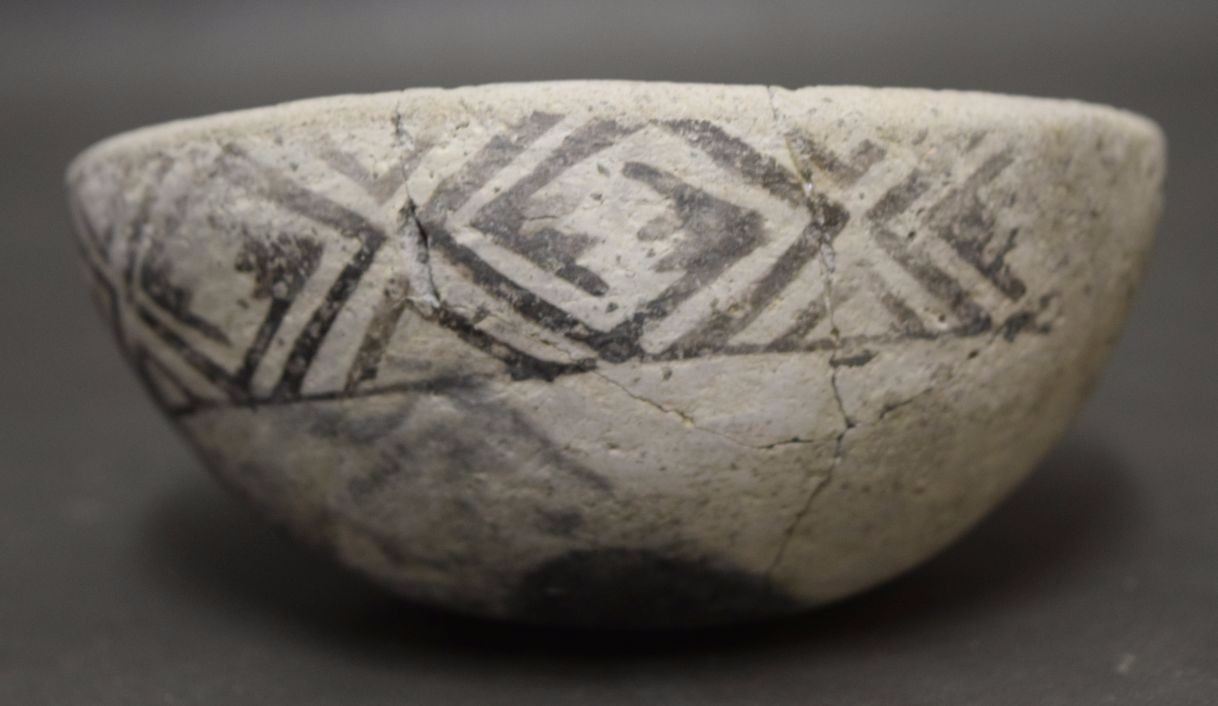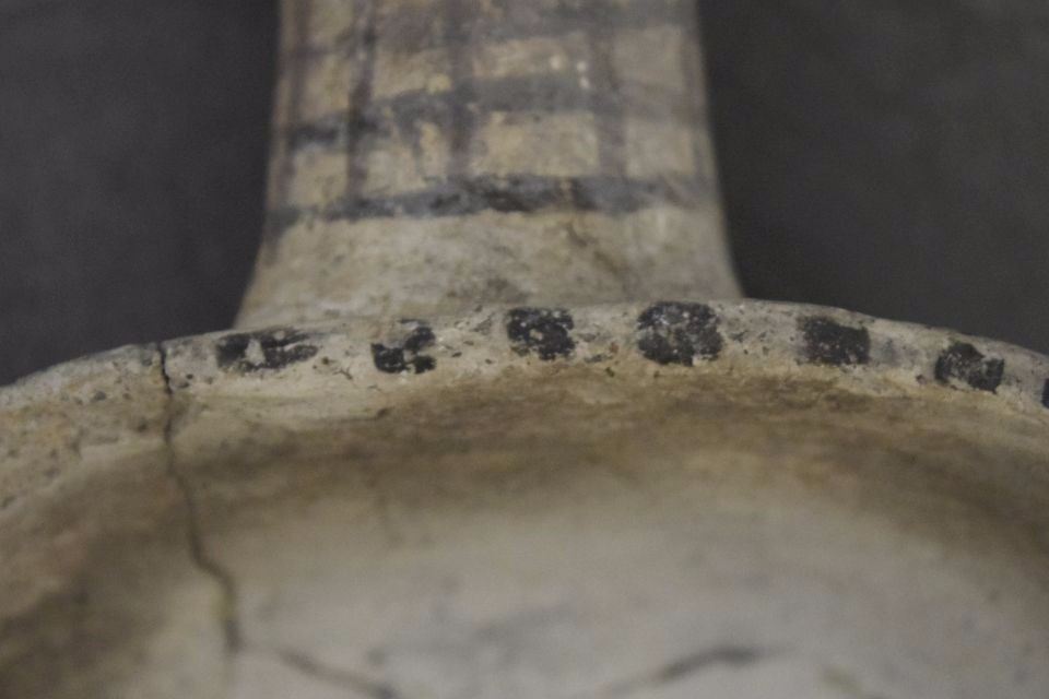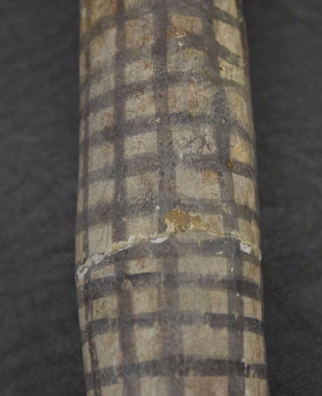 prehistoric black on white painted design has restoration and re paint approx. 20% plaster 11'' x 4'' x 2''