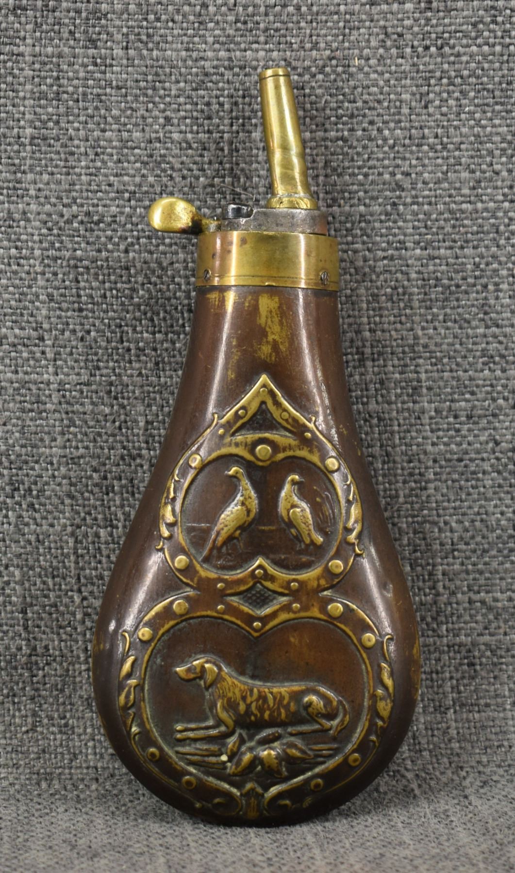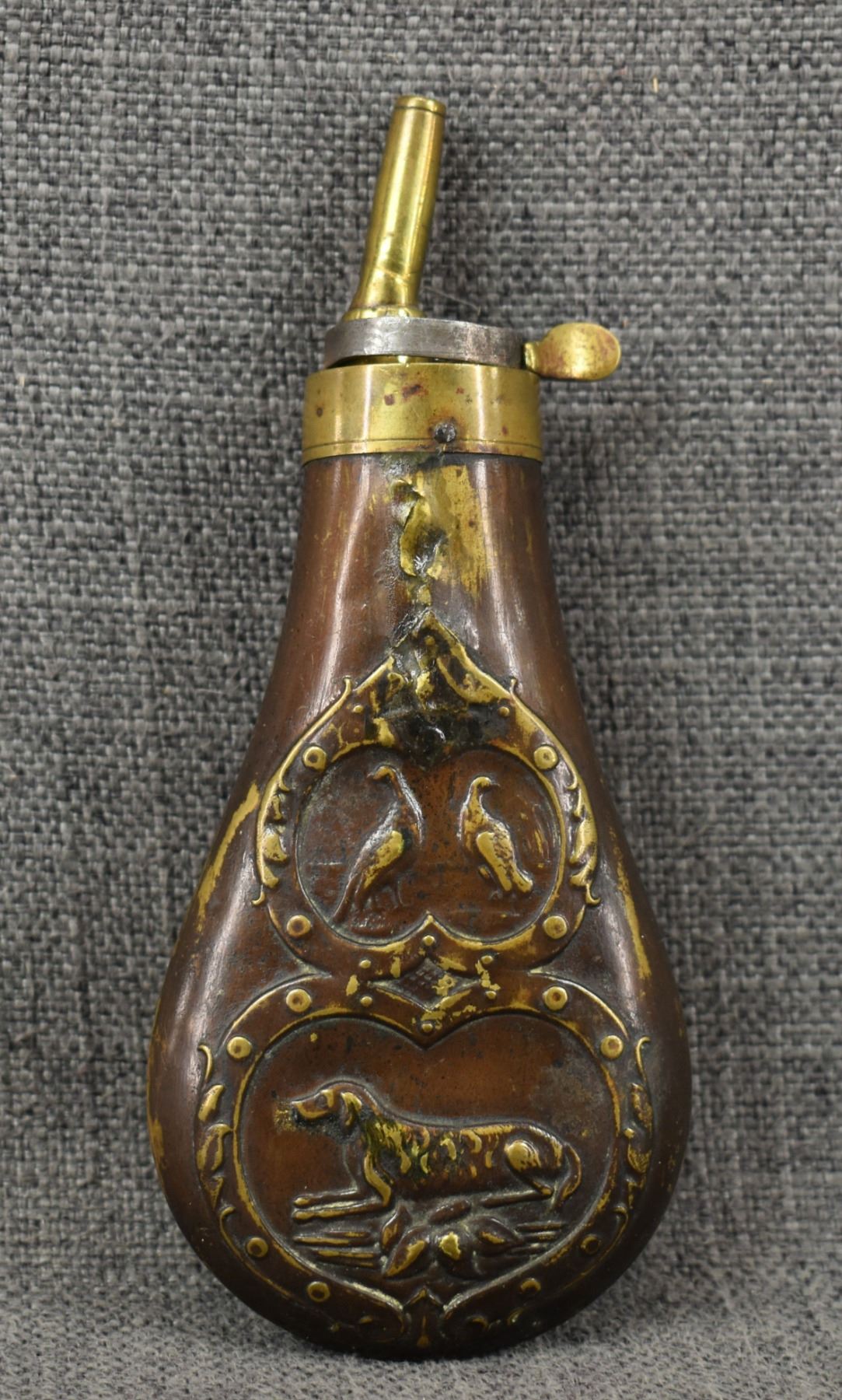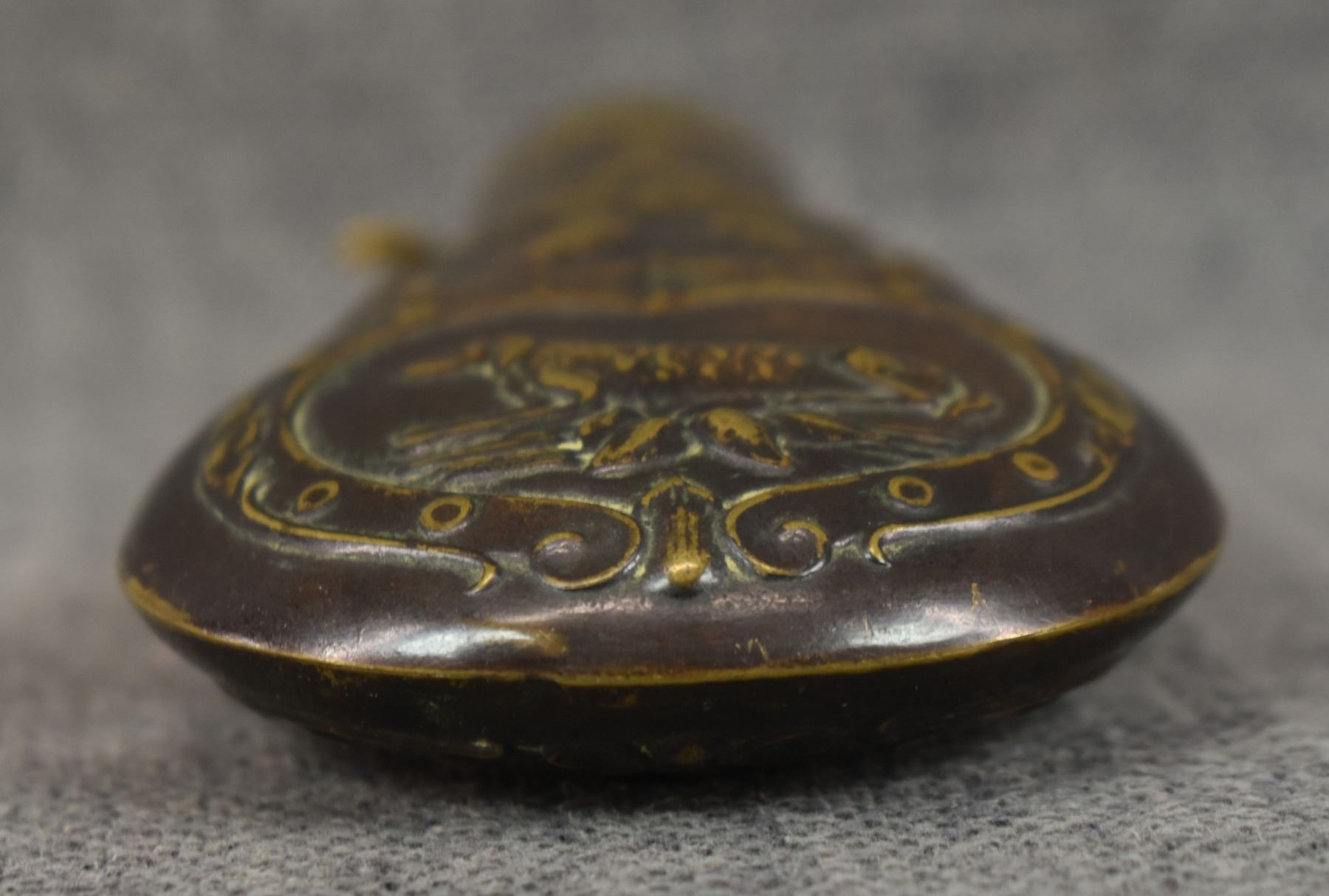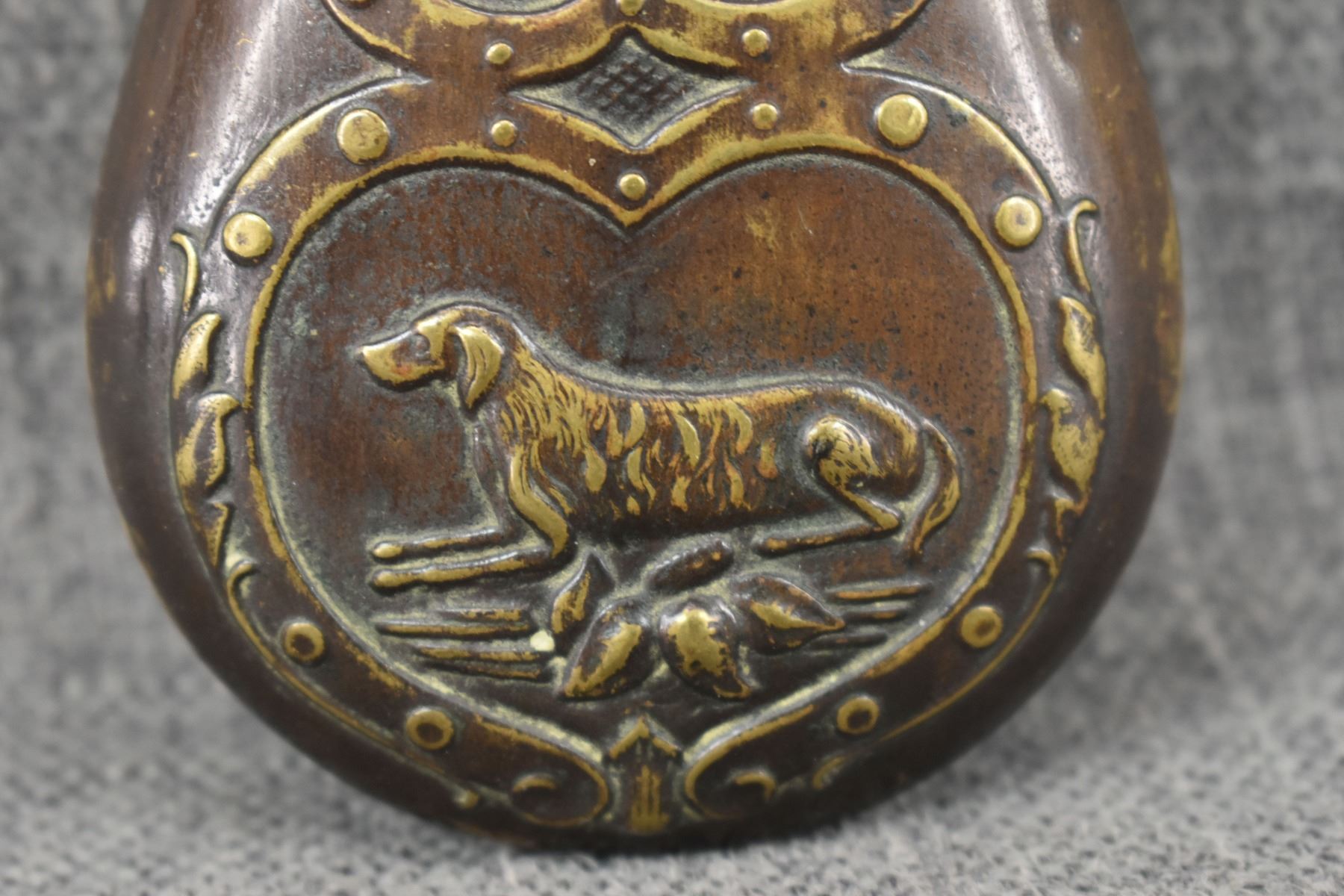 19th century, brass with dog and duck design 6.5" x 2.75"
