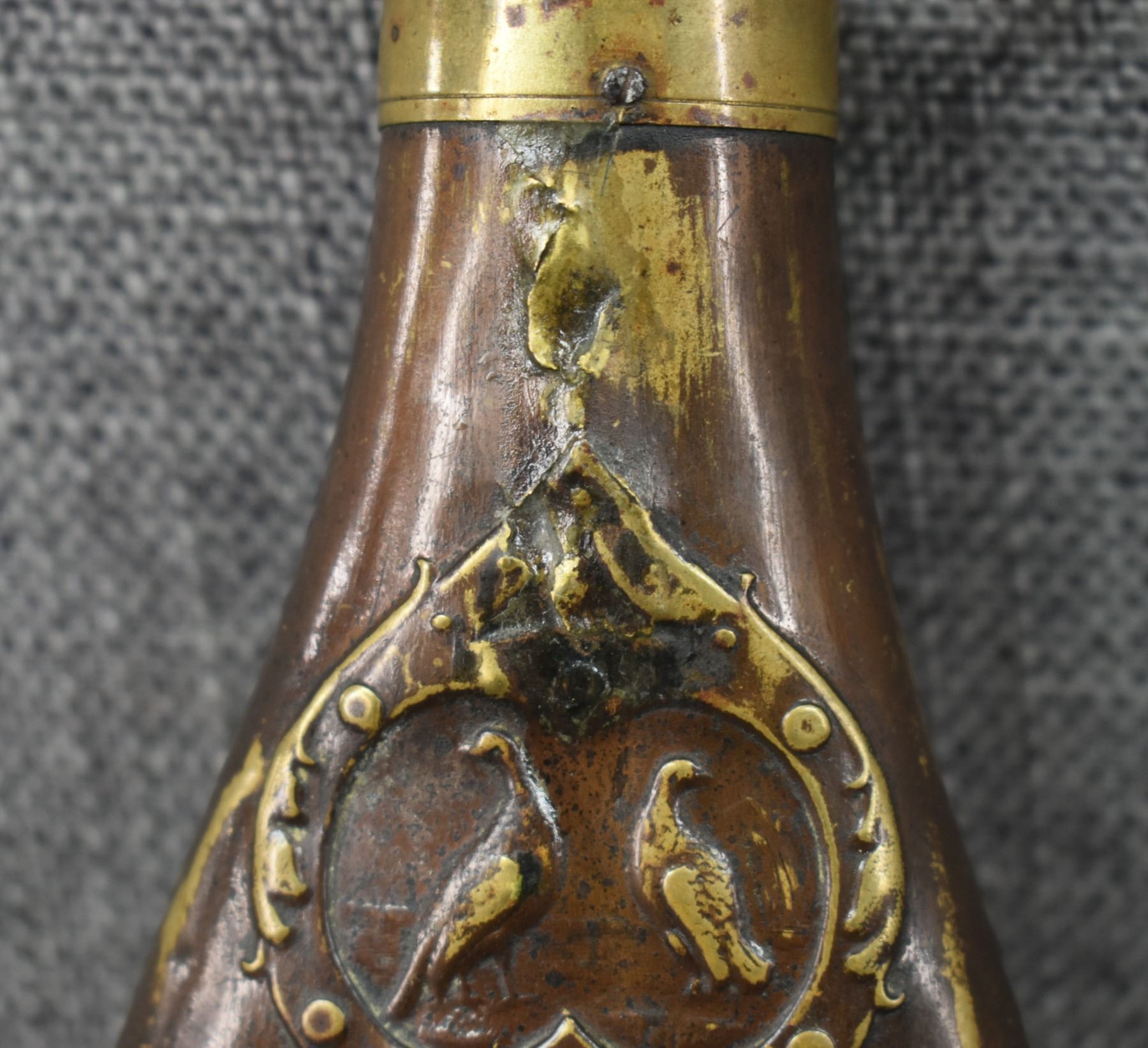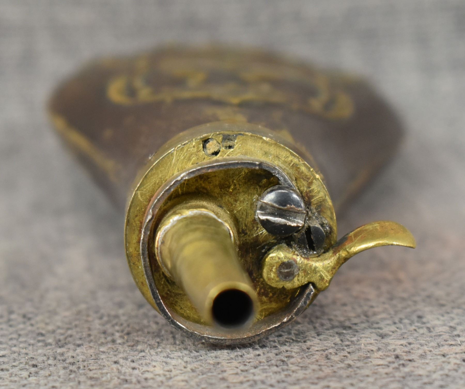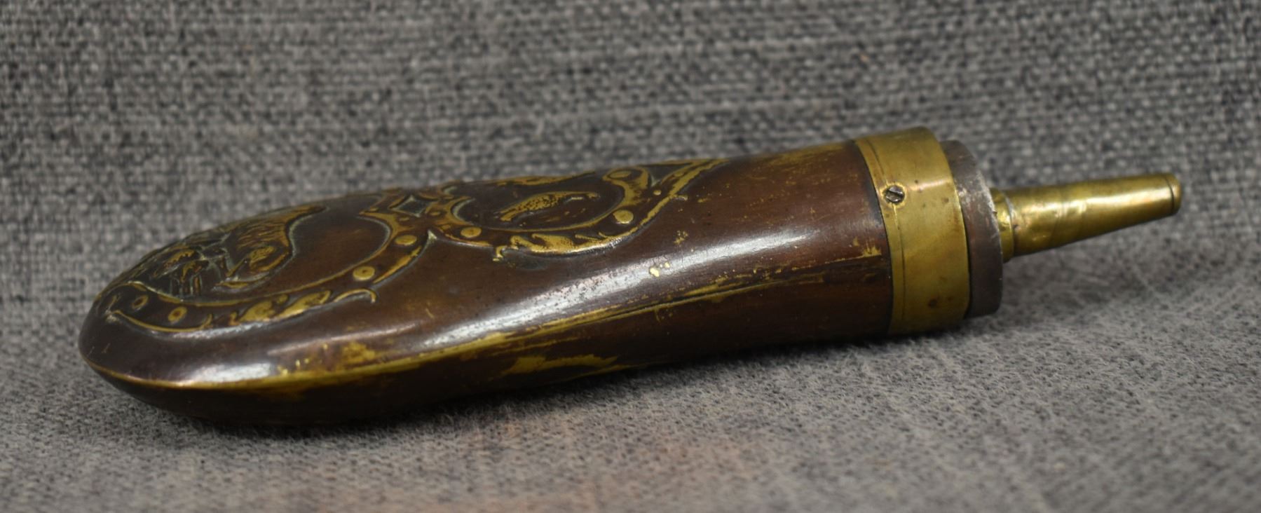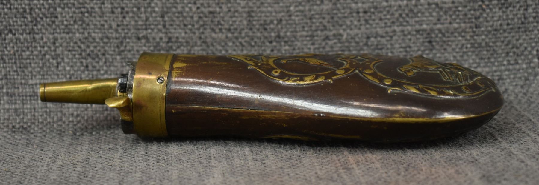 19th century, brass with dog and duck design 6.5" x 2.75"