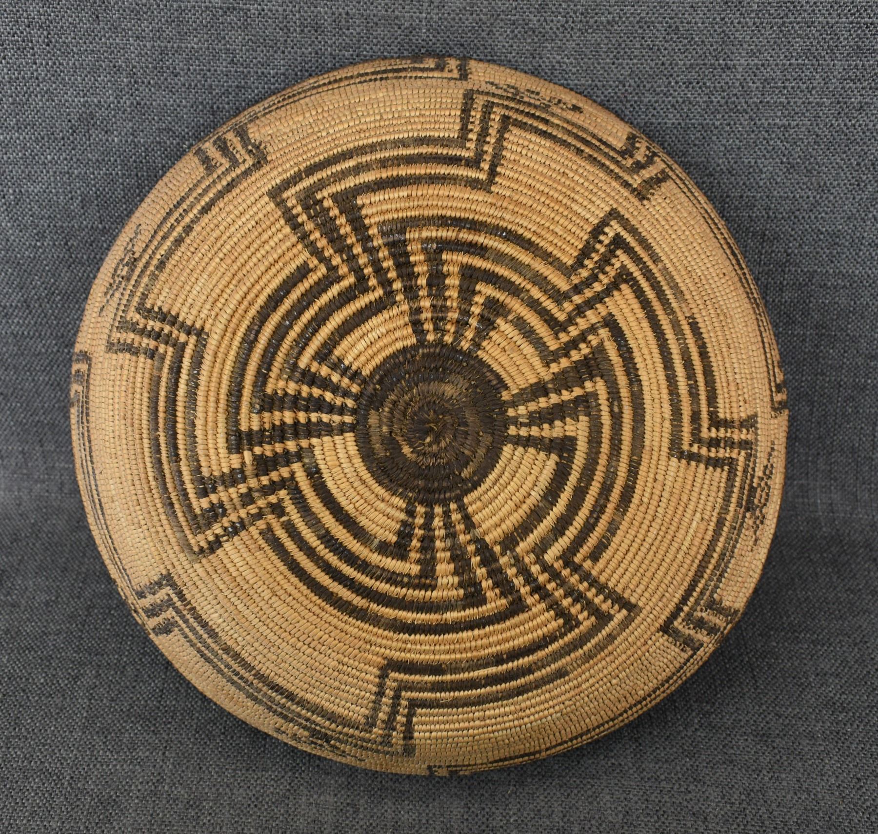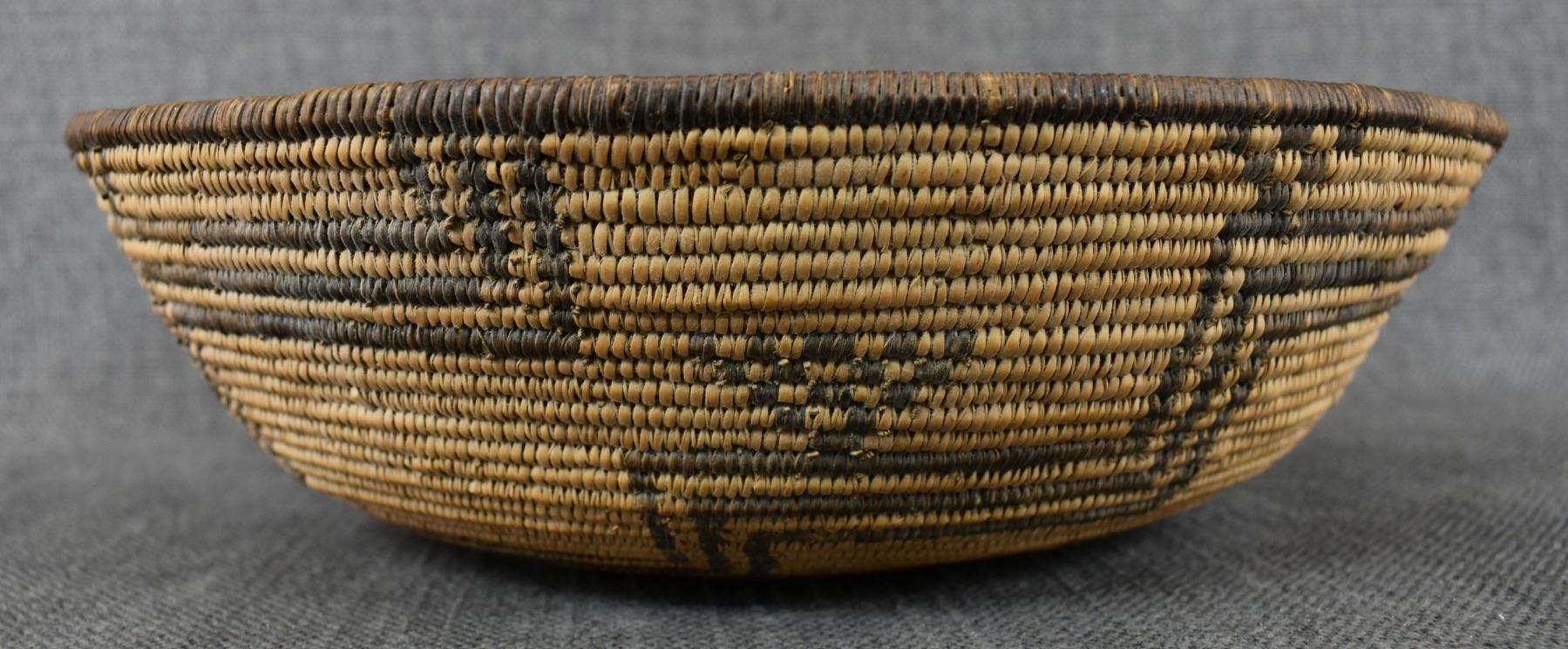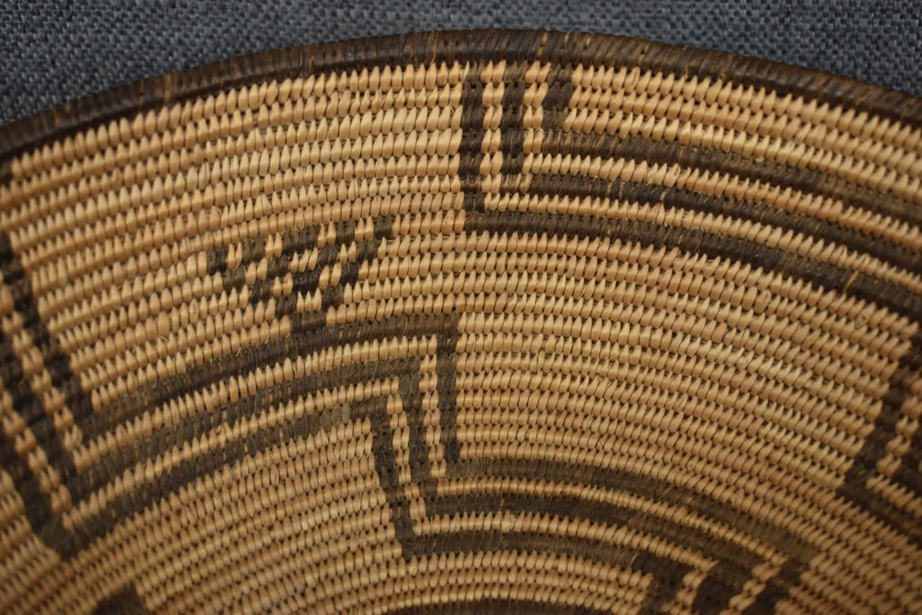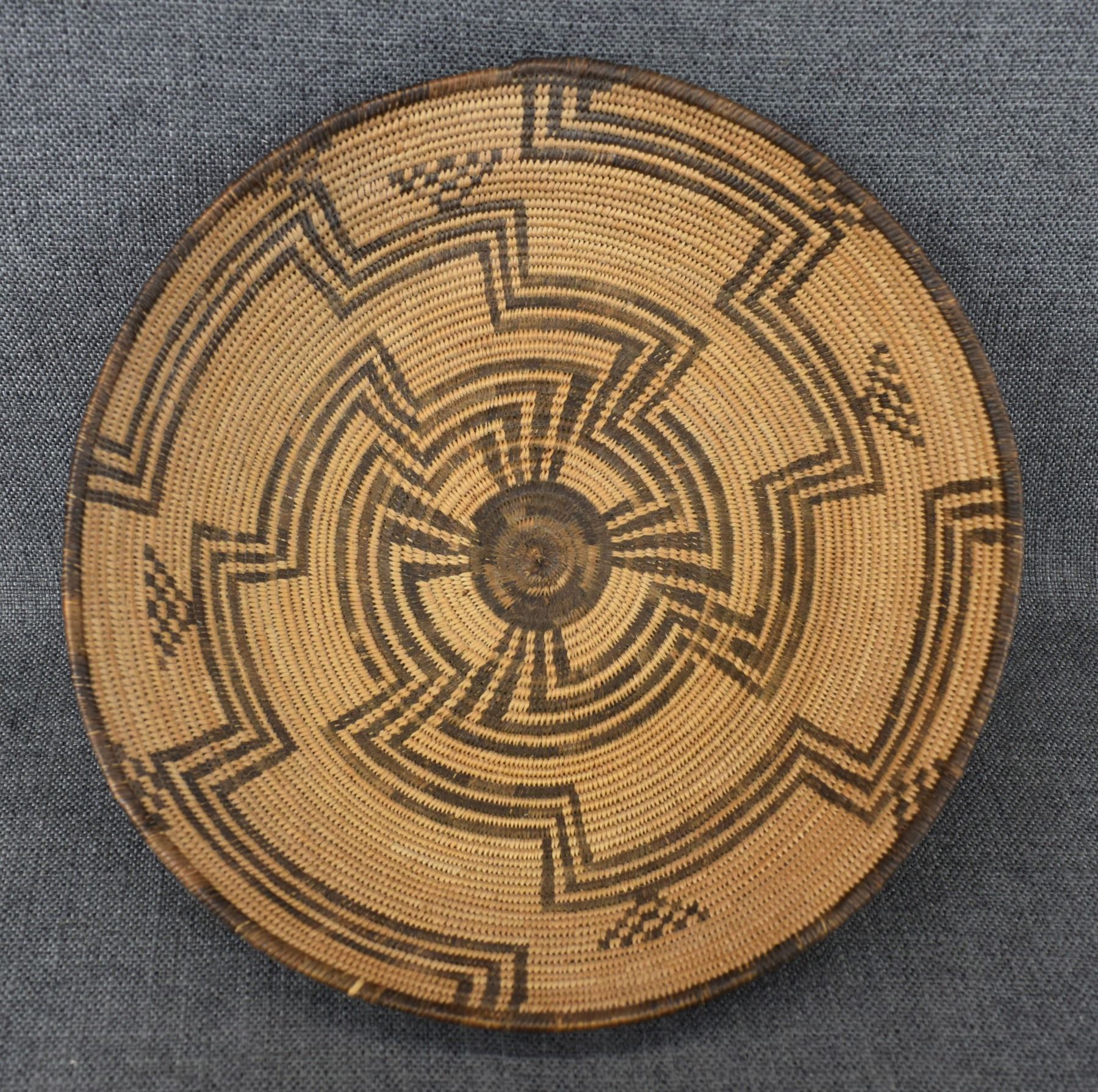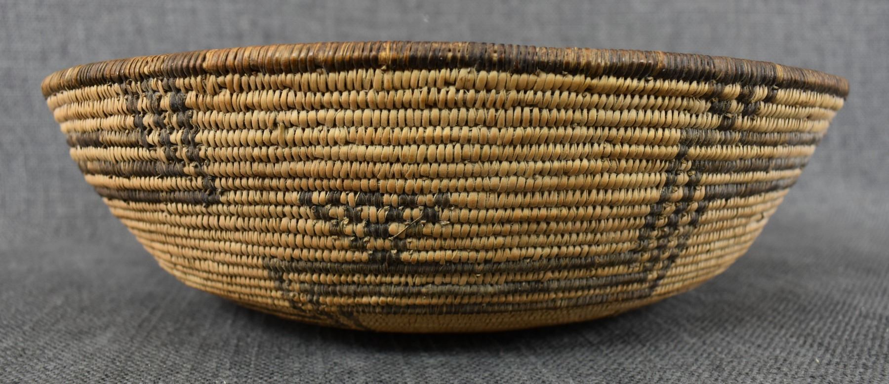 1920's Apache. Hand woven stair step design basketry bowl. 3'' x 12''