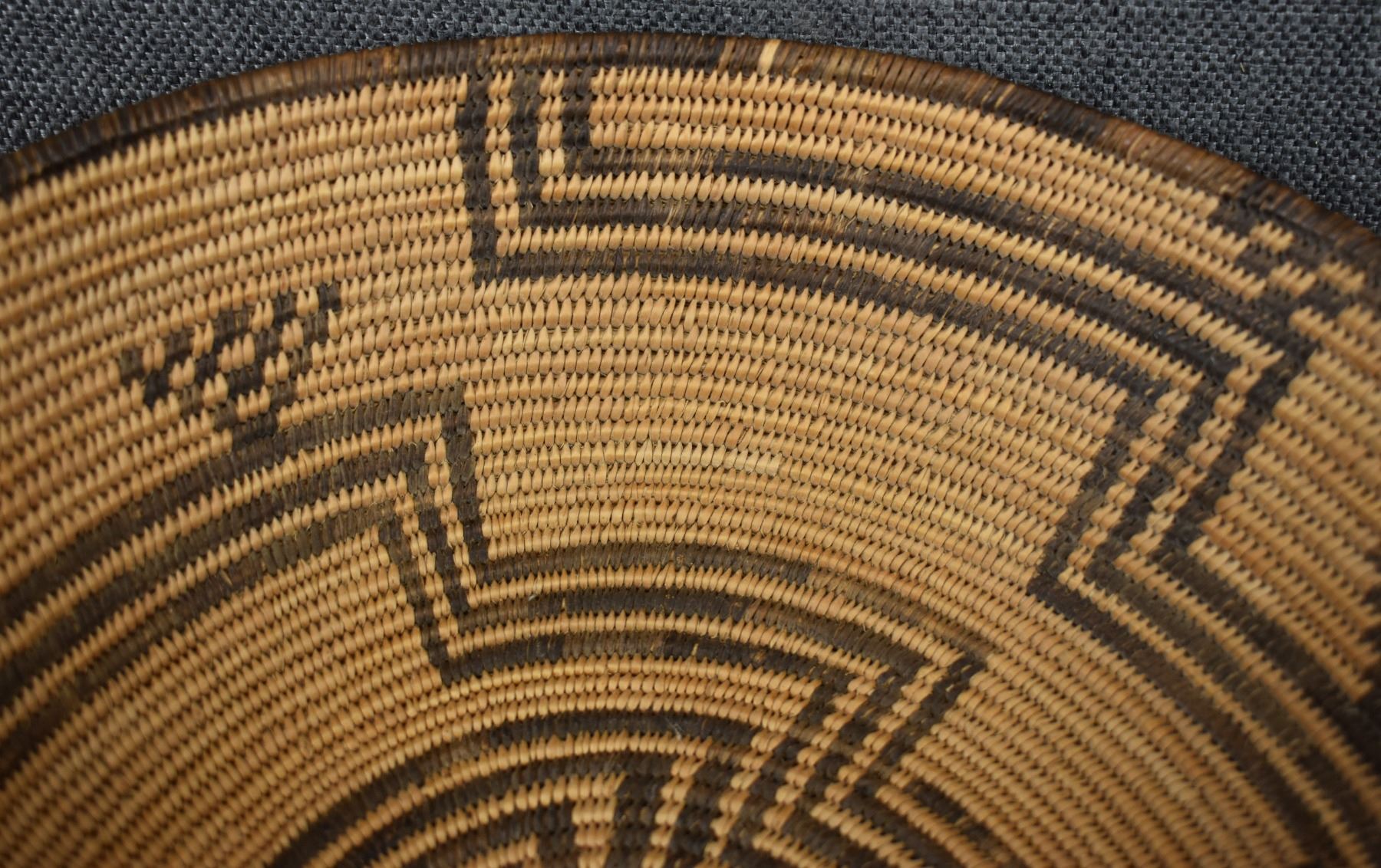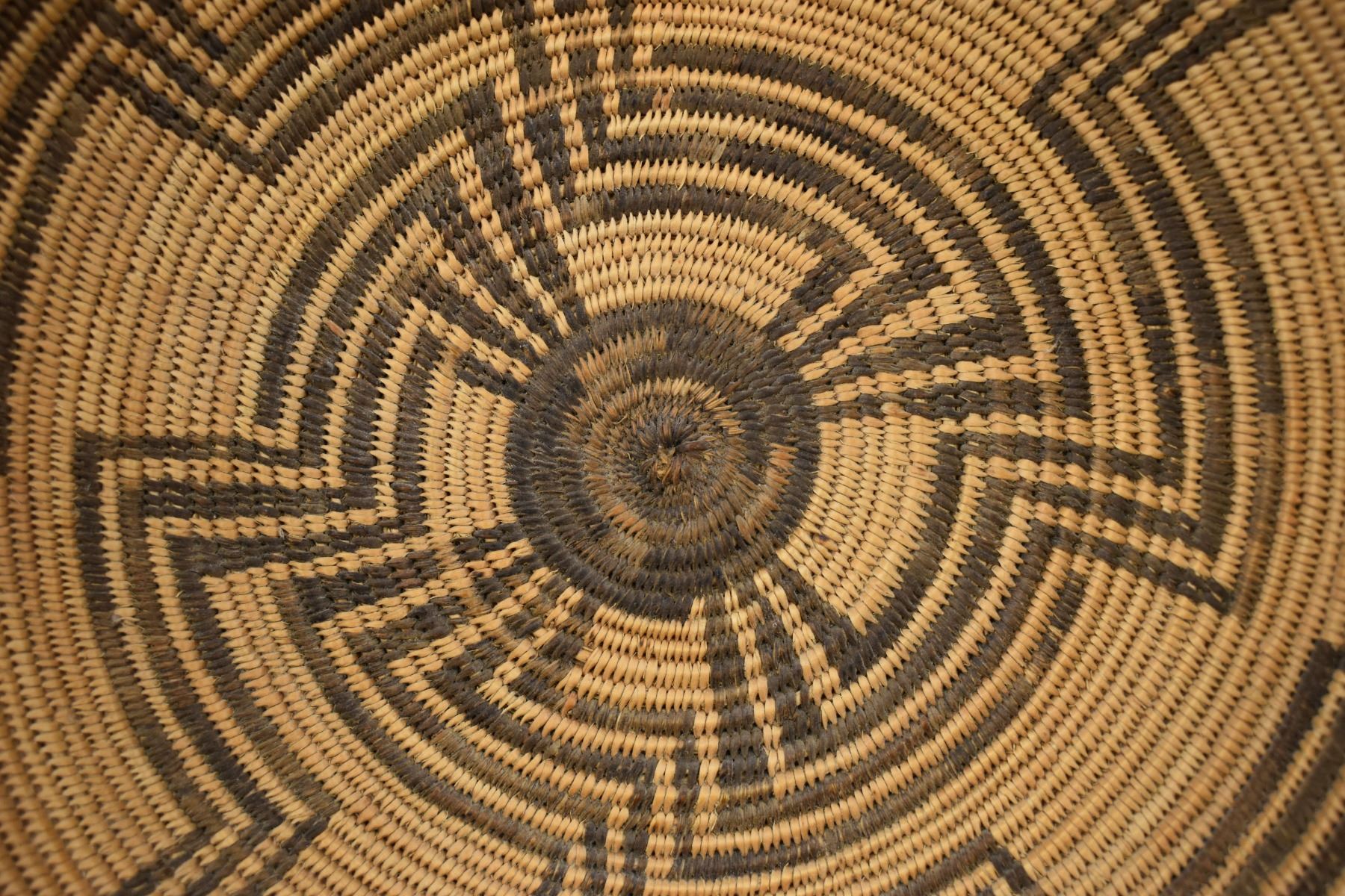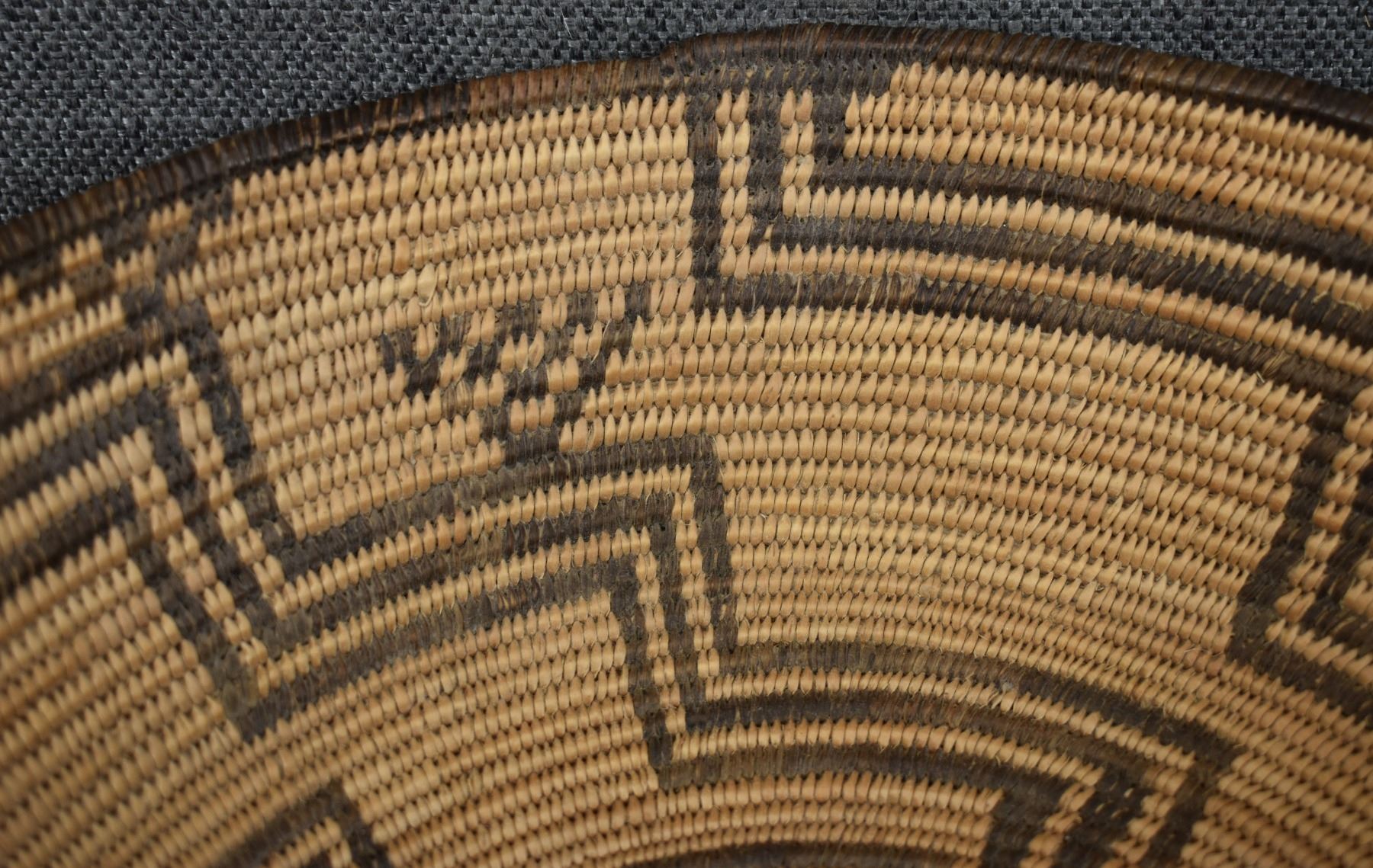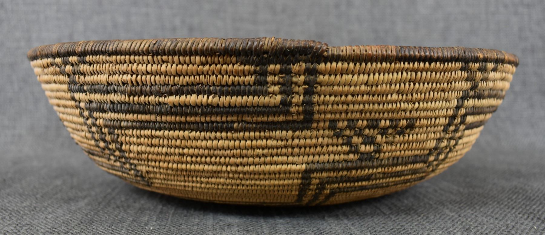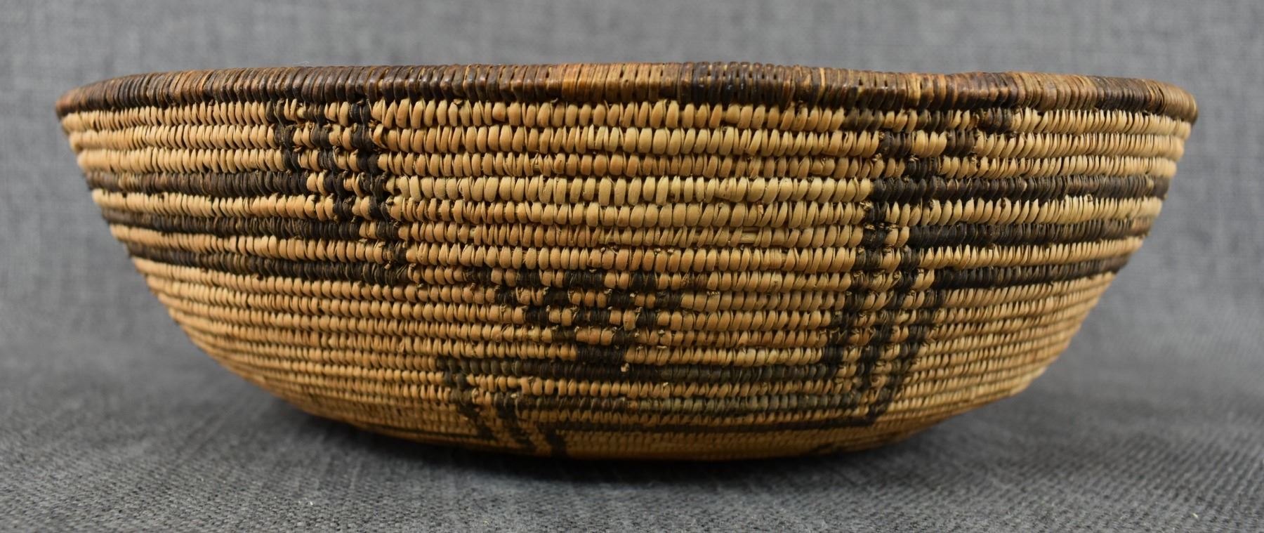 1920's Apache. Hand woven stair step design basketry bowl. 3'' x 12''