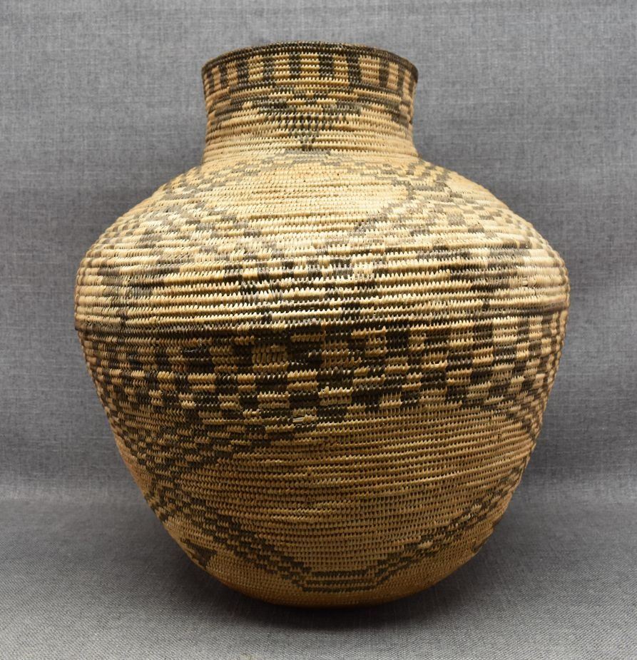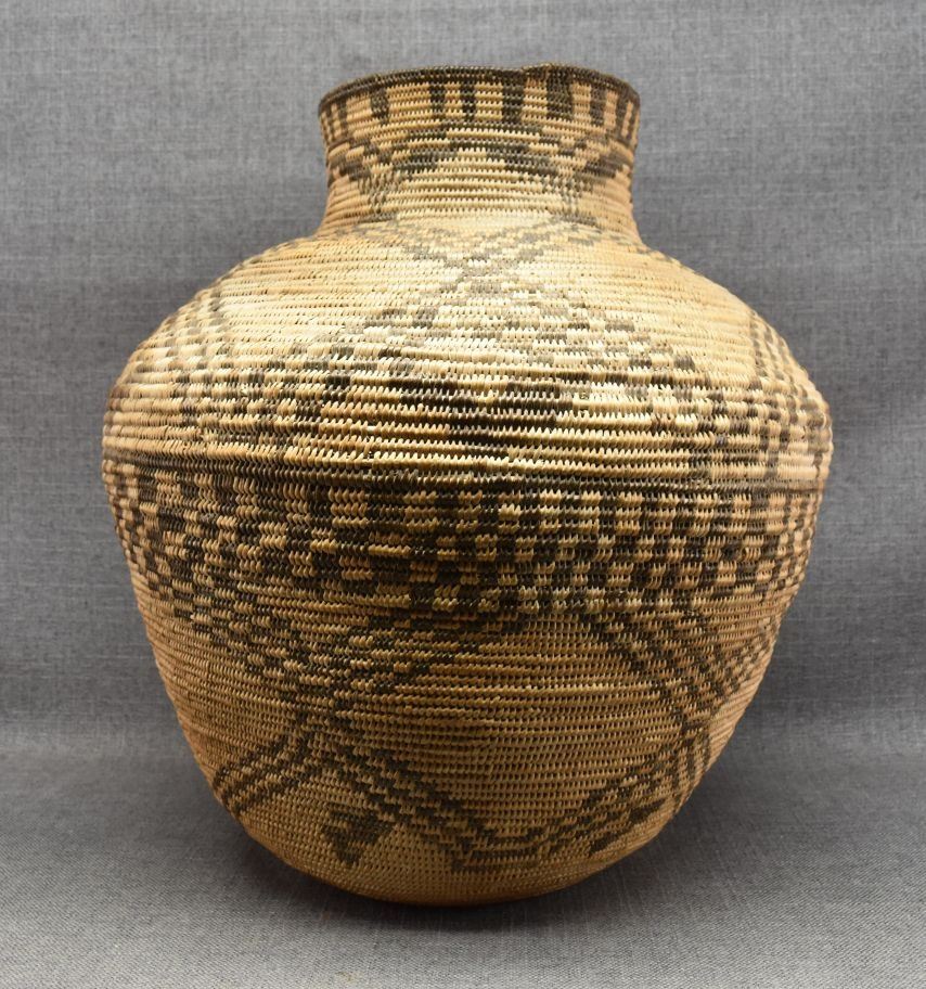 1920-30's Apache, hand woven geometric design 18" x 16" has missing stitches