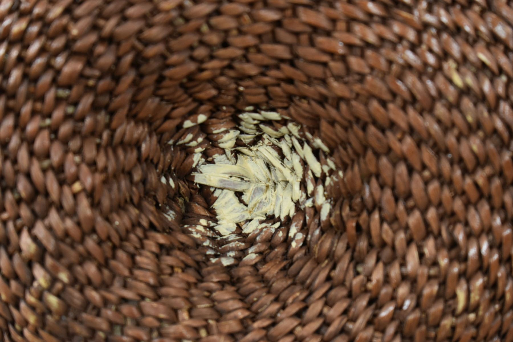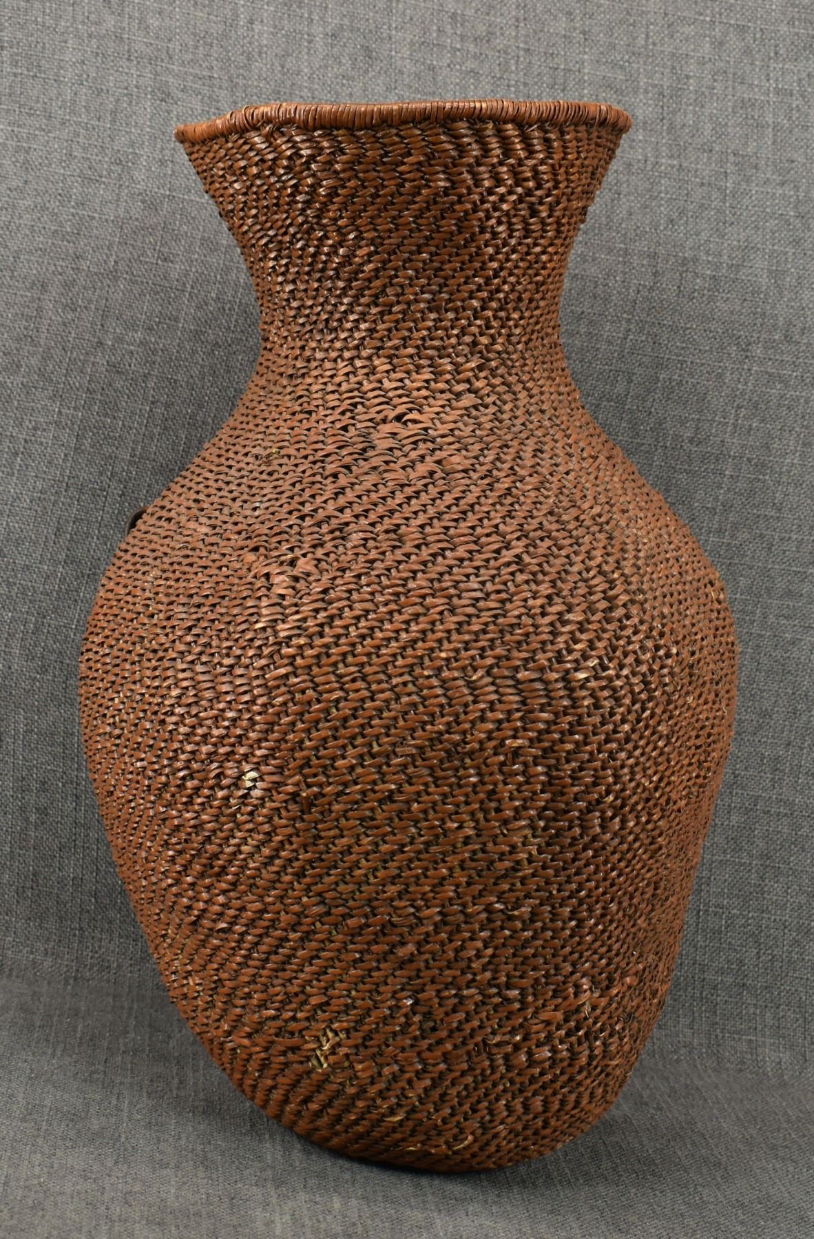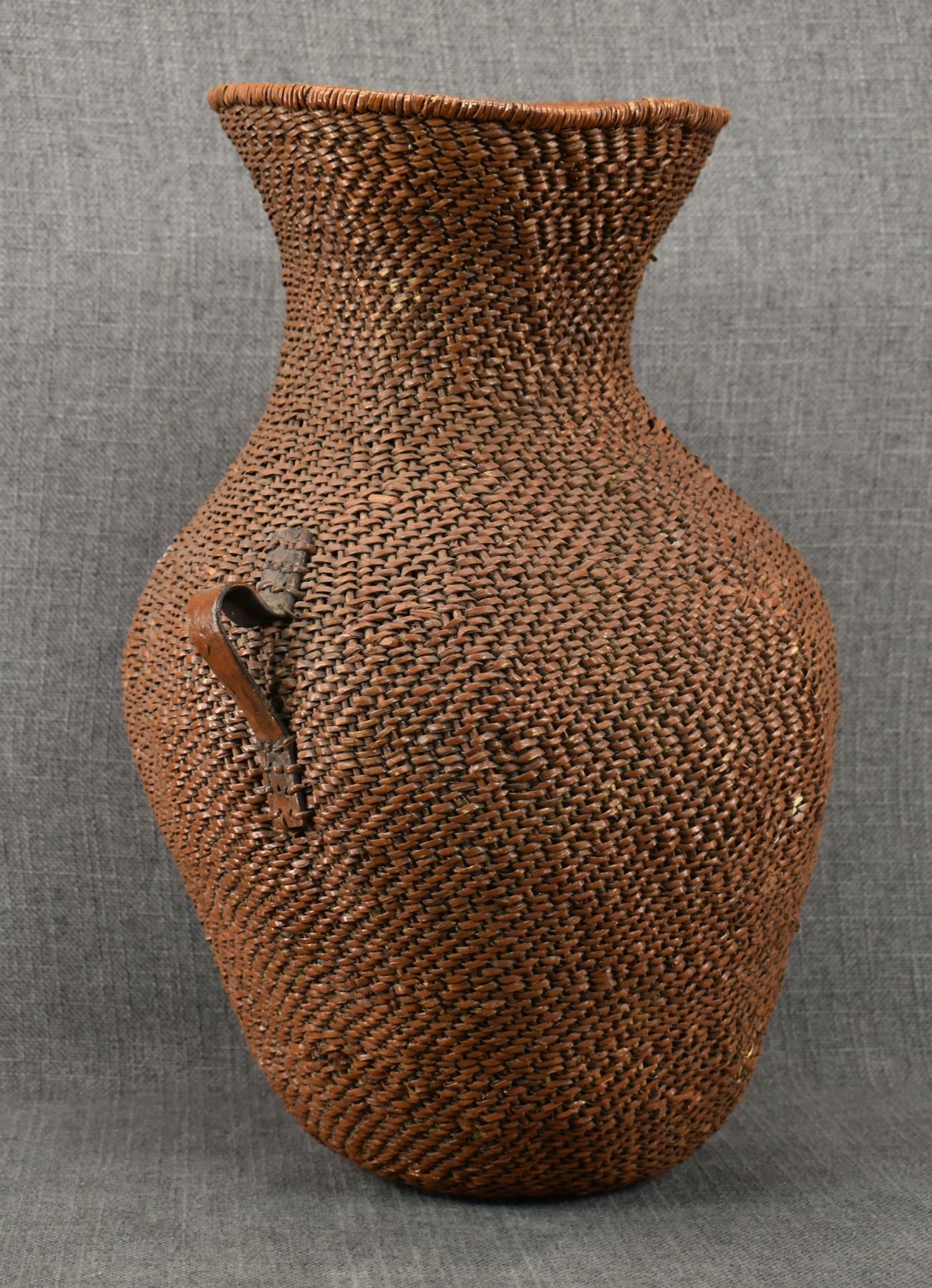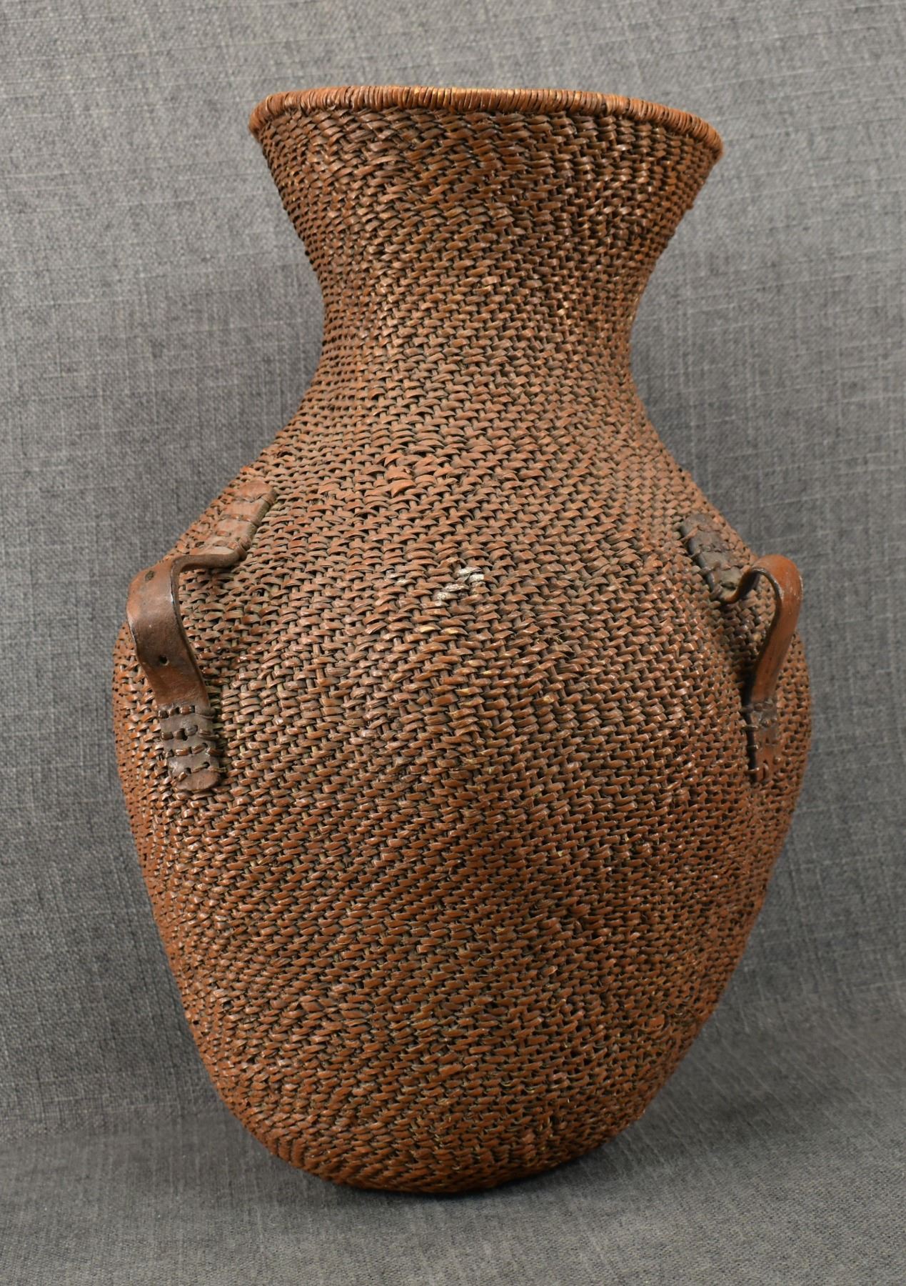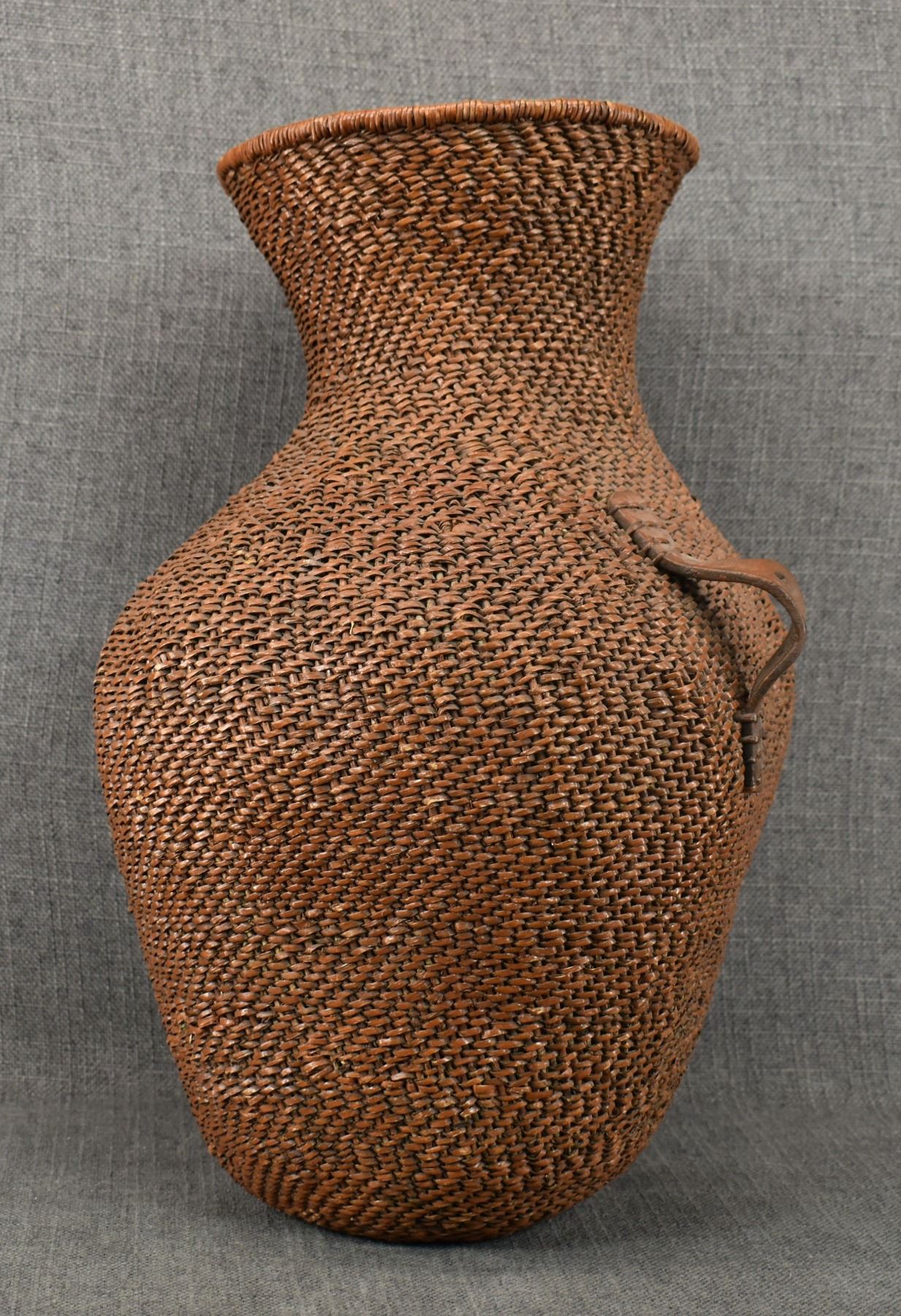 1930's Apache, hand woven with leather handles 17" x 10.5"