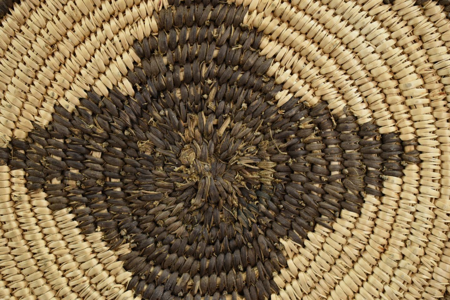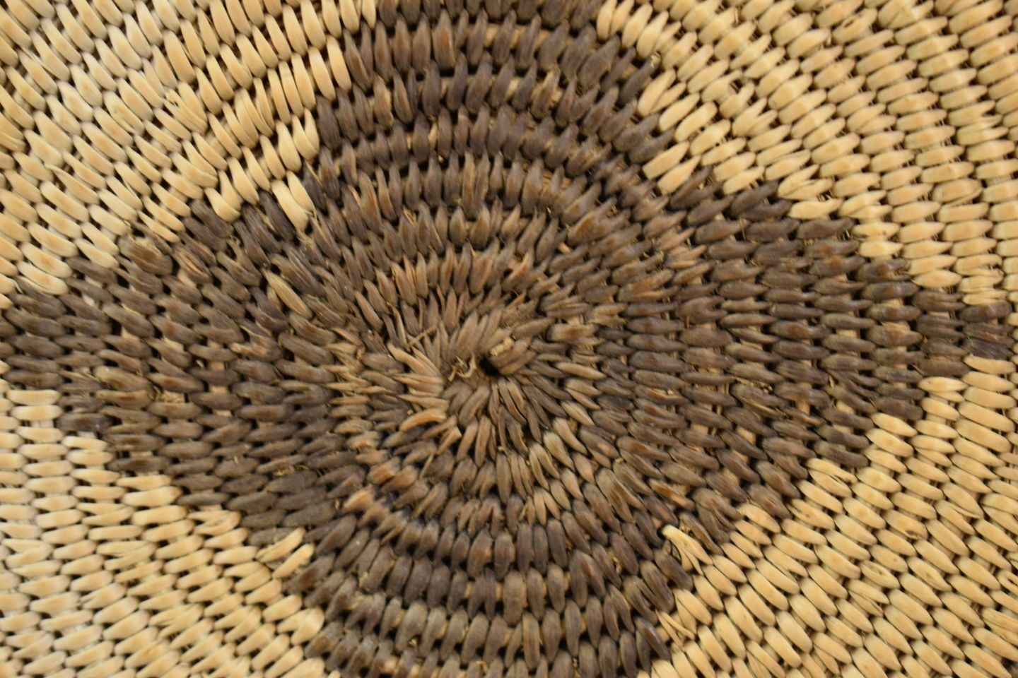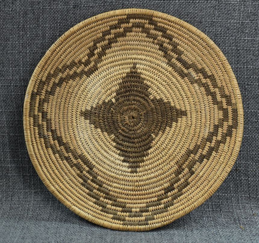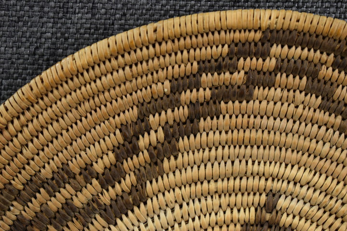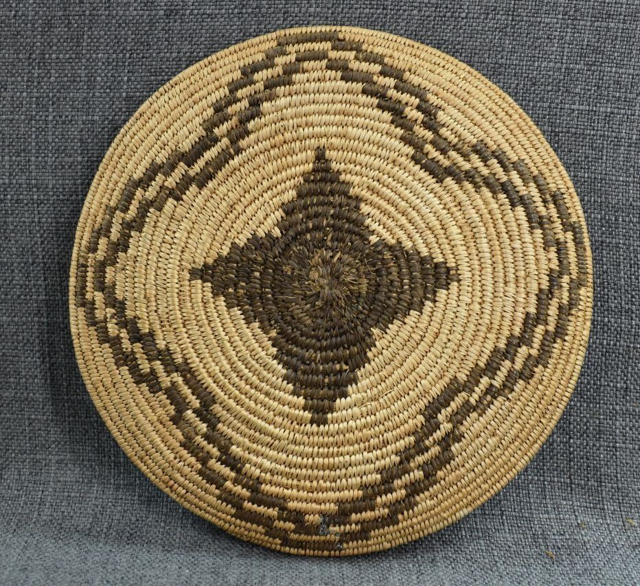 1920's Apache. Hand woven star design basketry plaque. 8.5'' Dia