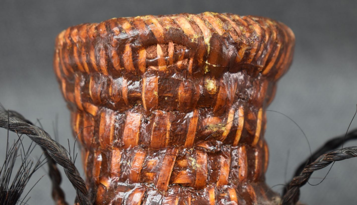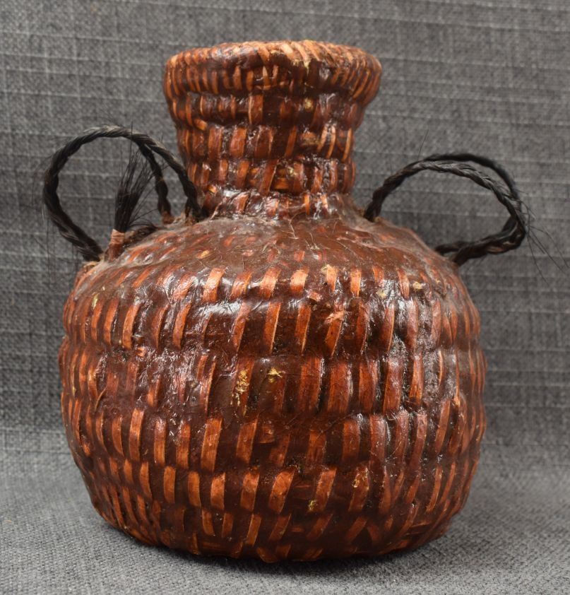 1950's Apache, hand woven and pitch covered with horsehair handles 7" x 6", has old tag attributing to Ella White