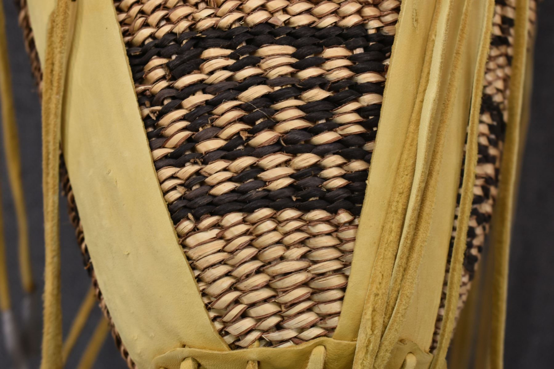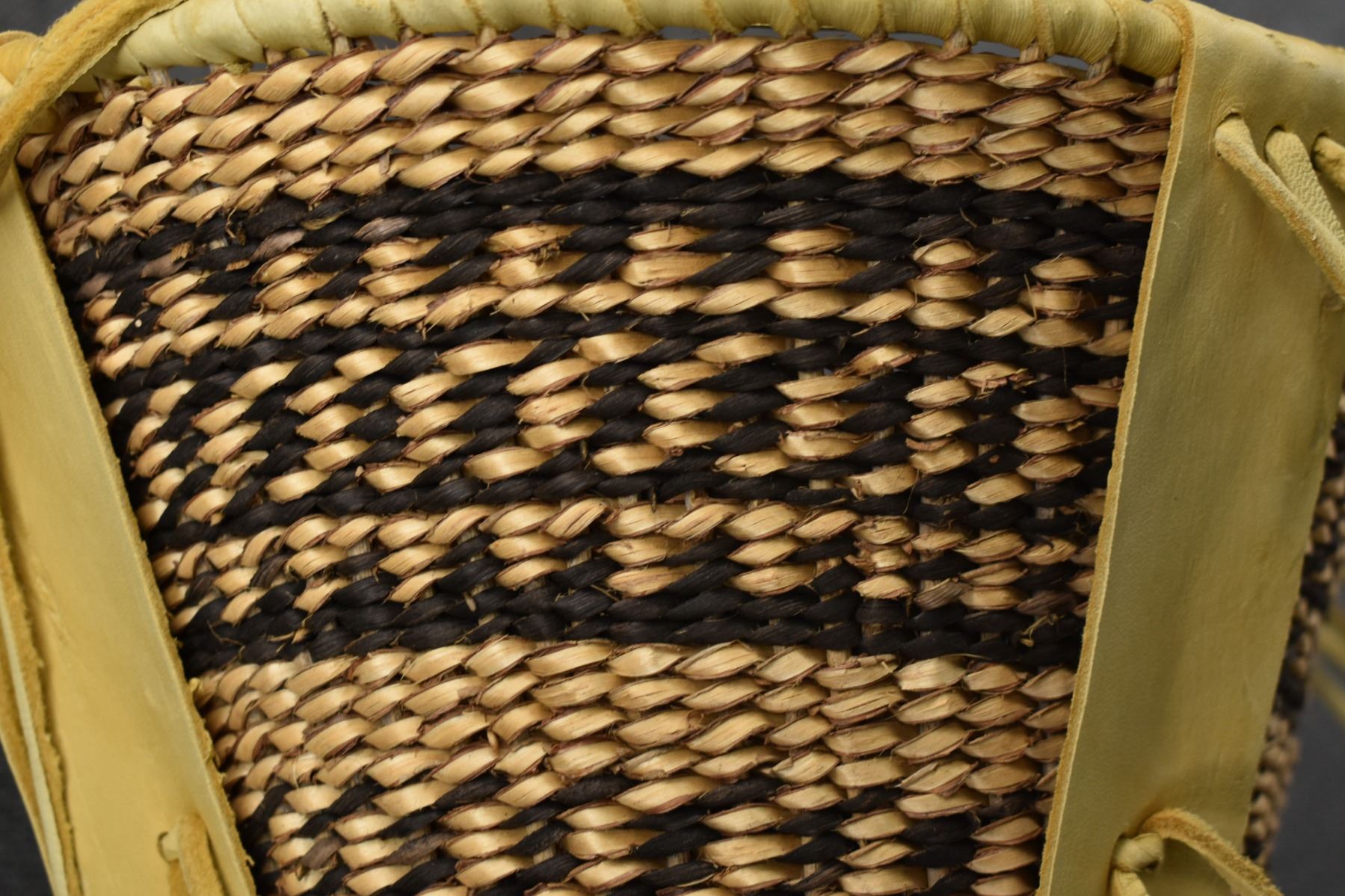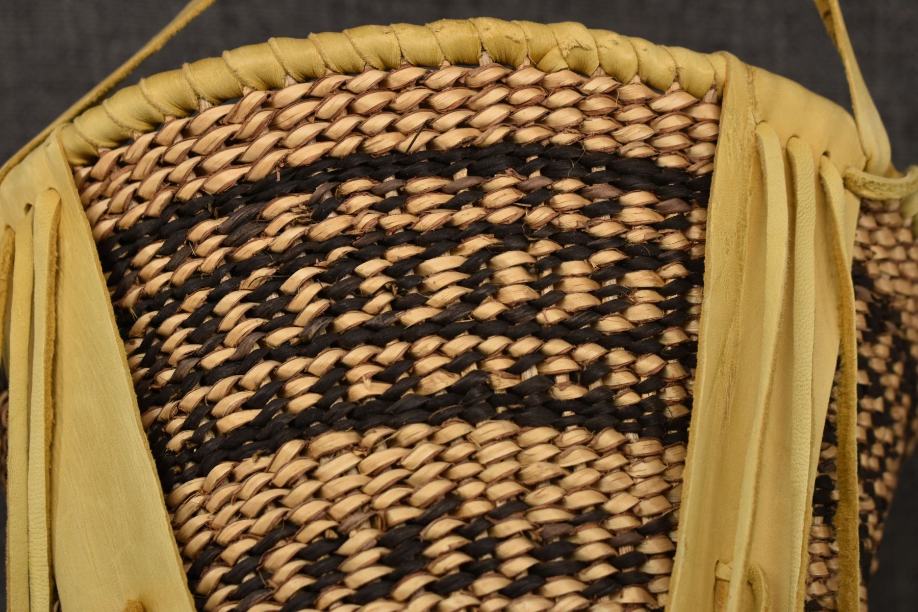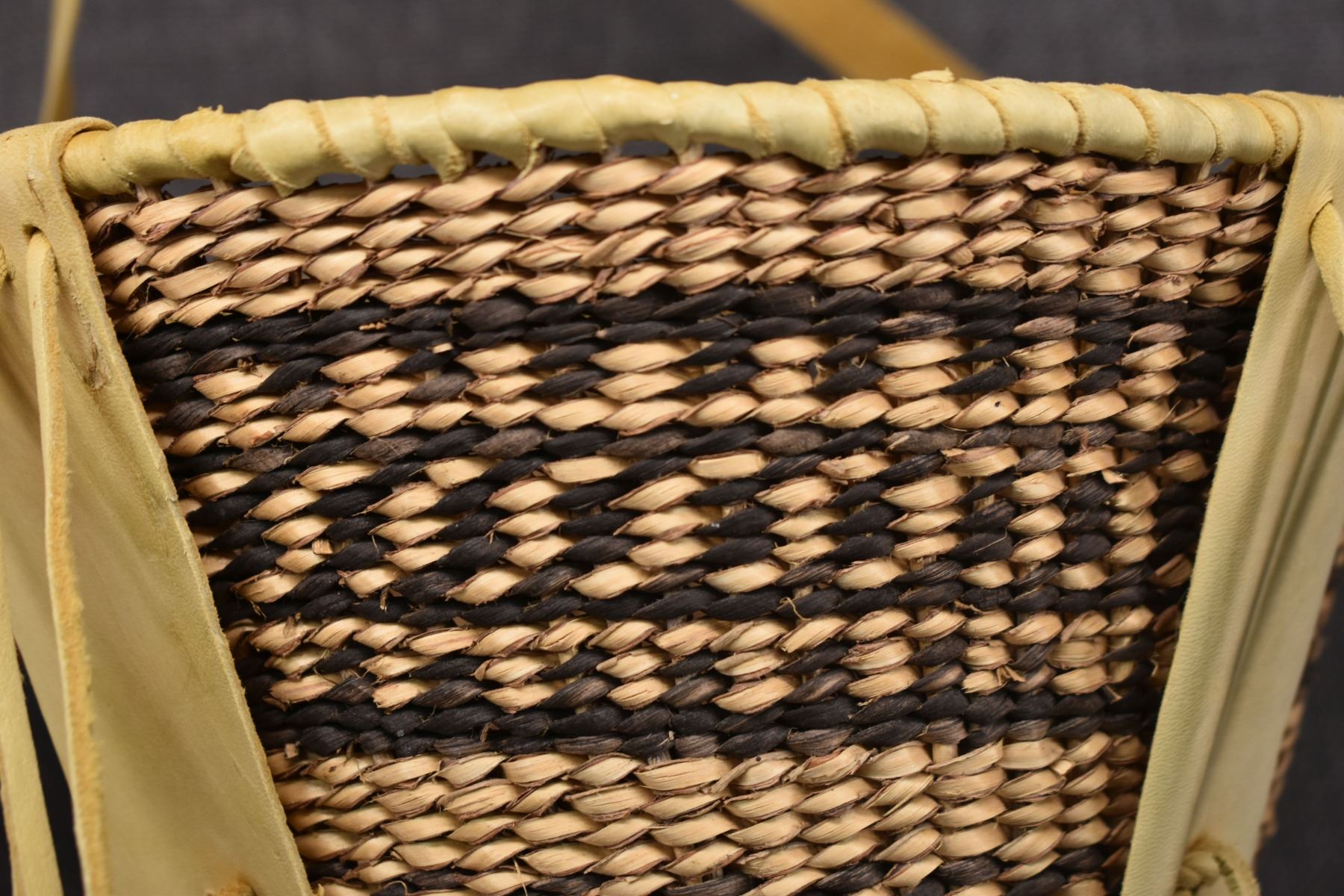 1970's Apache. Hand woven banded design burden basket. 18'' x 9''