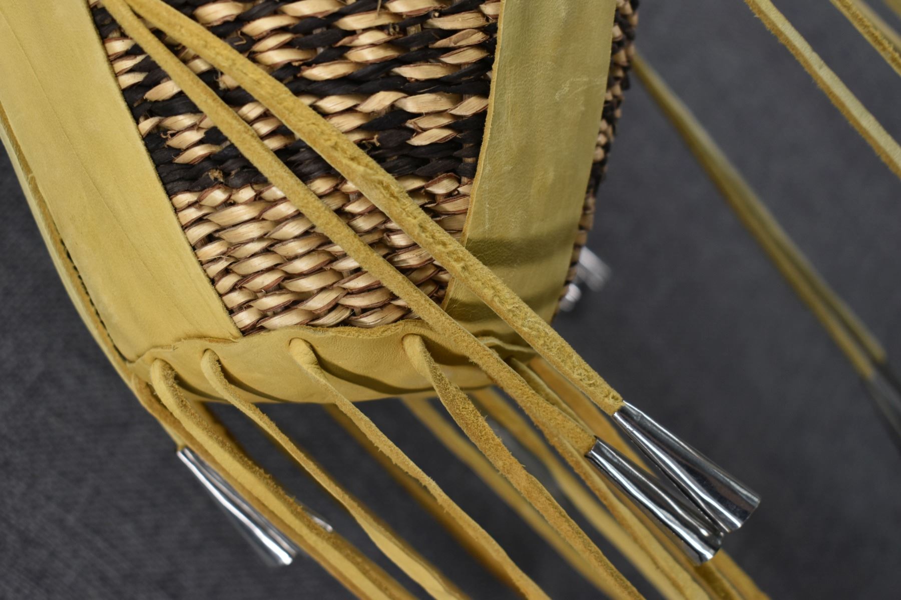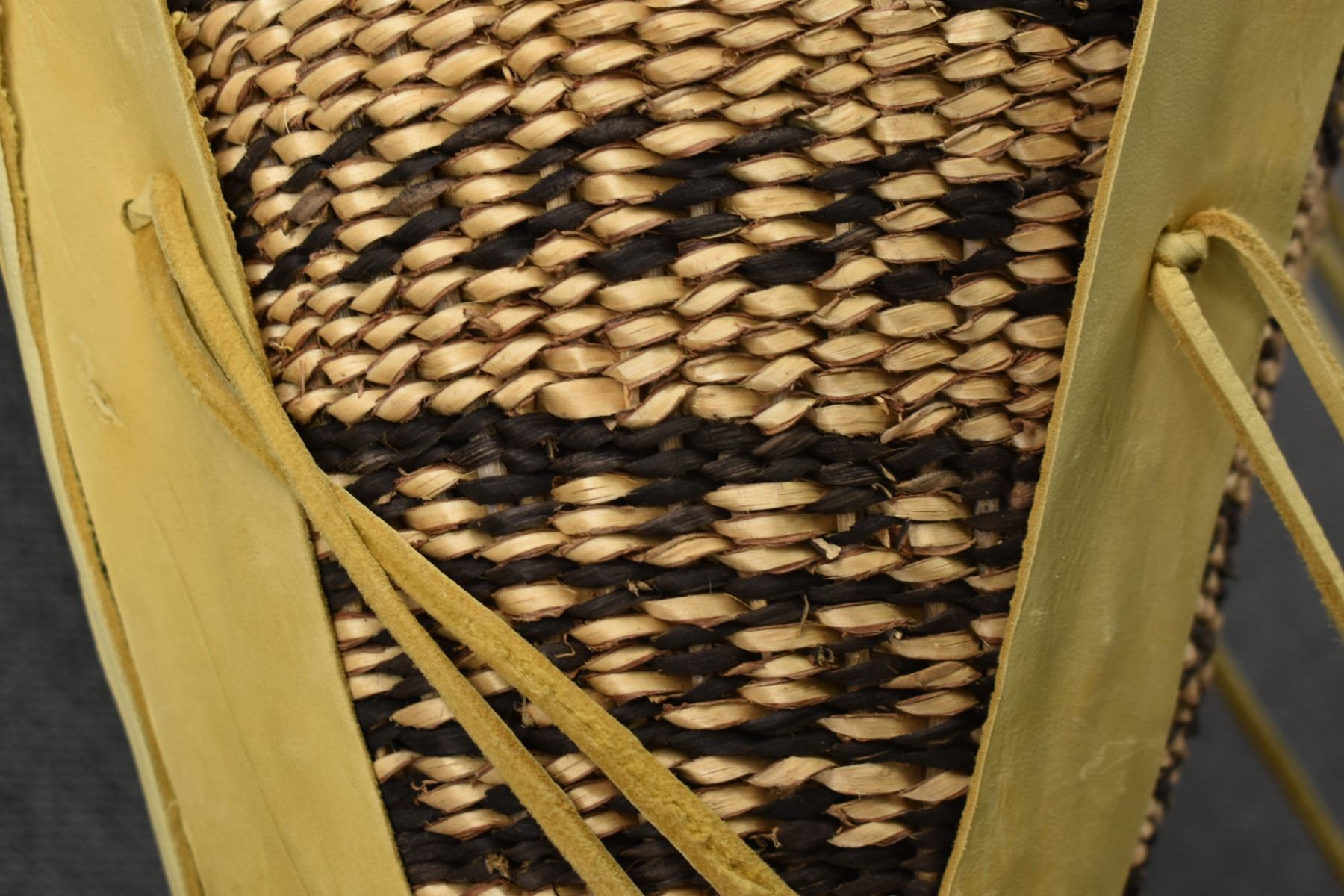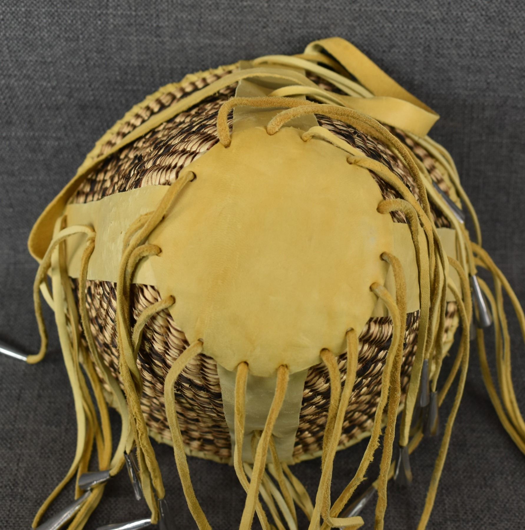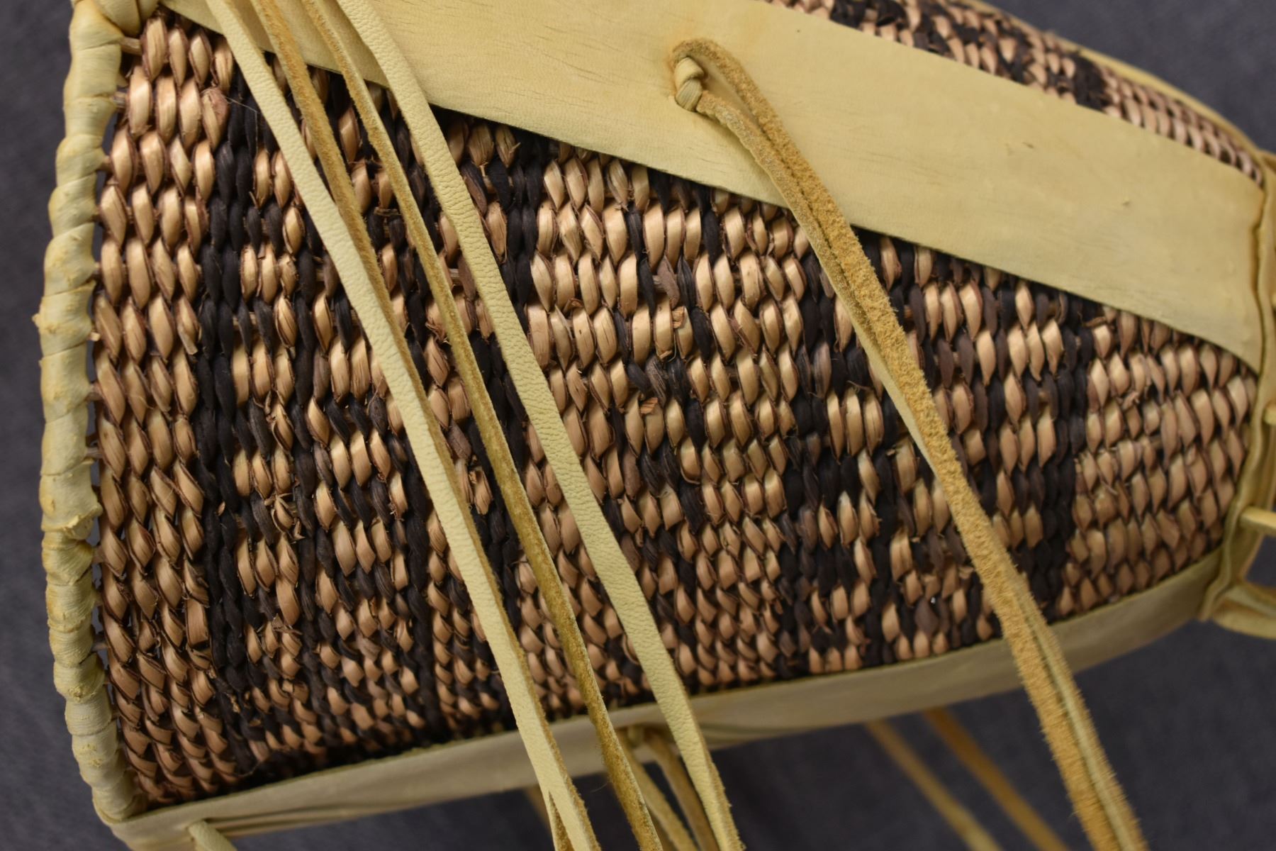 1970's Apache. Hand woven banded design burden basket. 18'' x 9''