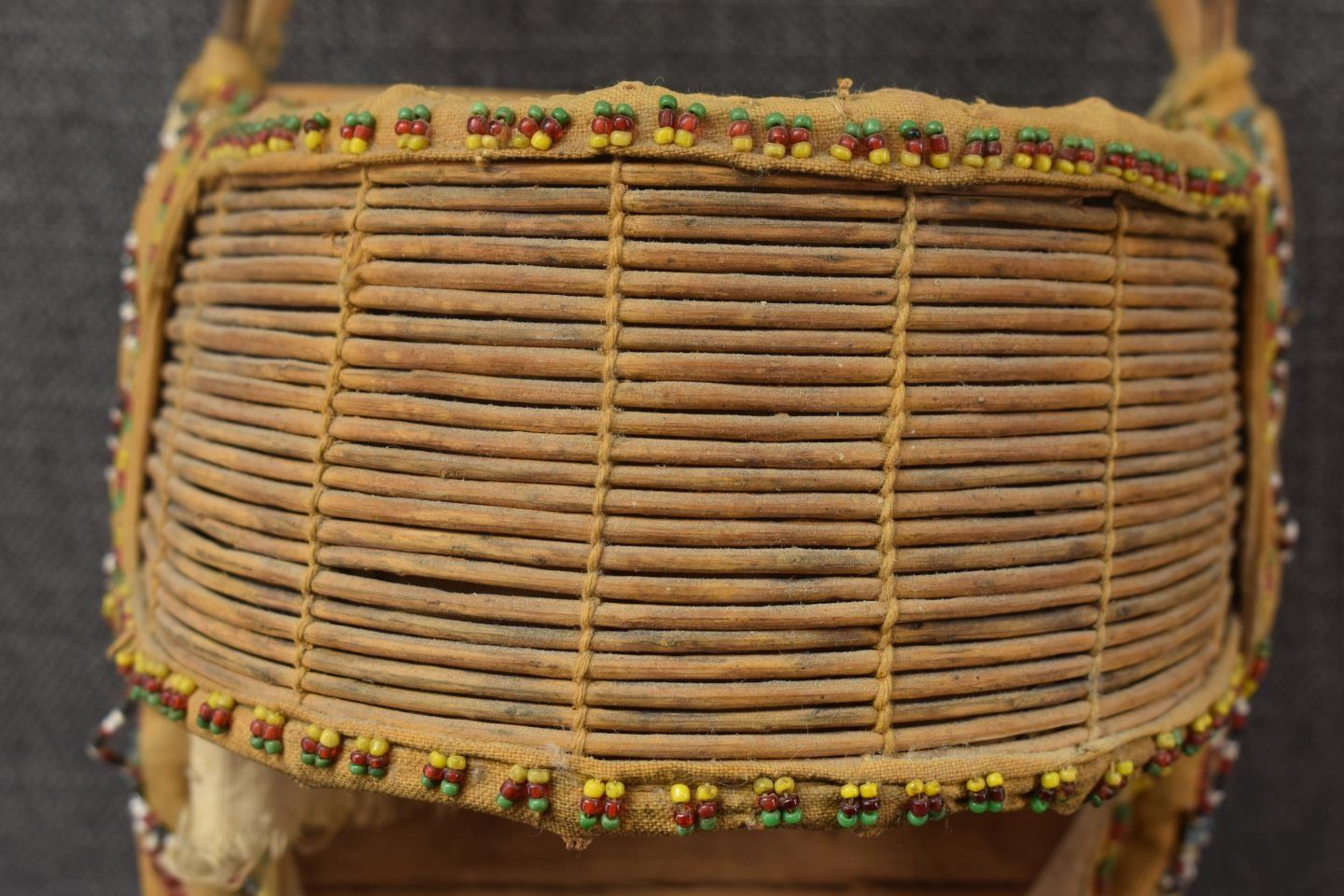 1920's Apache, hand made from wood and cloth with beaded design 5.5" x 7.5" x 15.25"