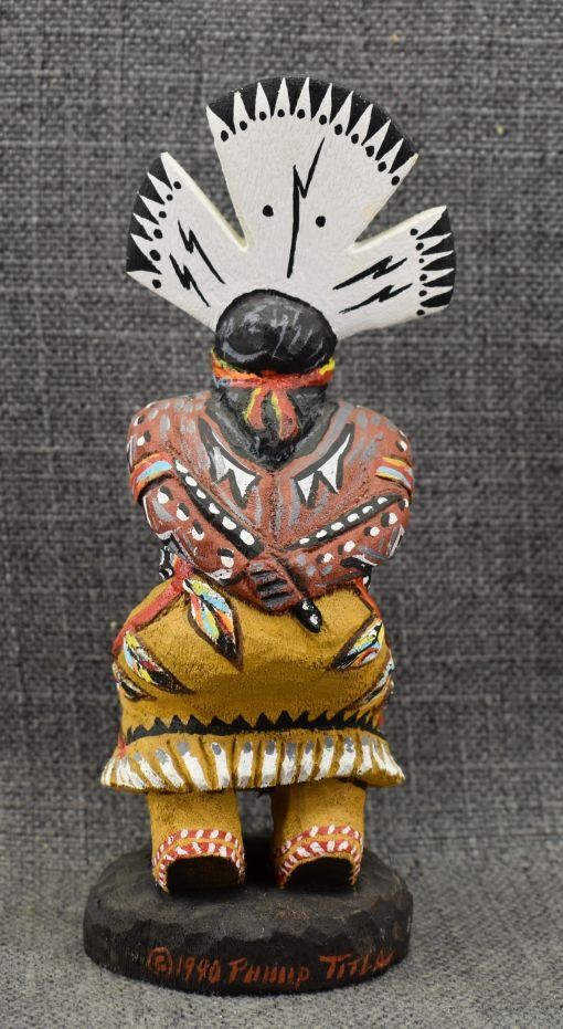 1990 Apache, carved and painted wood depicting Gan Dancer by Phillip Titla 7.5" tall