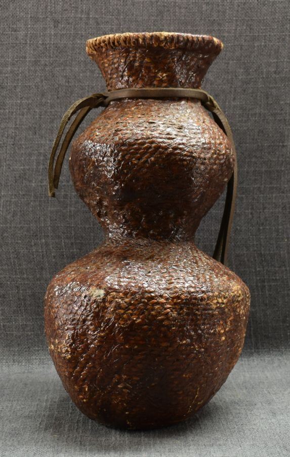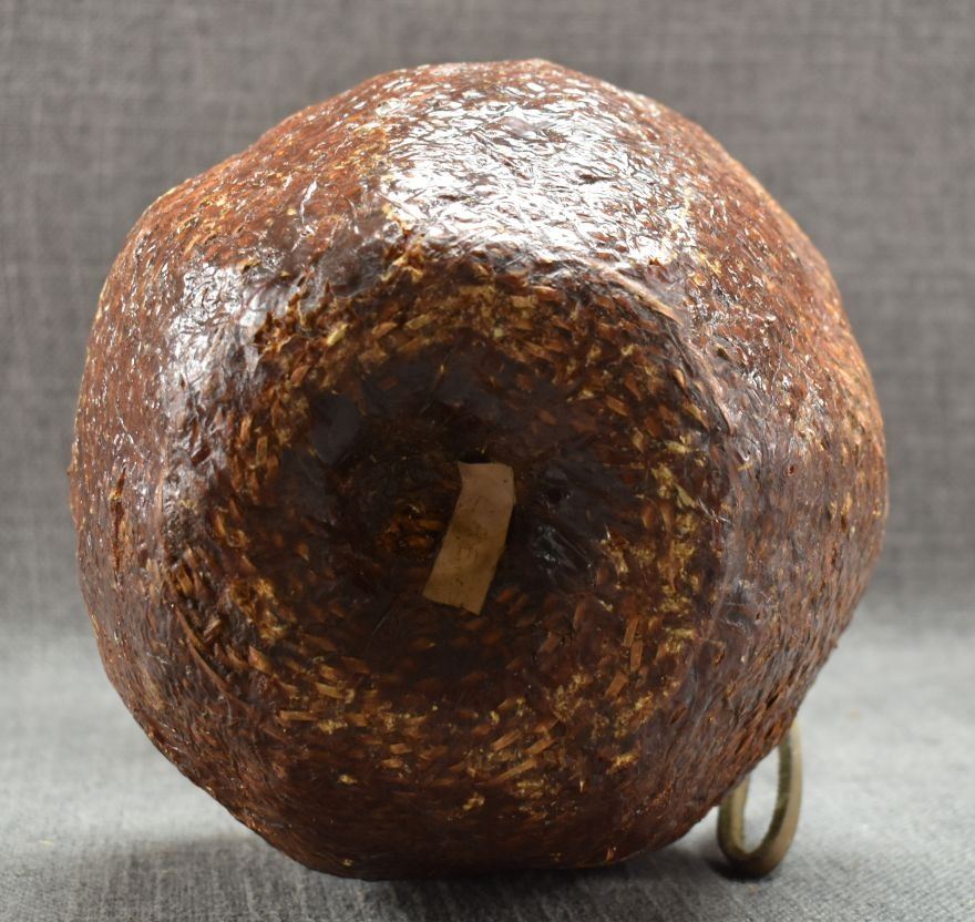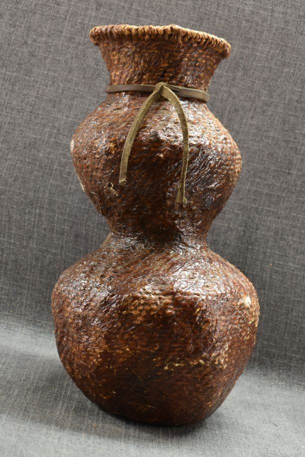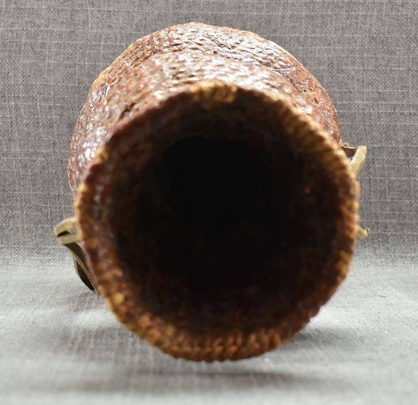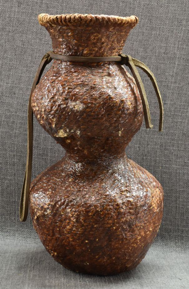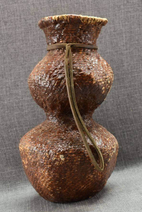 1970's Apache. Hand woven double lobe pitch covered basket. 14'' x 7''
