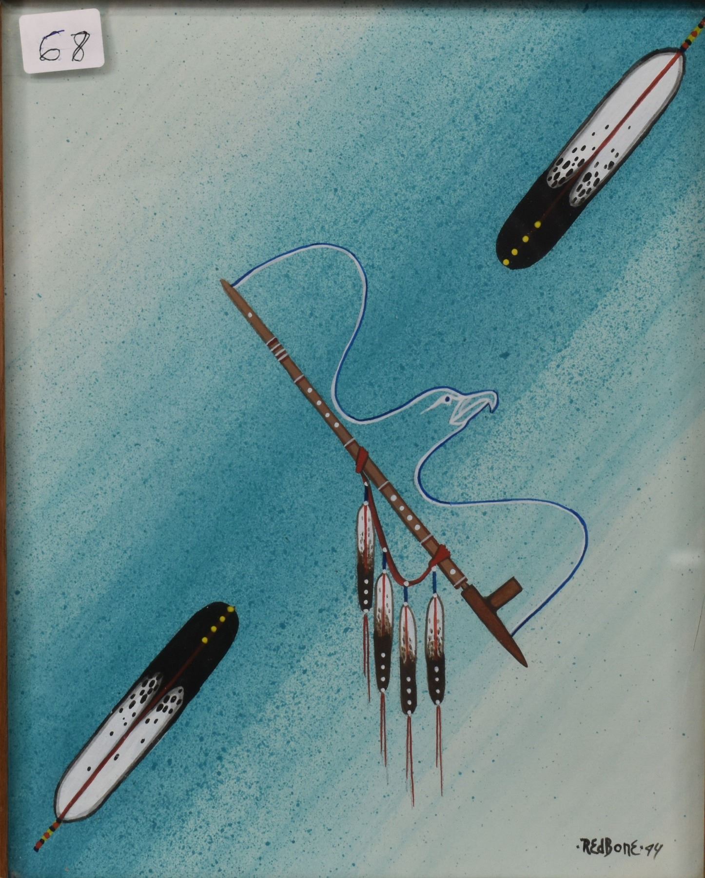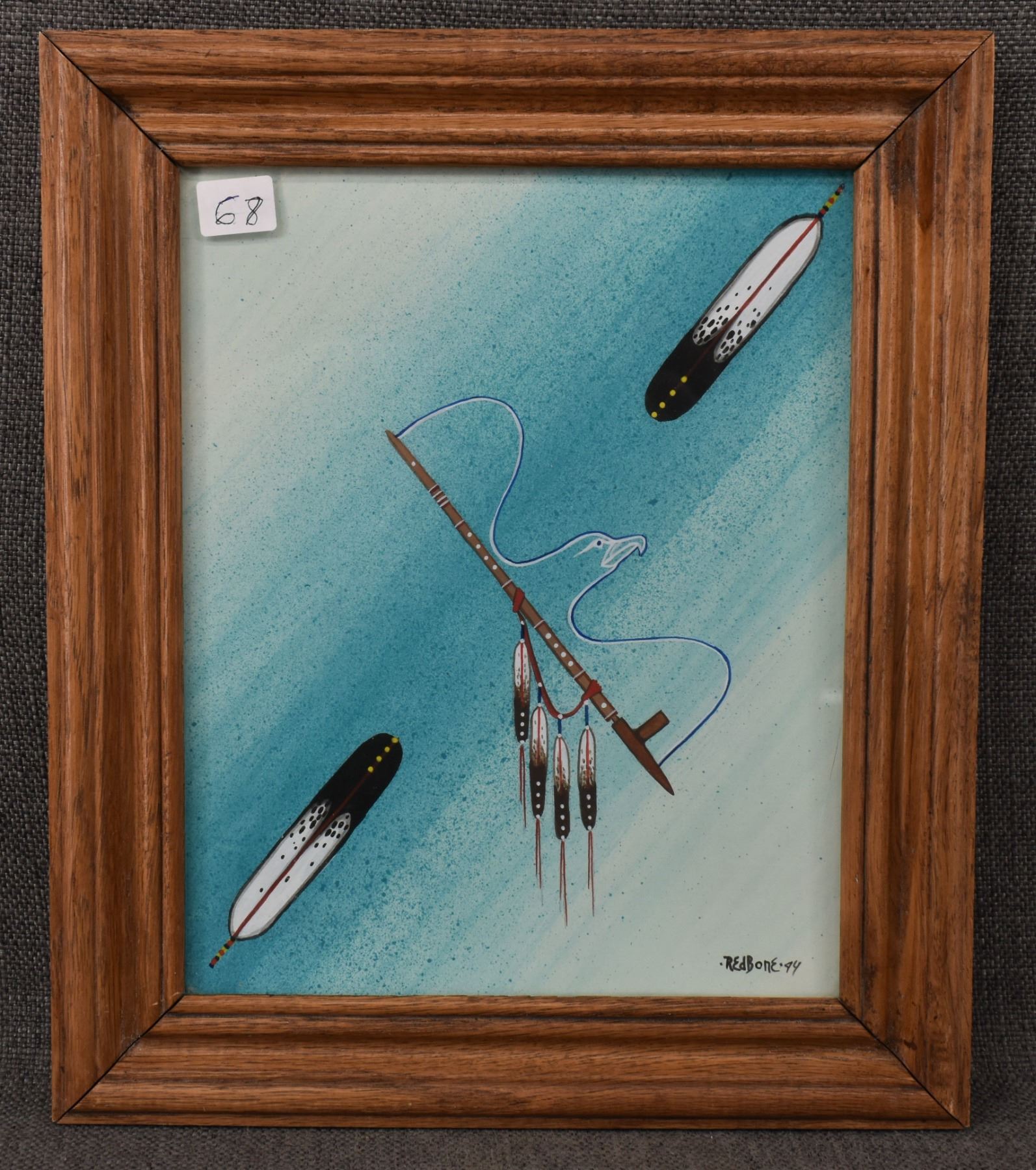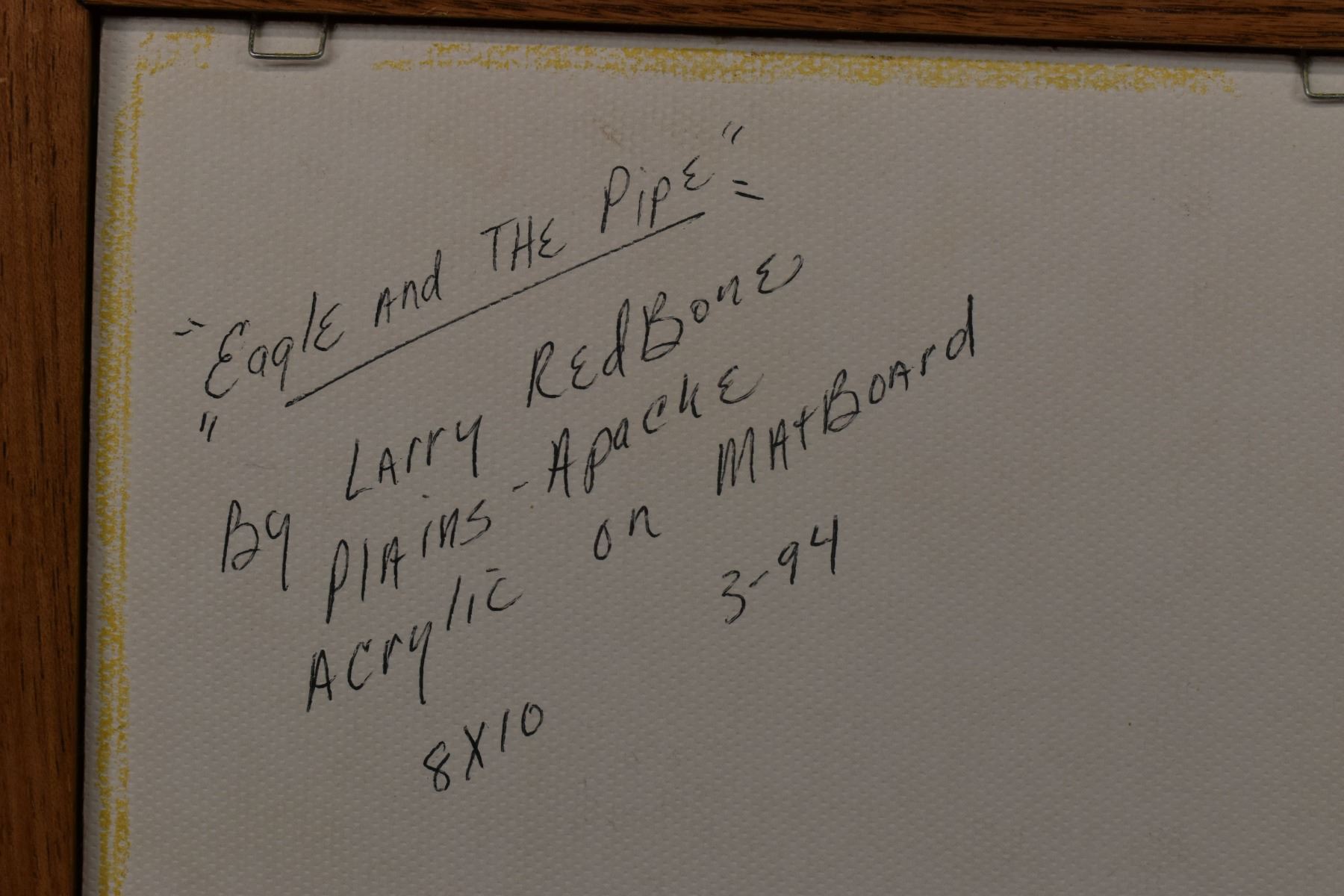 1994 Apache original on artist board signed Redbone depicting eagle and pipe. 10.5" x 8.5"