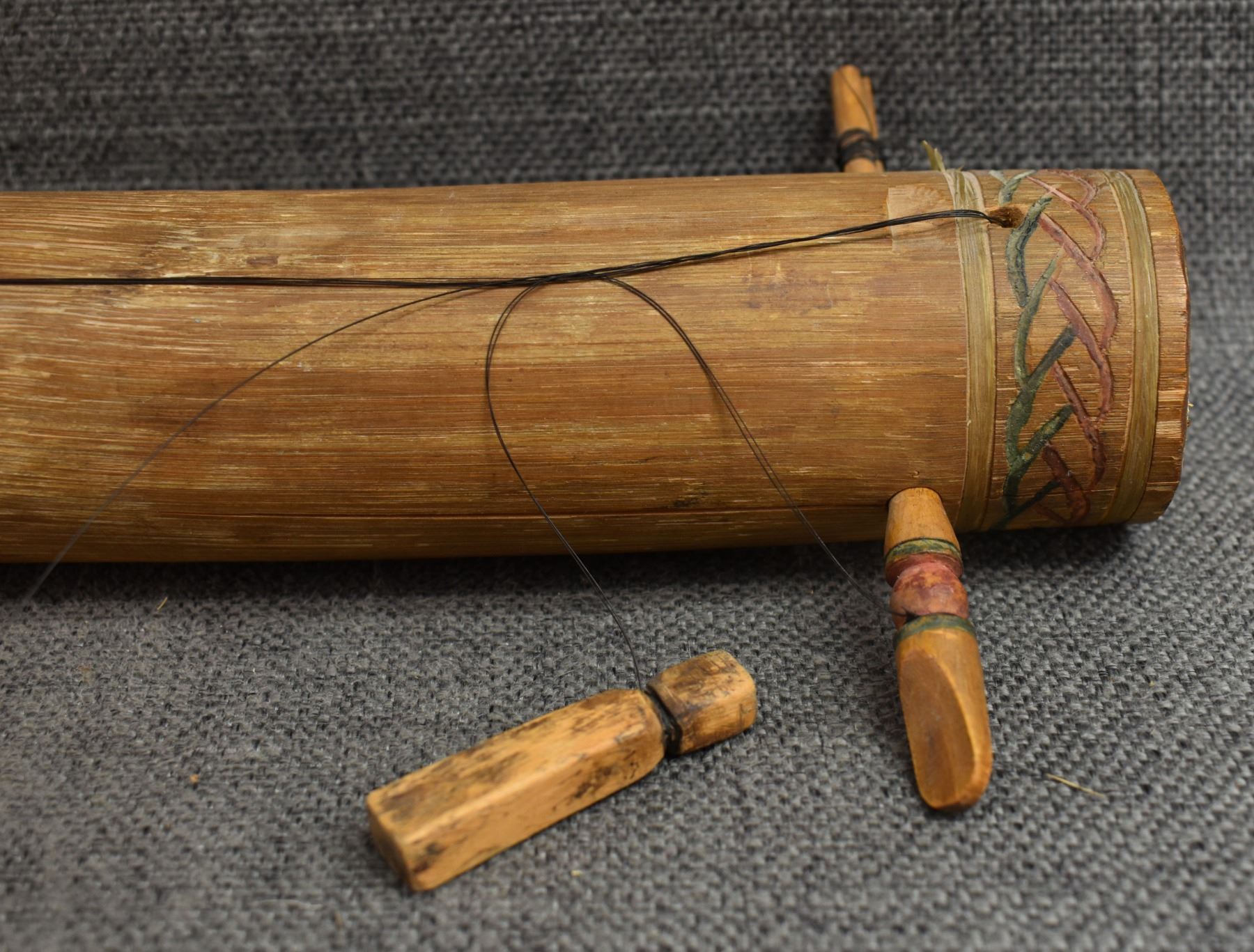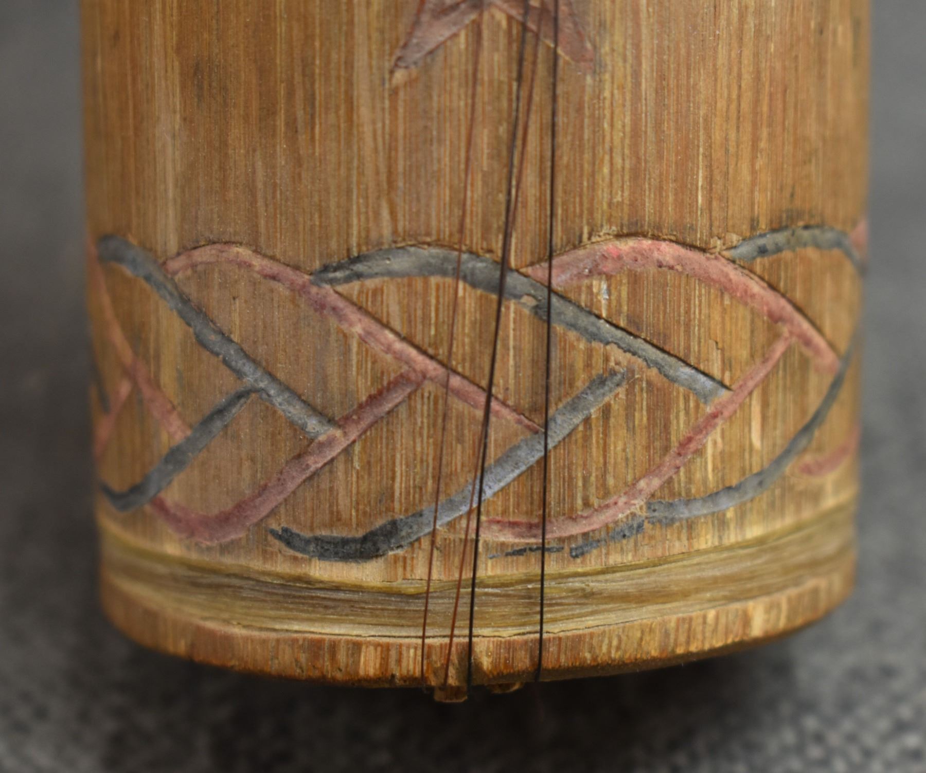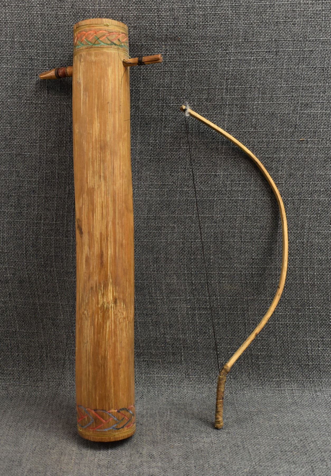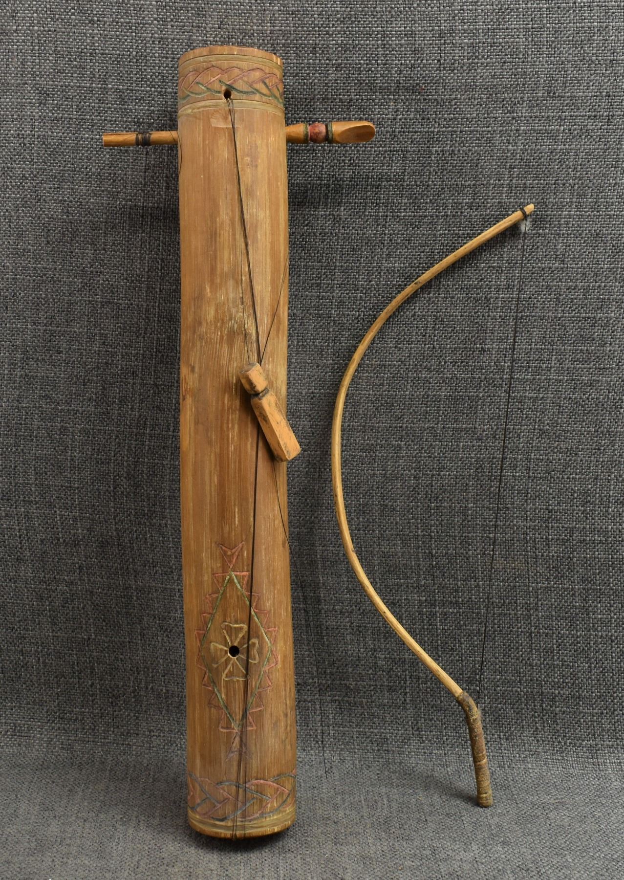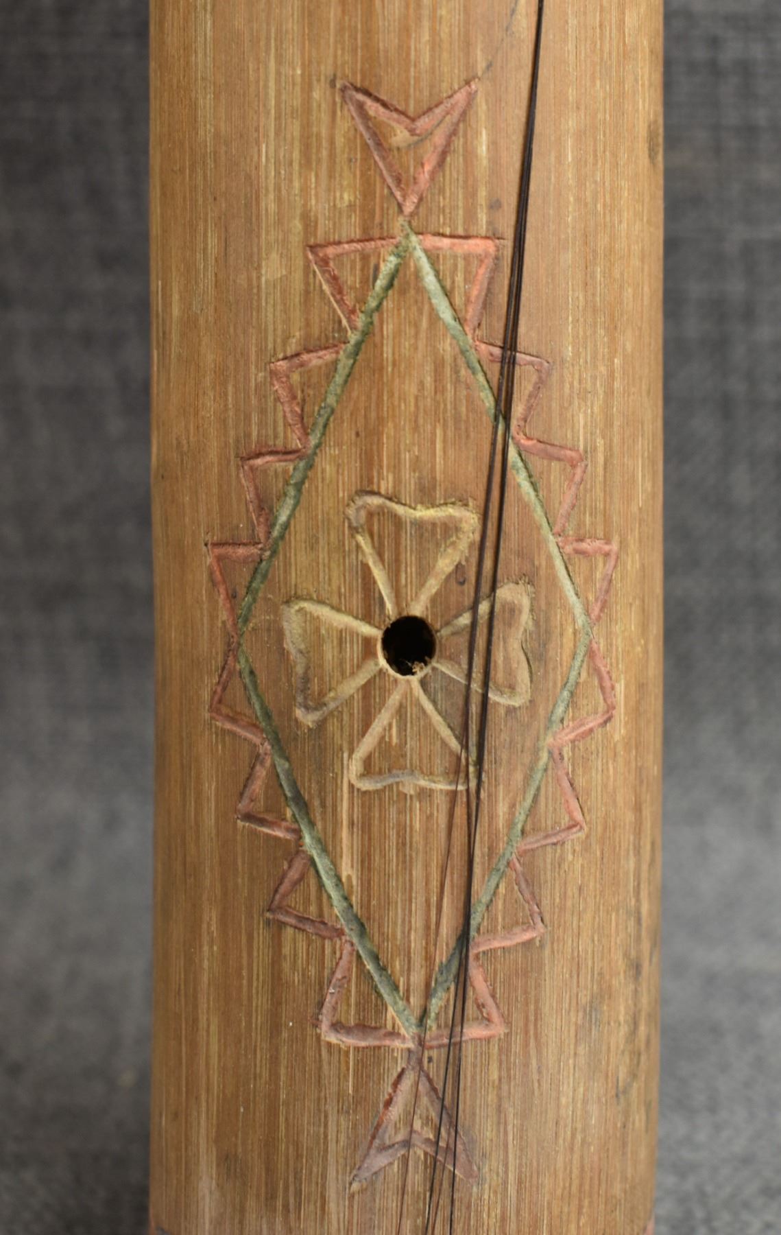1920's Apache, hand made from wood with carved and painted design 15.25" x 2" bow 12.5" long