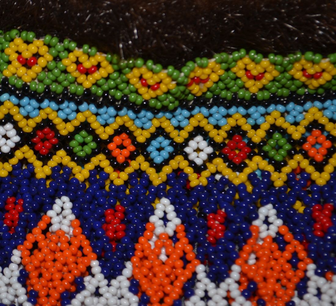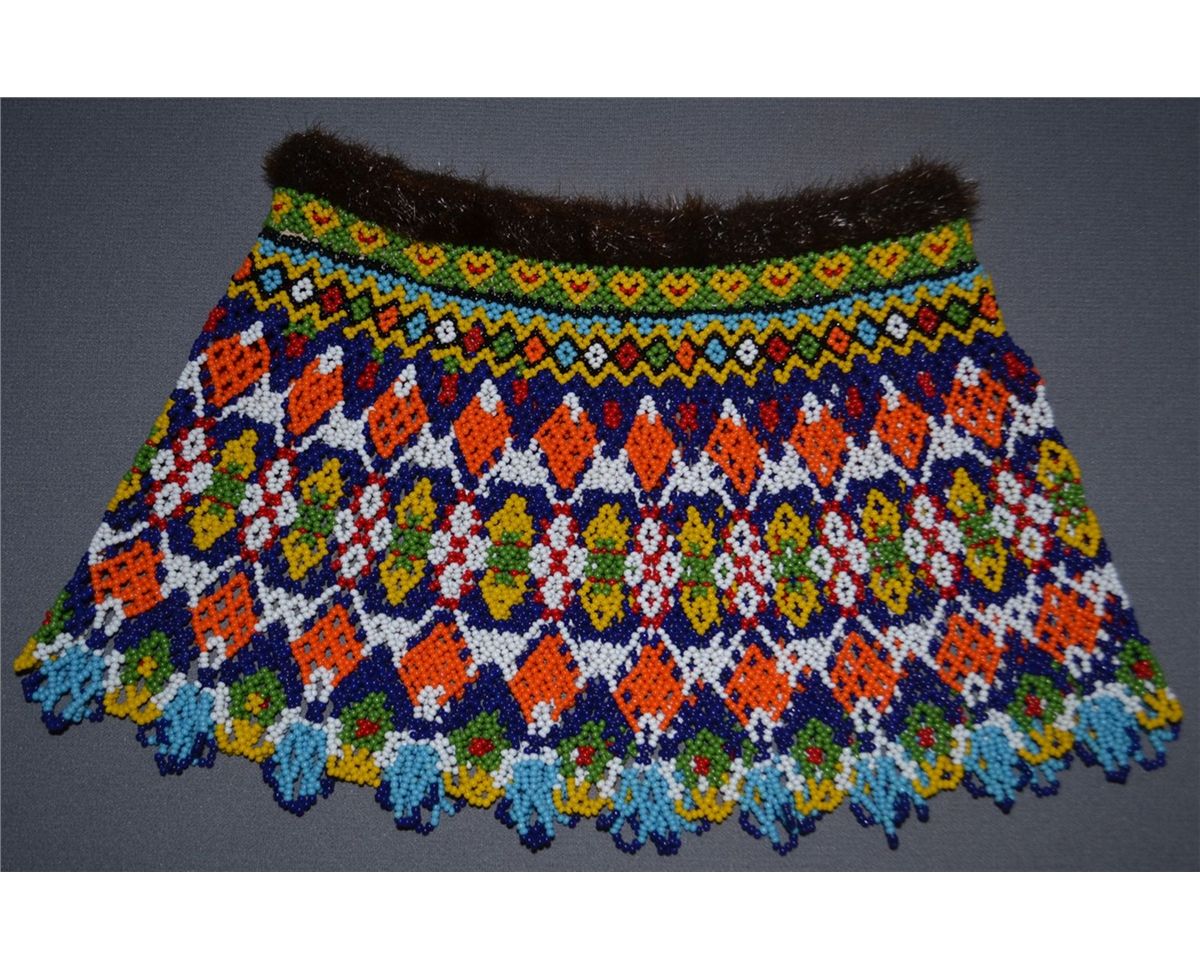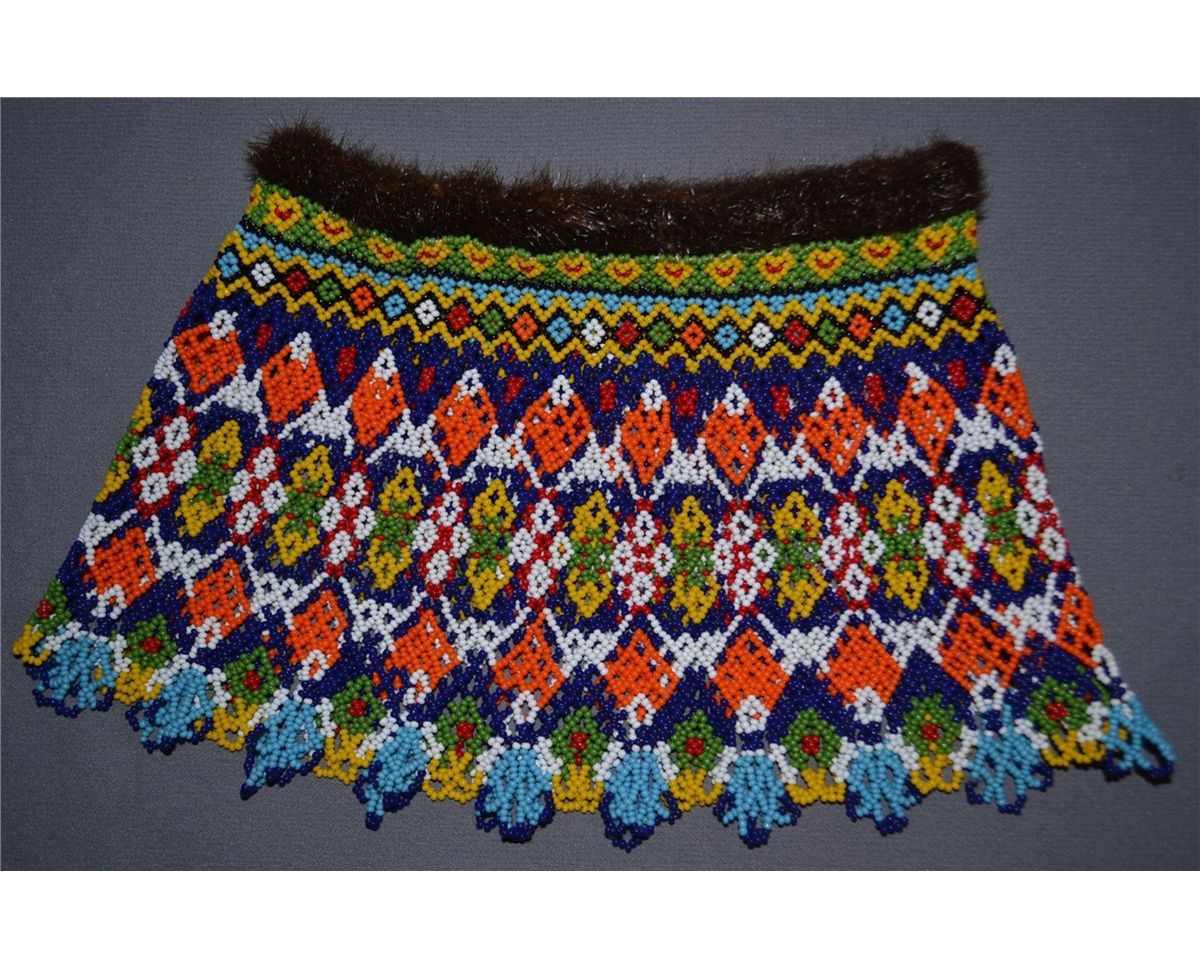 1980s 90s loom beaded fur around neck opening 8"x15"