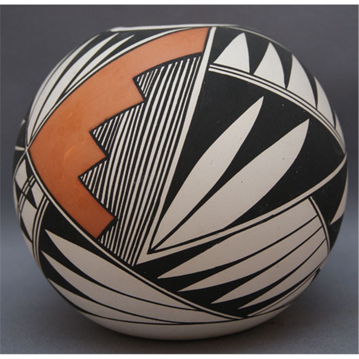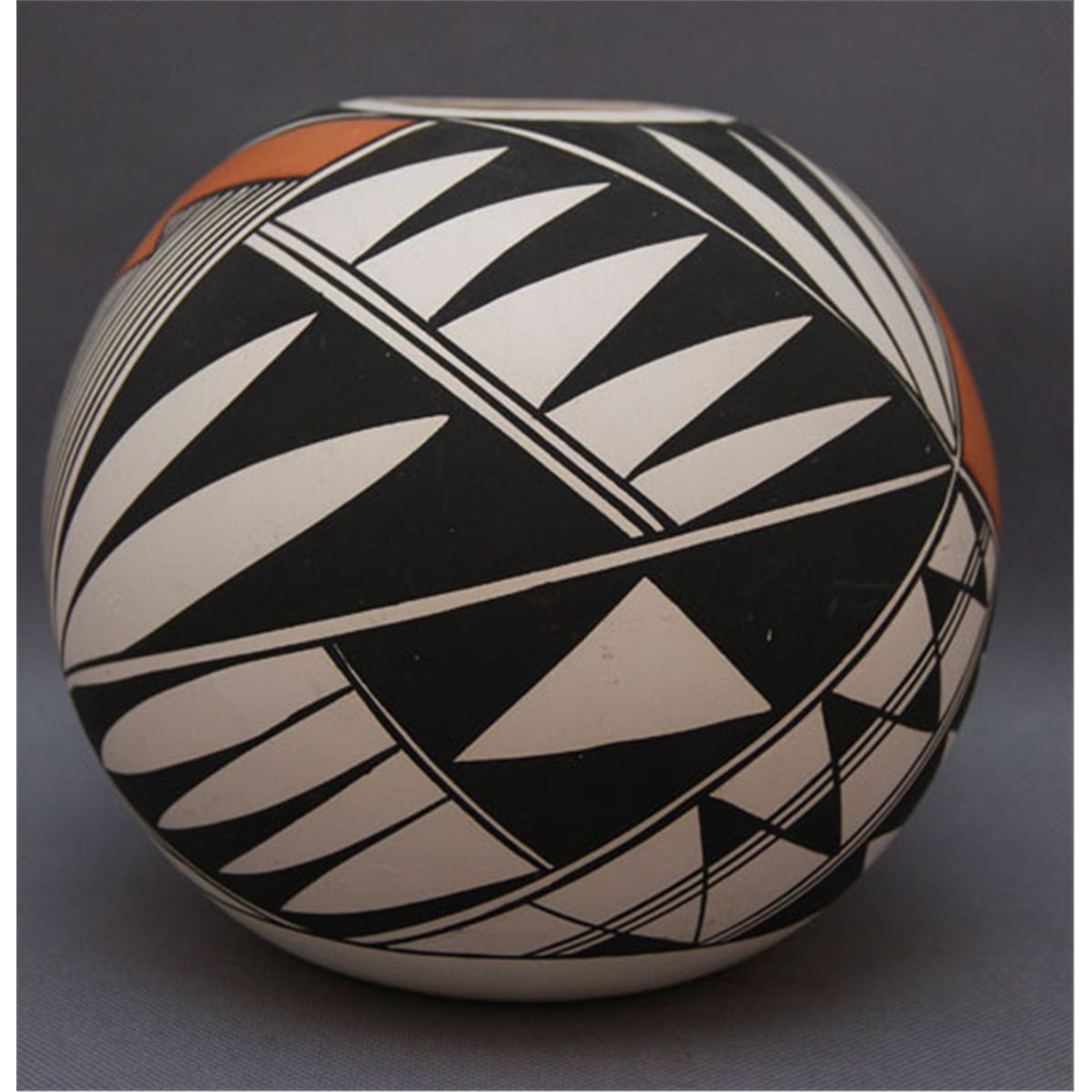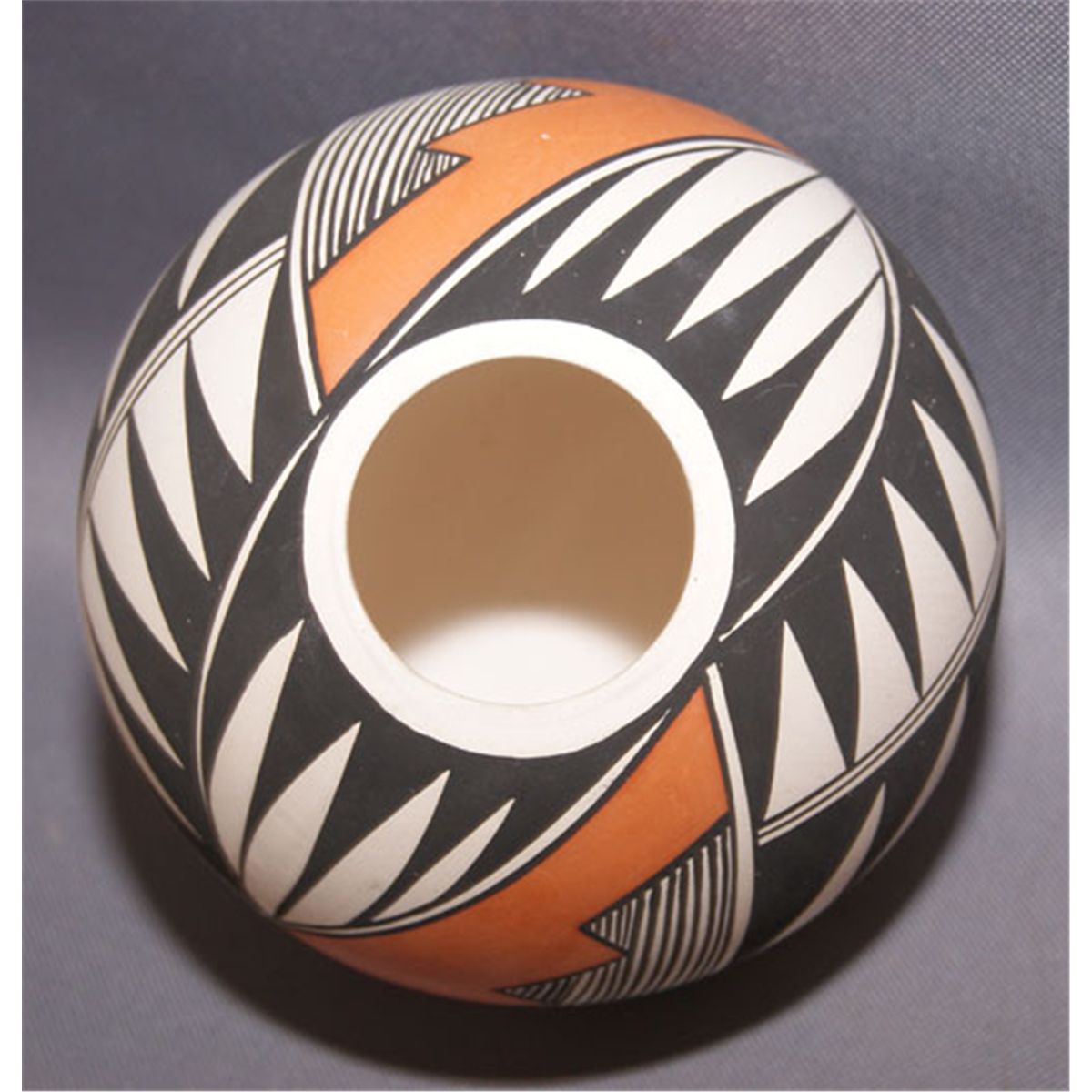 contemporary green ware hand painted polychrome design signed Victorino, 5" x 5.25"