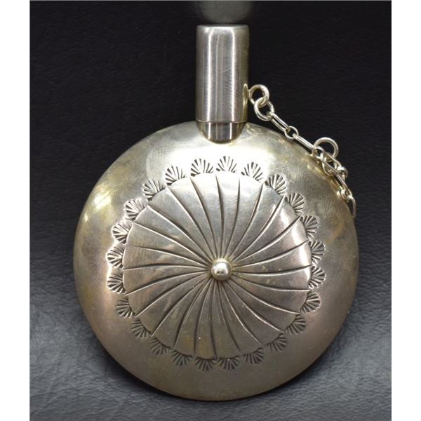 1980's Navajo Indian. Sterling silver stamped design tobacco canteen.3'' x 2.25'' x 1'' total weight 47 grams