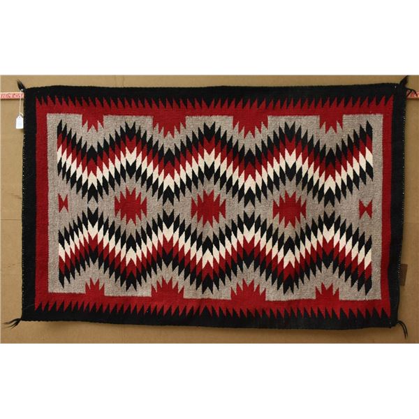 1980's Navajo Indian. Hand woven busy saw tooth design textile 50'' x 32''