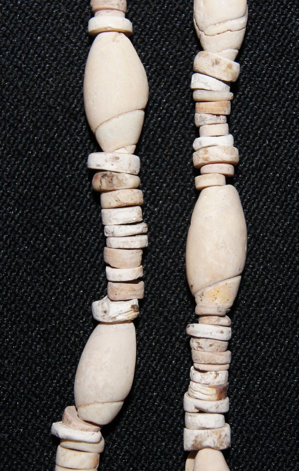 prehistoric pump drilled shells, 1/8"x18" inches long