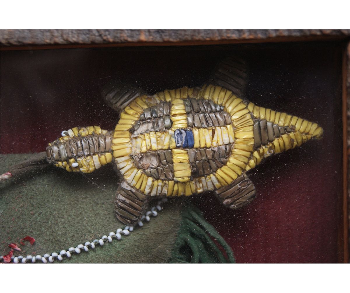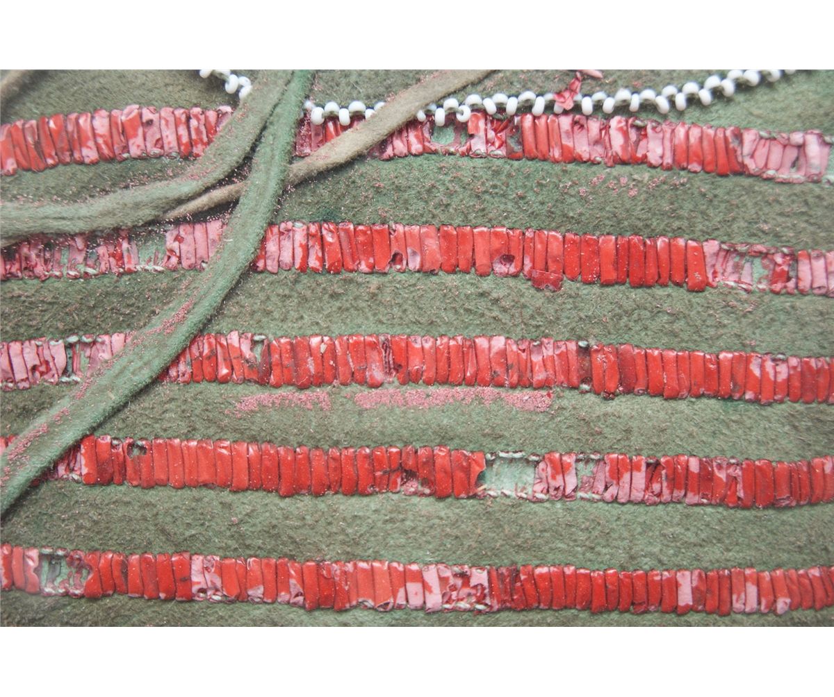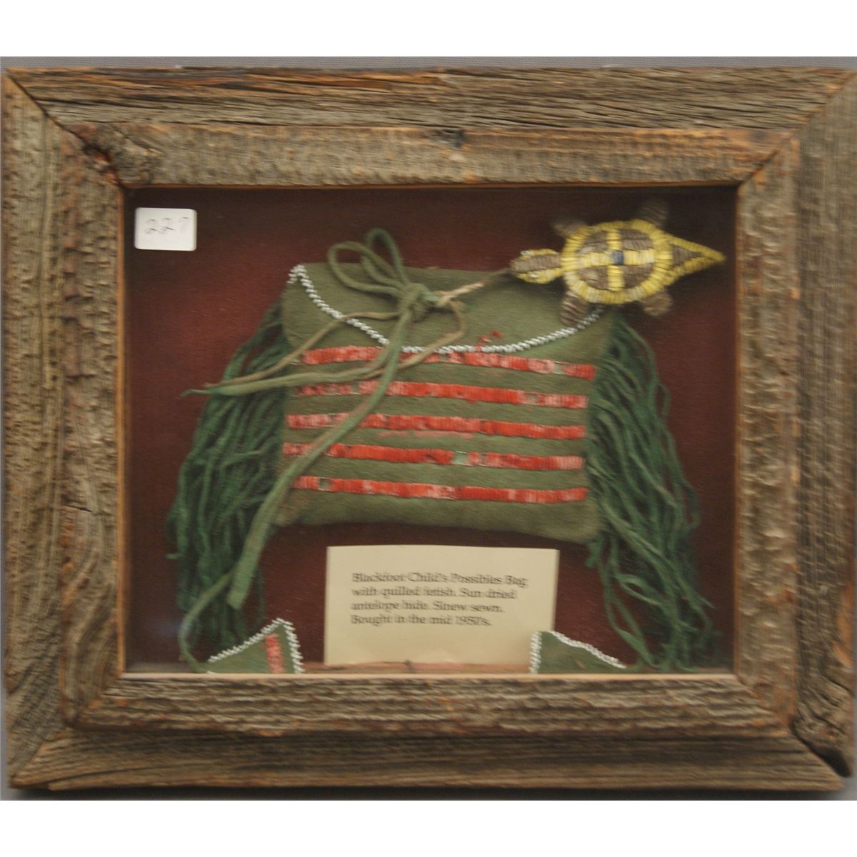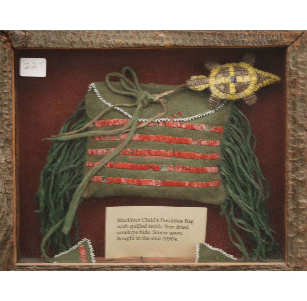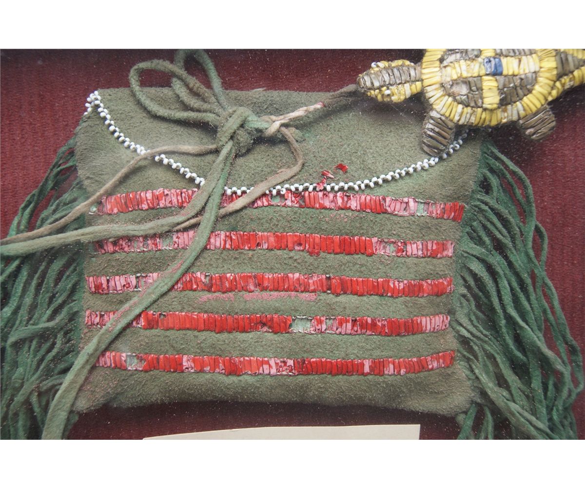 1950s-60s quilled and beaded bag has damage on quills 4"x5" not including fringe, fetish has damage on quills 3"x1.75"