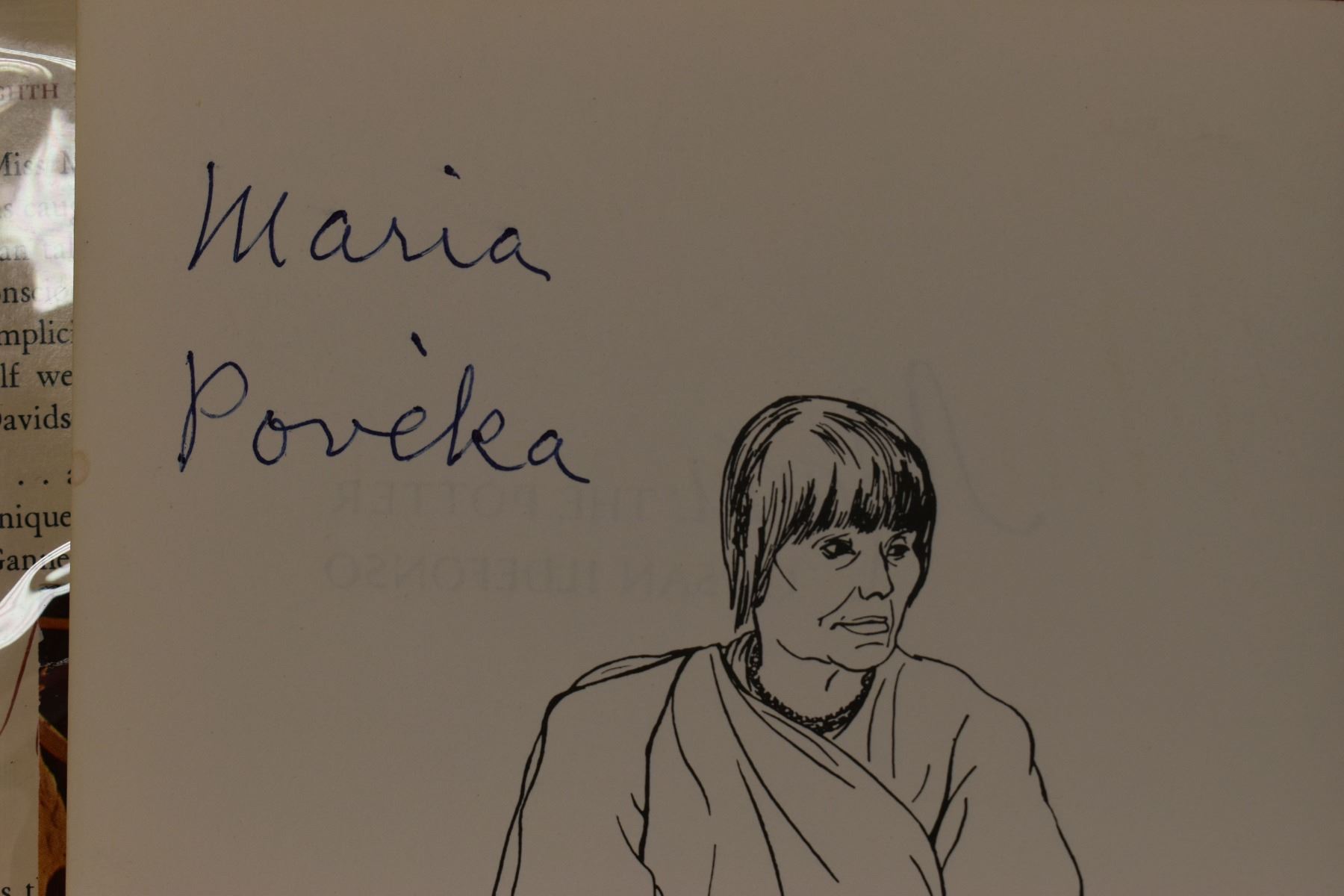 1960 eight printing of Maria: The Potter of San Ildefonso by Alice Marriott, hand signed by Maria Poveka, 9.25" x 6"