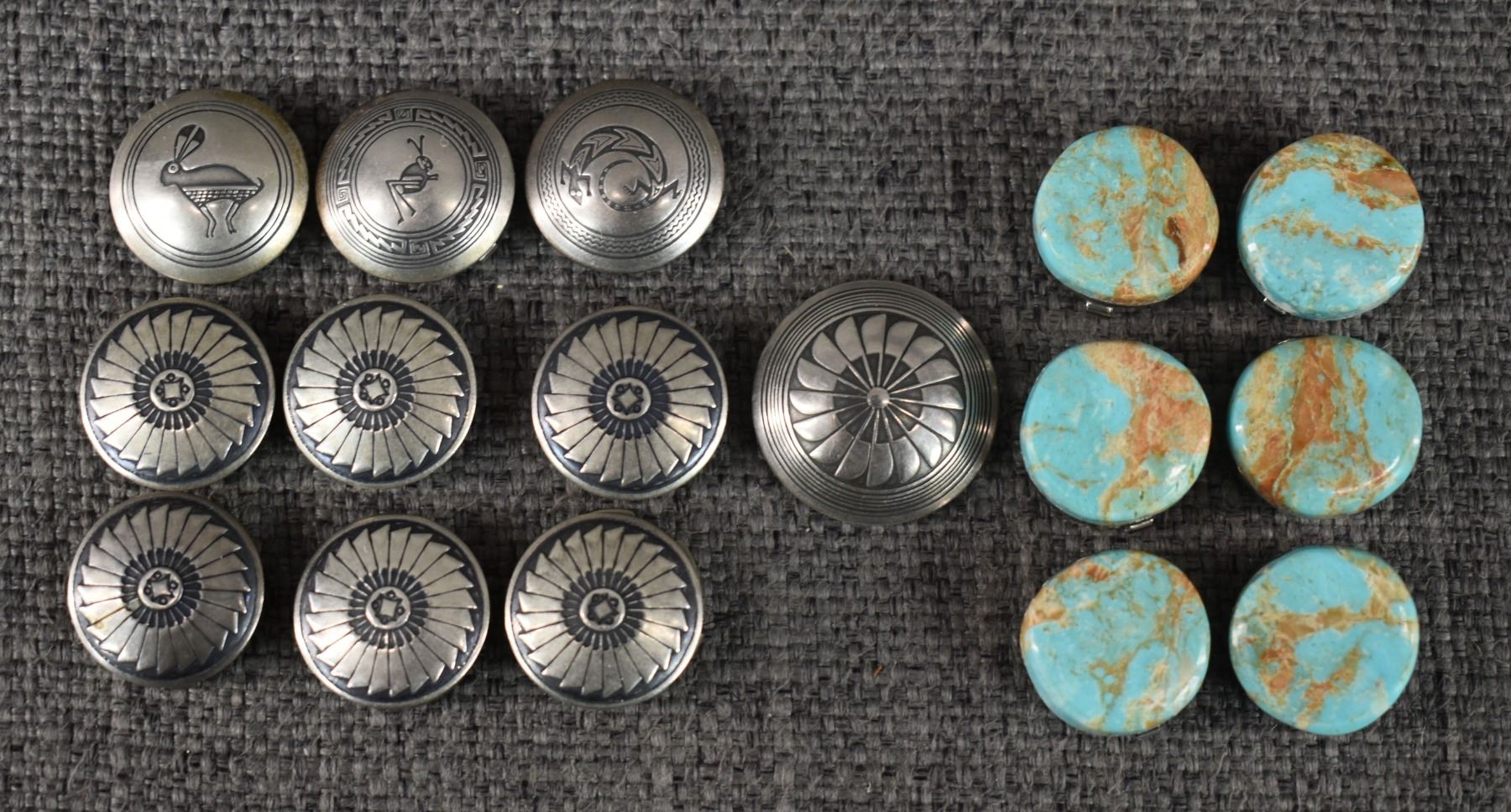 1990-2000's sterling silver and turquoise button covers .5" diameter