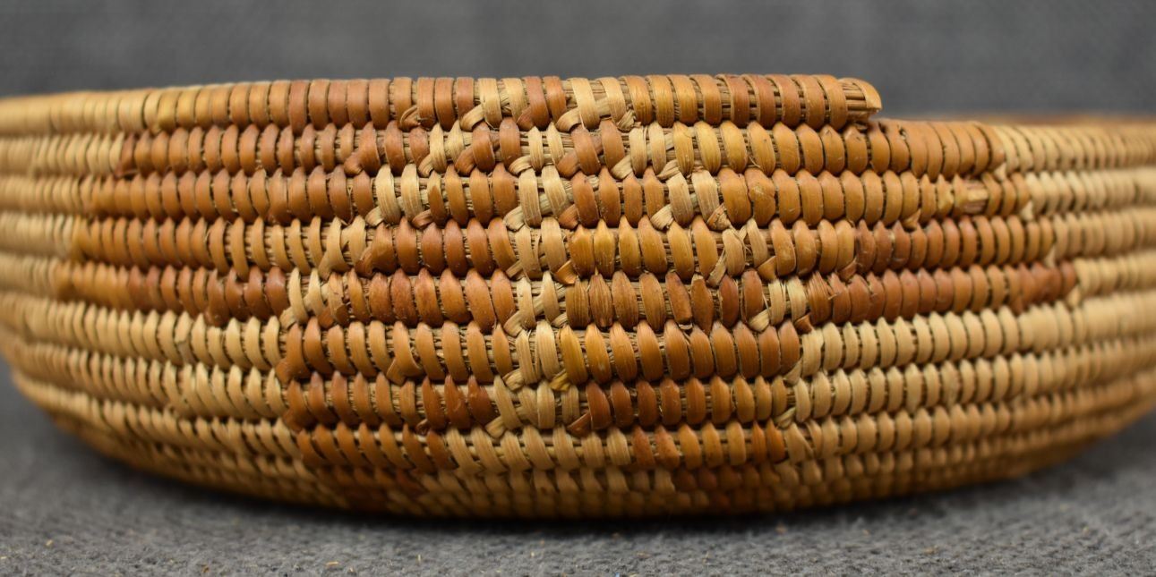 1920-30's California Mission, hand woven polychrome design 1.75" x 6"