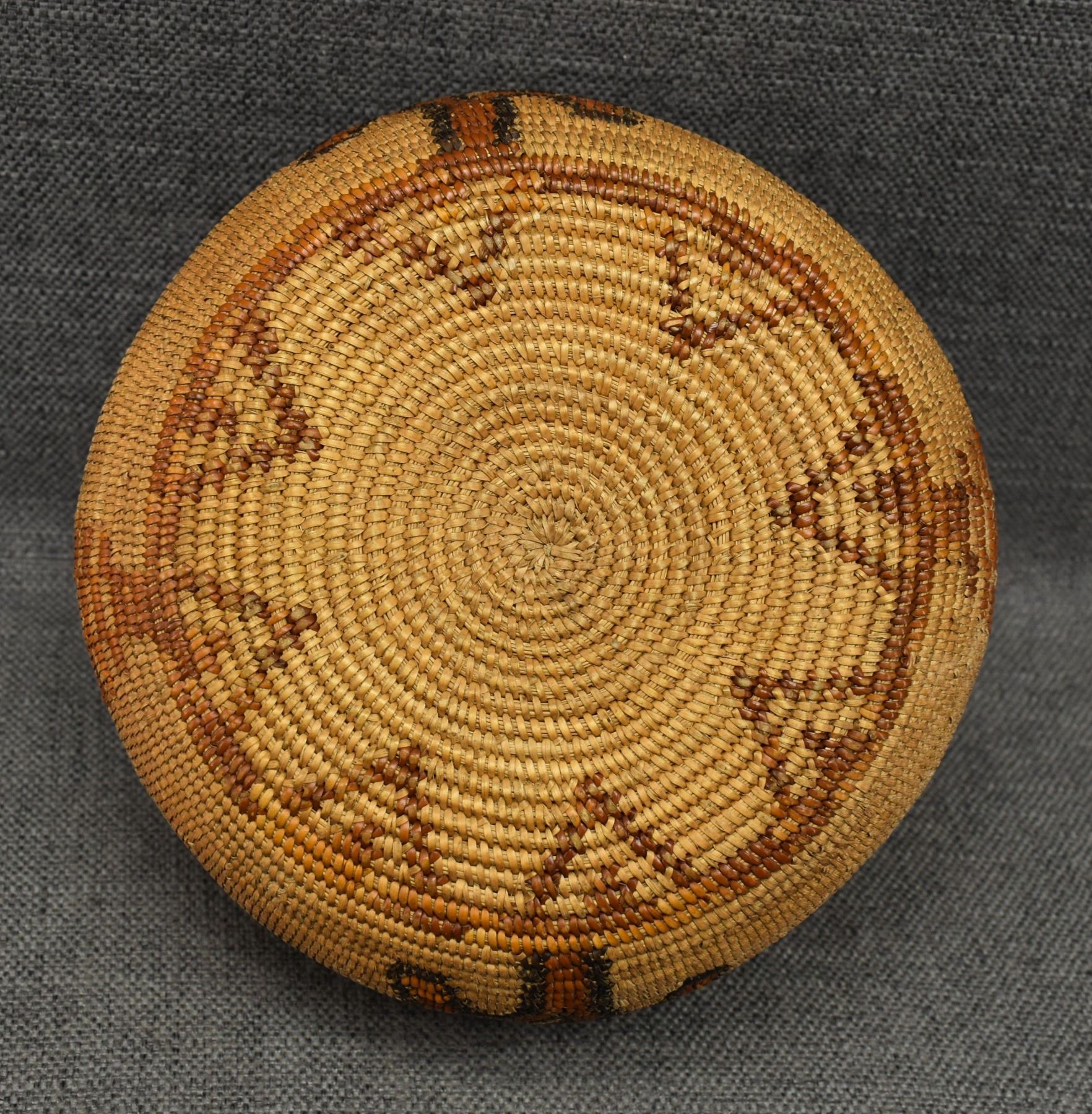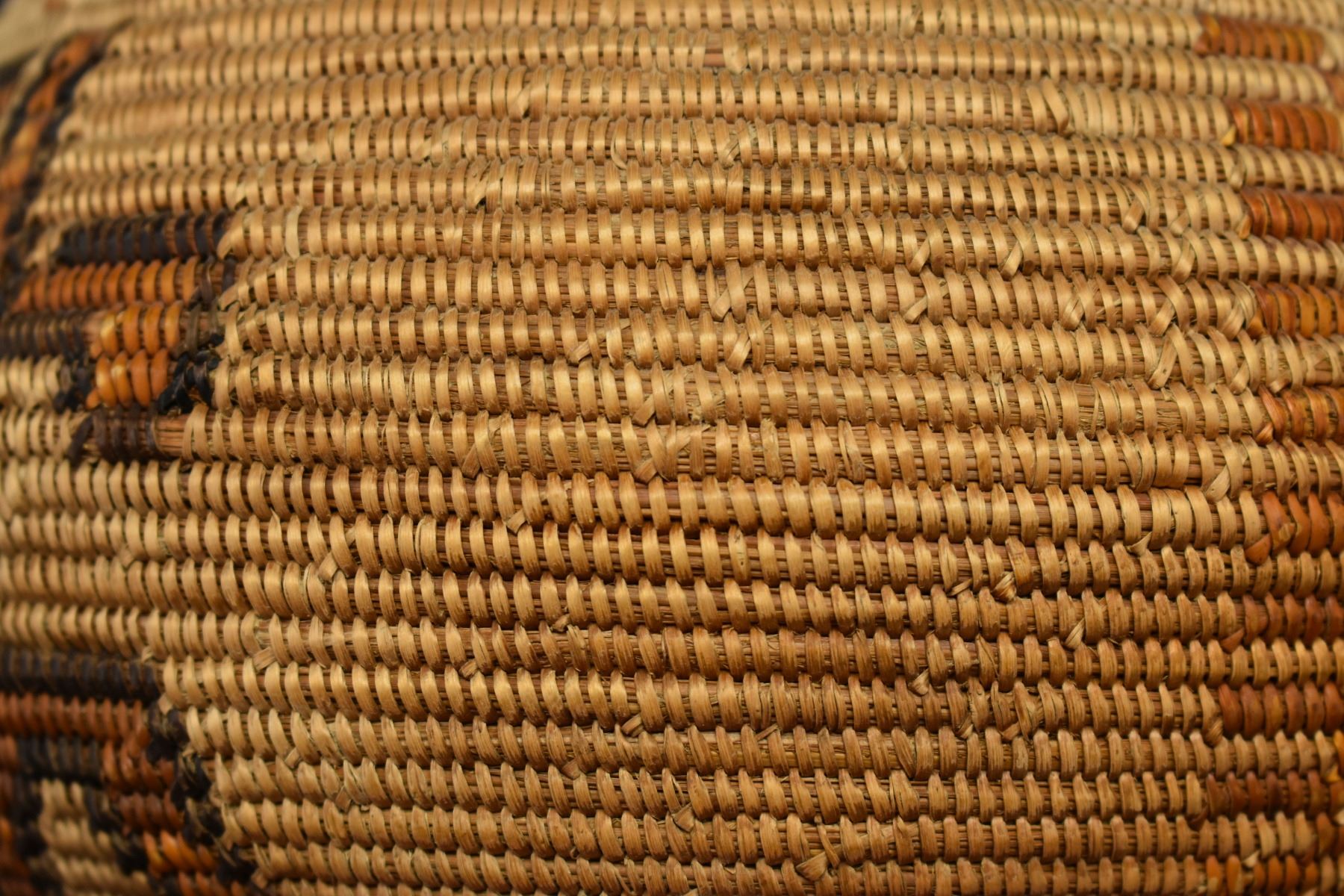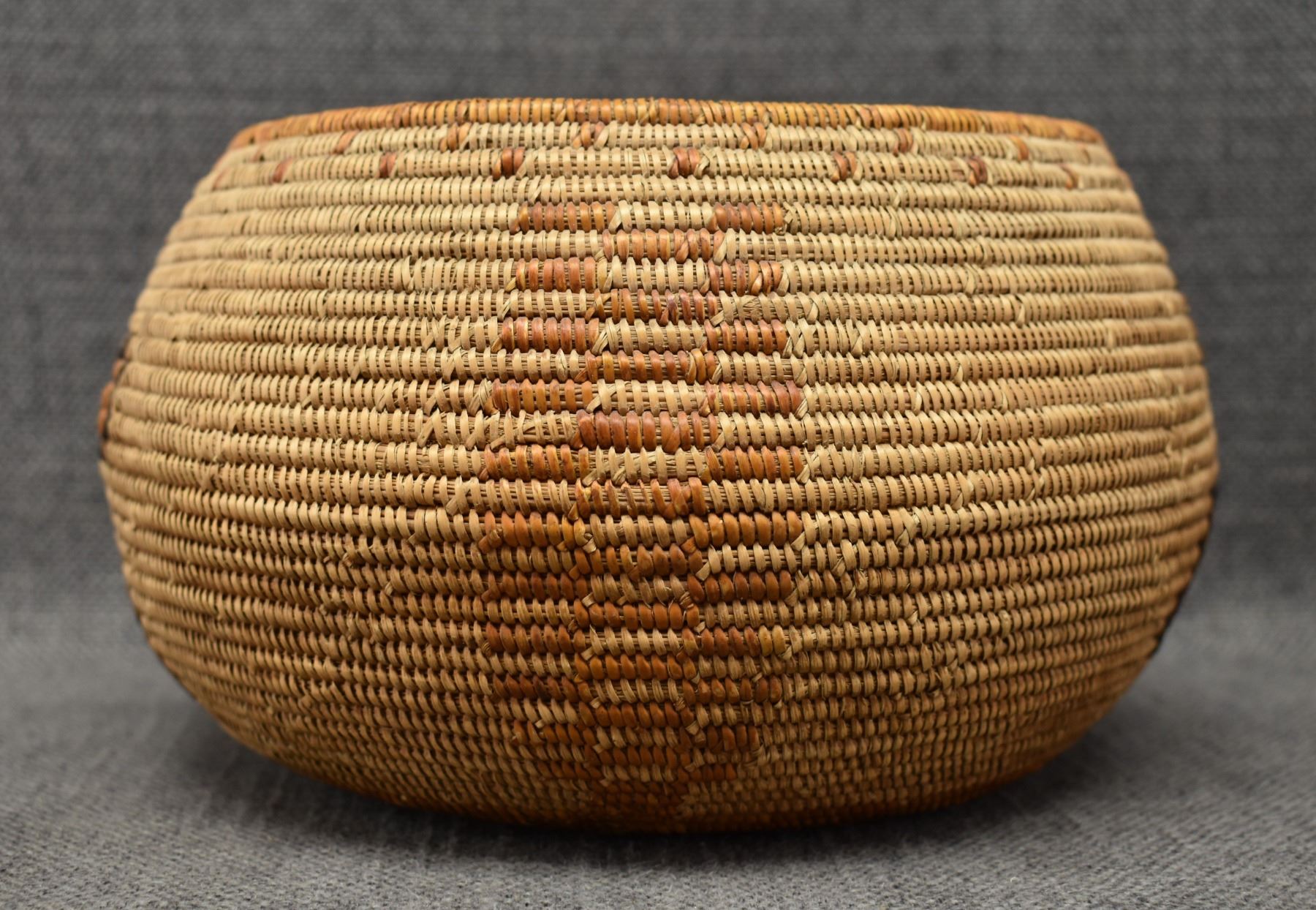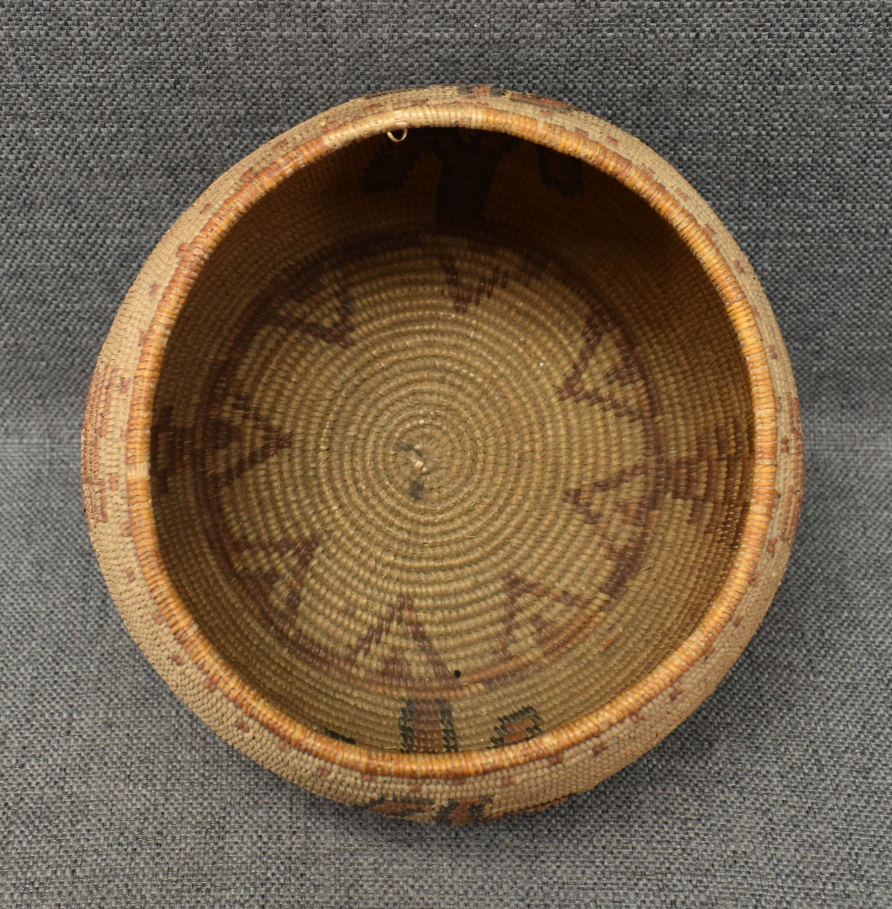 1920's California mission. Hand woven basketry bowl. 5'' x 8'' minor stitch loss