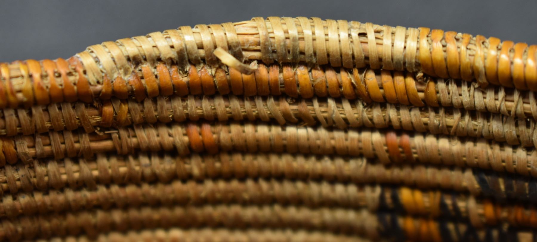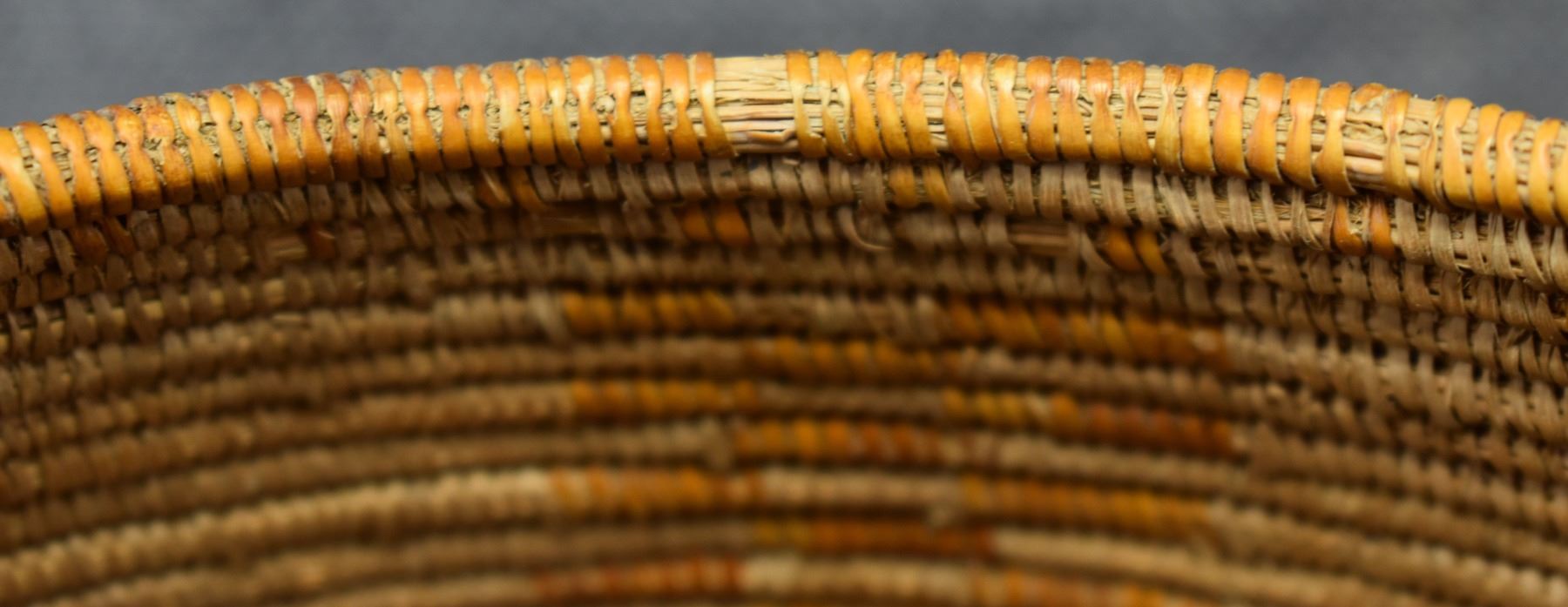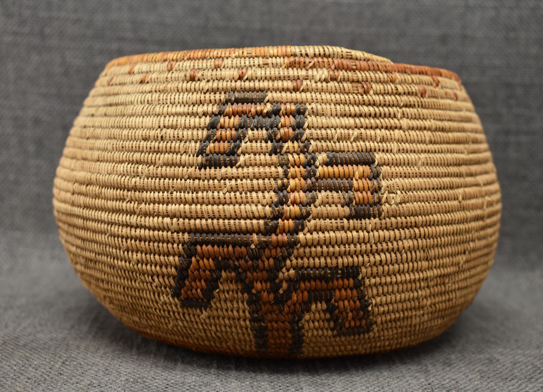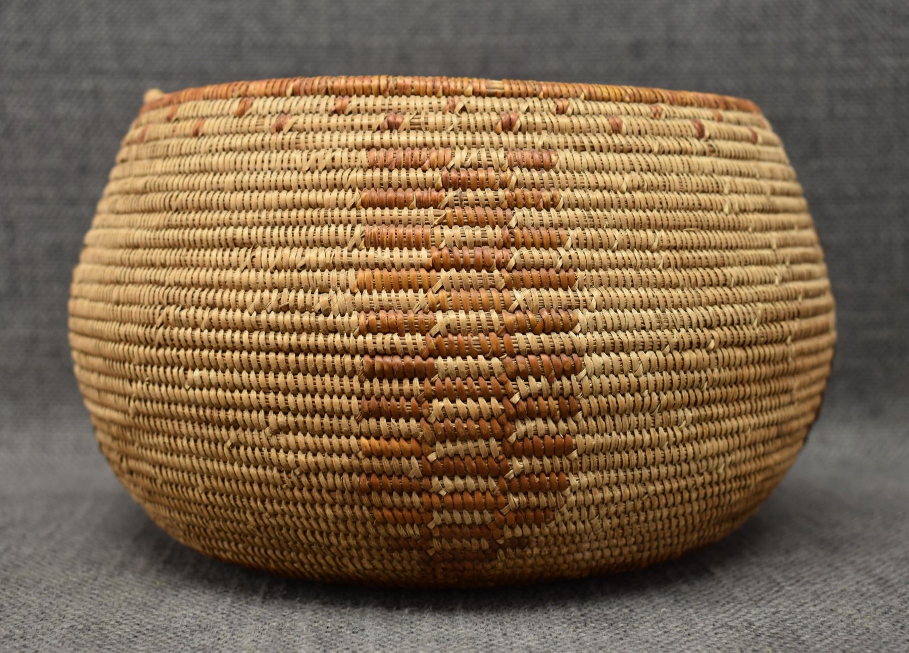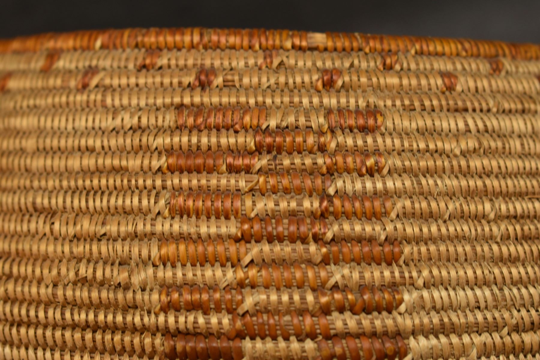 1920's California mission. Hand woven basketry bowl. 5'' x 8'' minor stitch loss