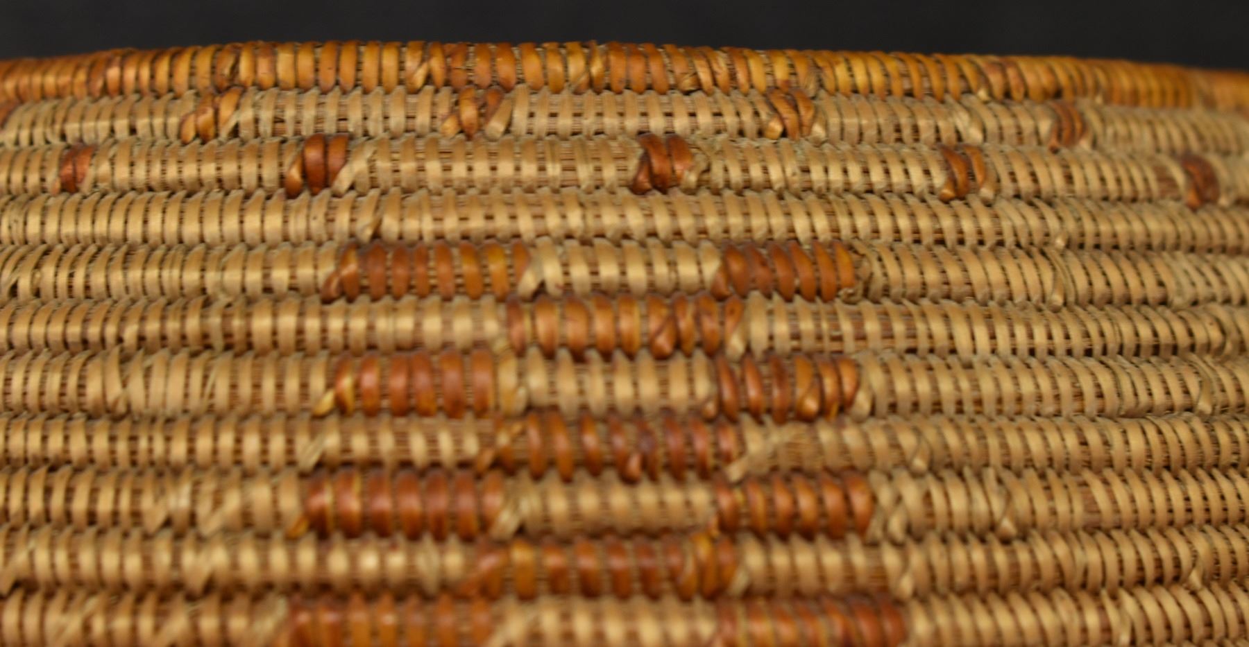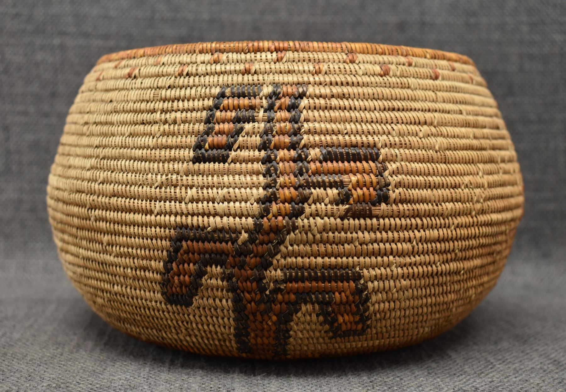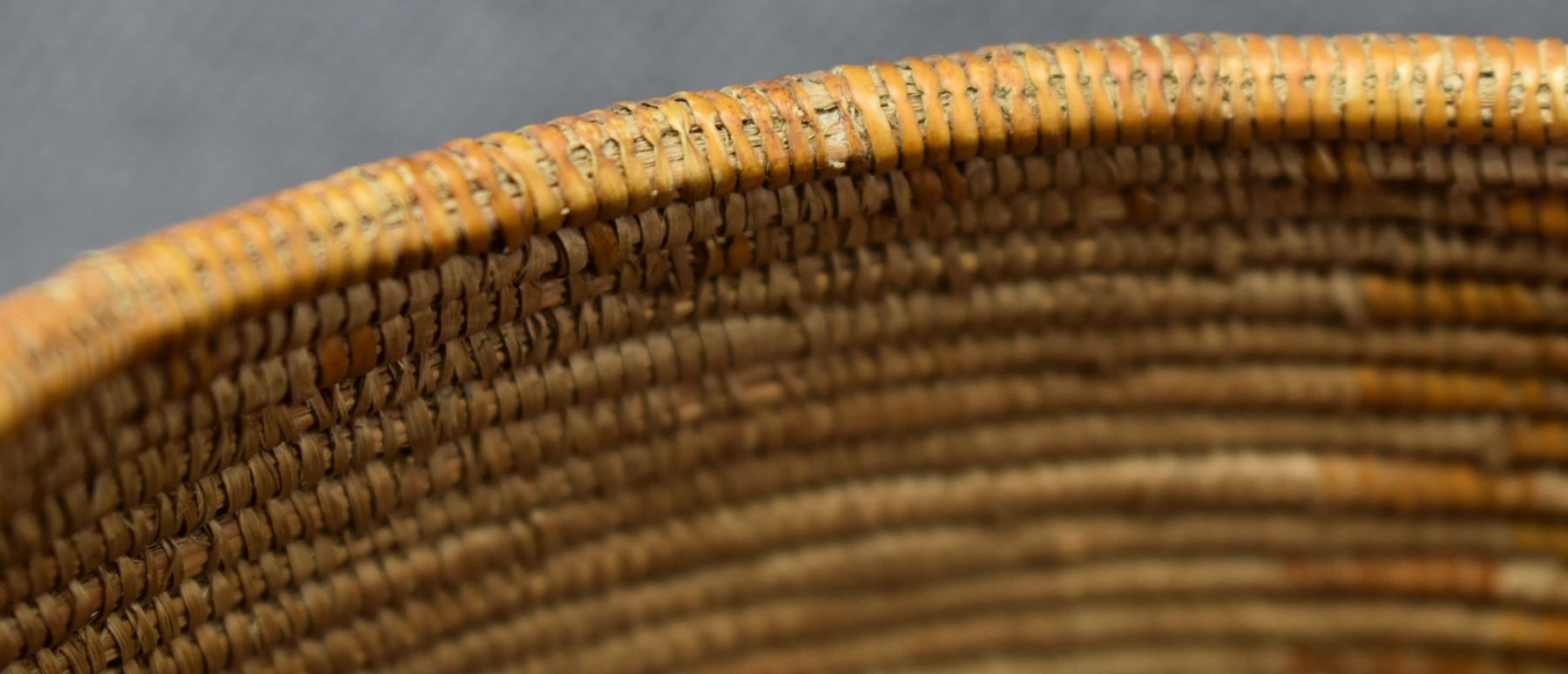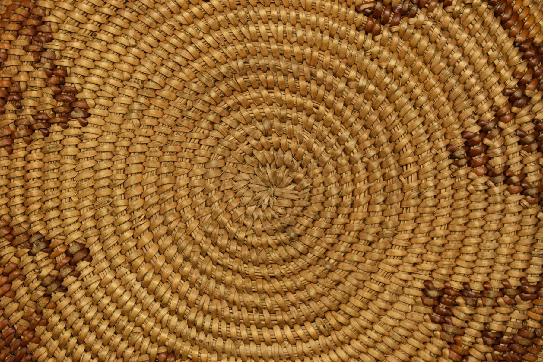1920's California mission. Hand woven basketry bowl. 5'' x 8'' minor stitch loss