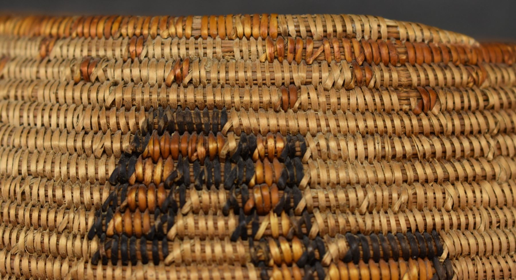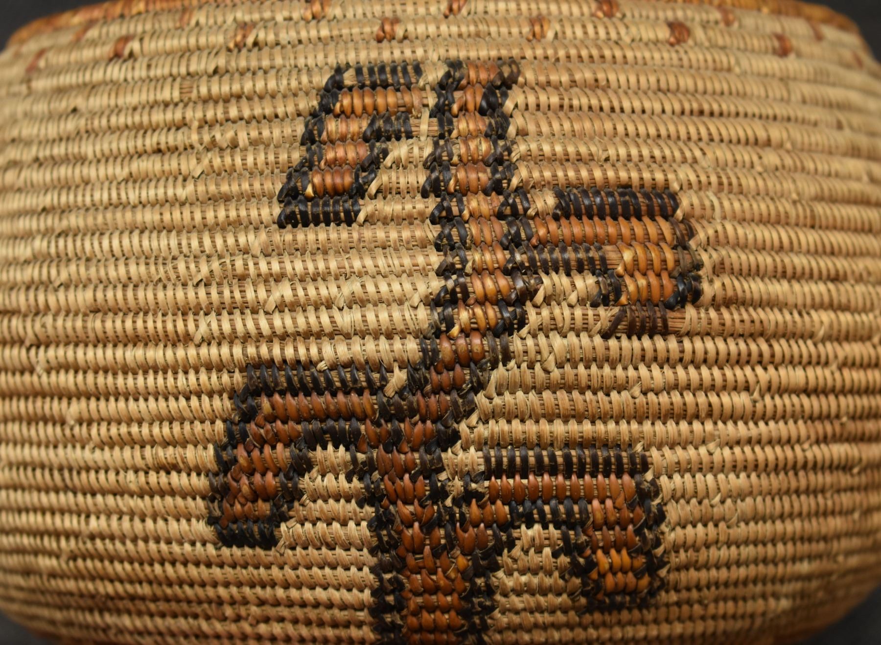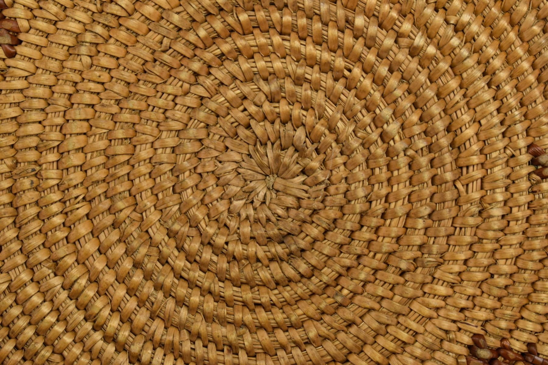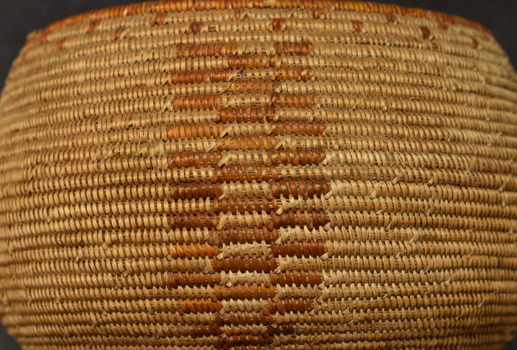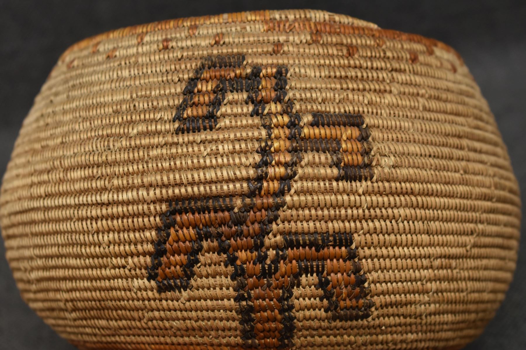 1920's California mission. Hand woven basketry bowl. 5'' x 8'' minor stitch loss