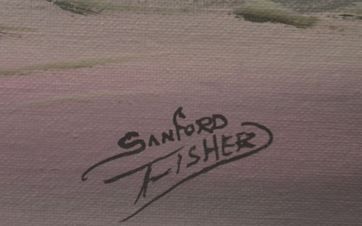 1970s 80s mixed media on hard board signed Sanford Fisher 18" x 24"