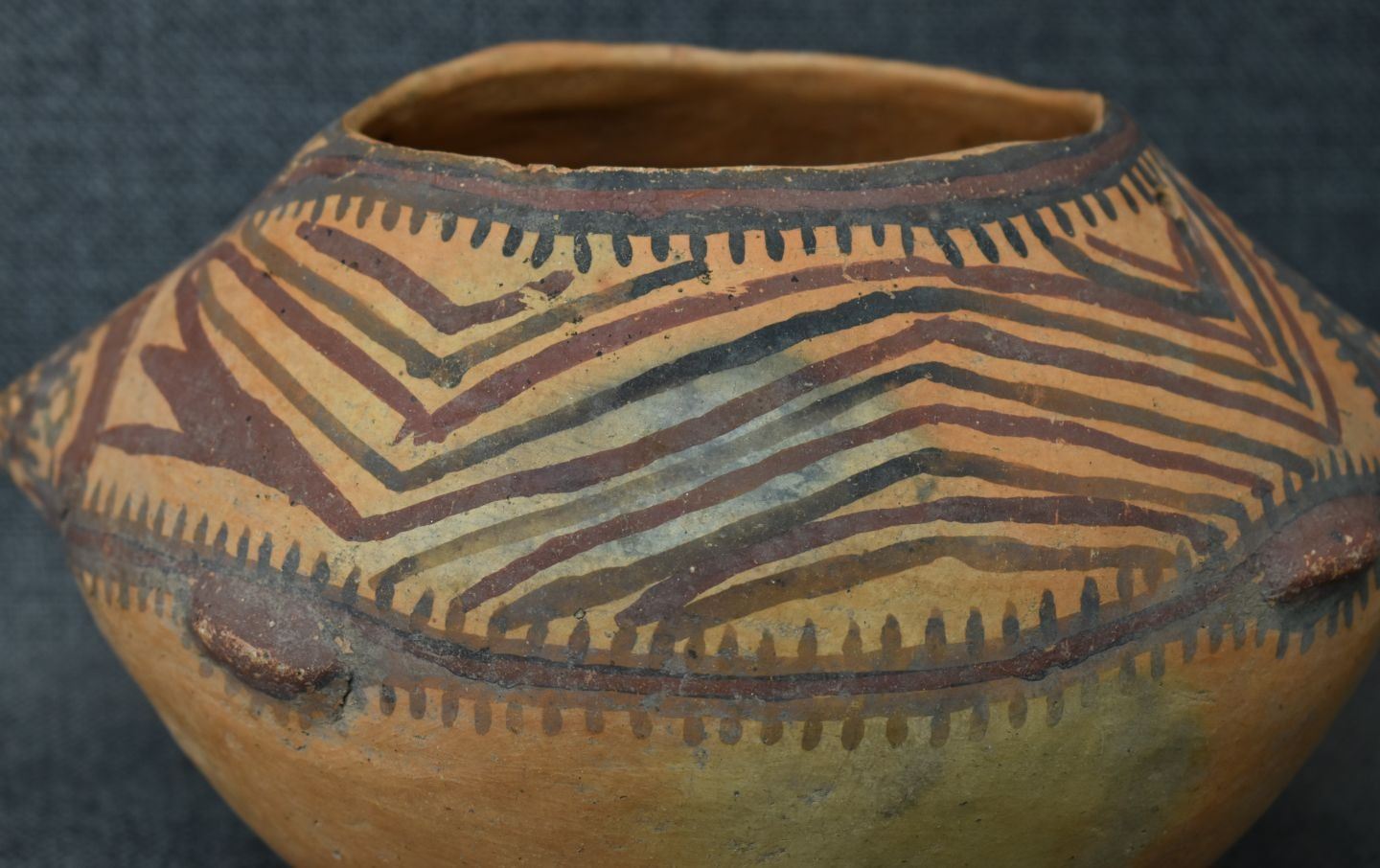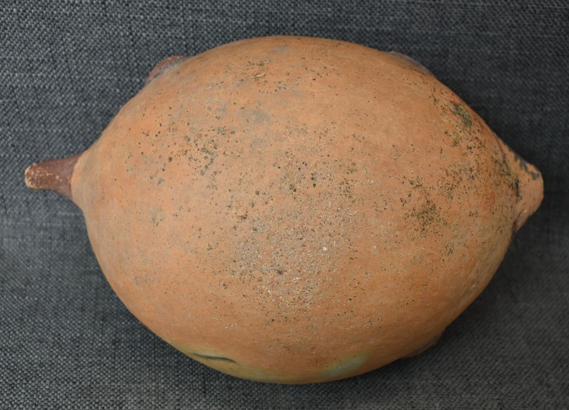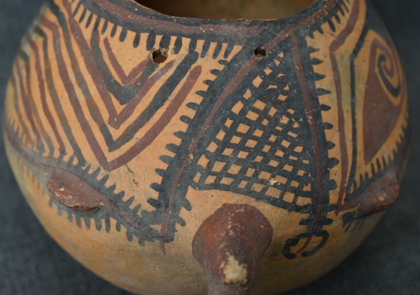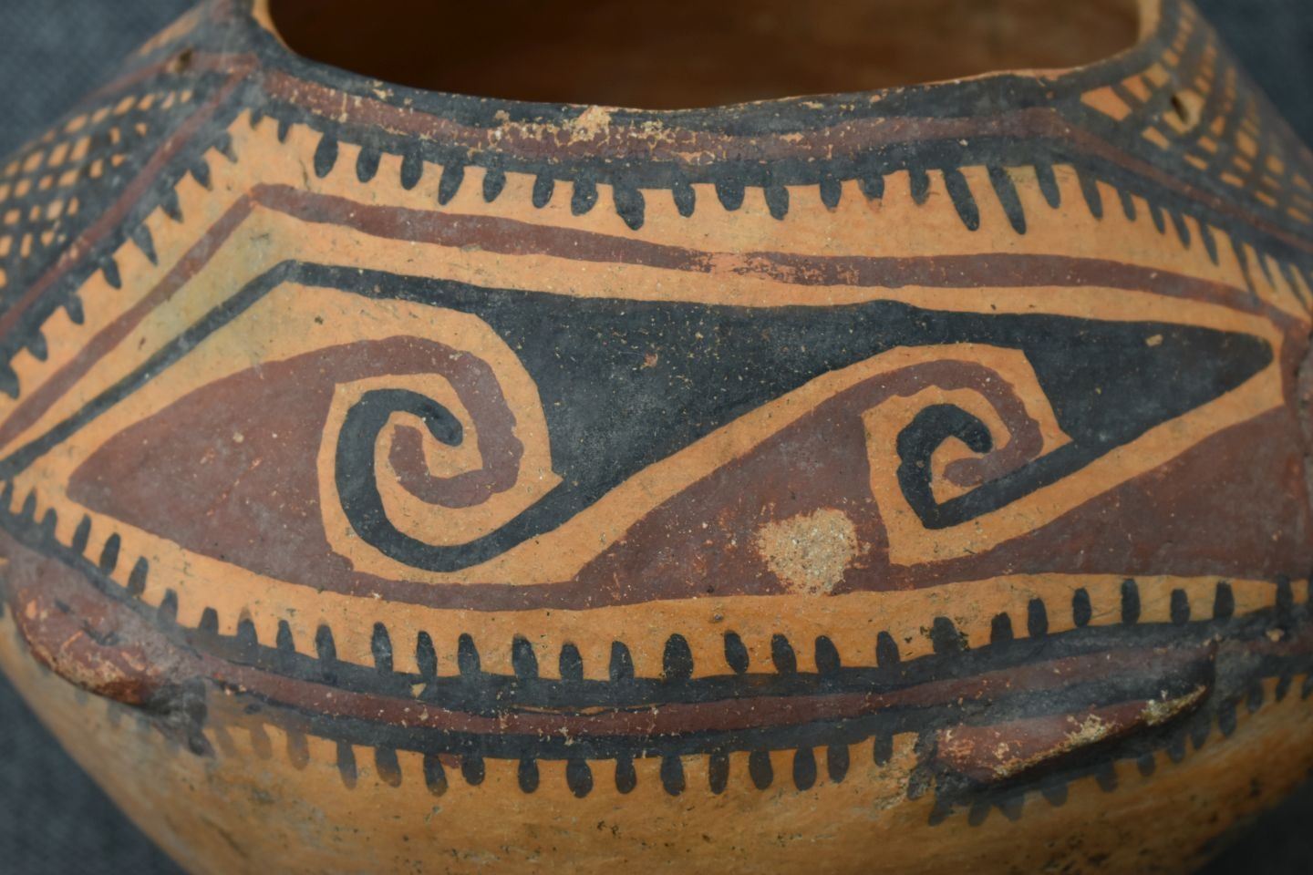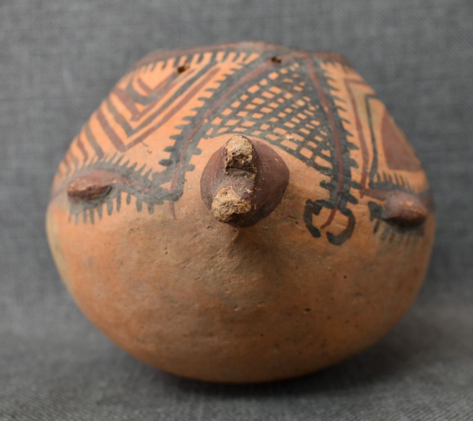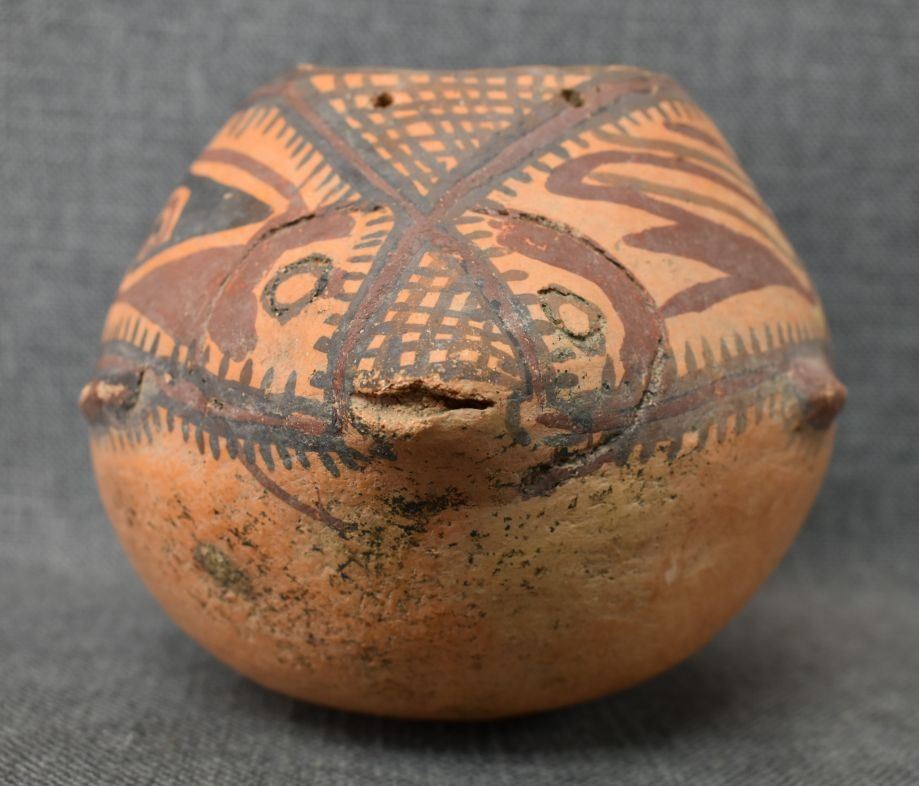 prehistoric Casa Grande, hand made fish effigy with polychrome painted design 5.5" x 10" x 6" as found condition