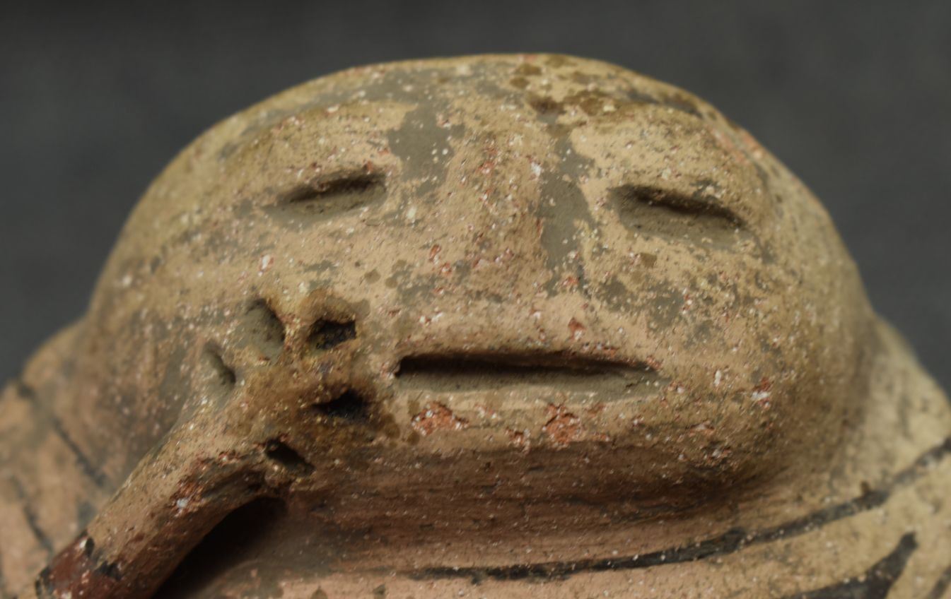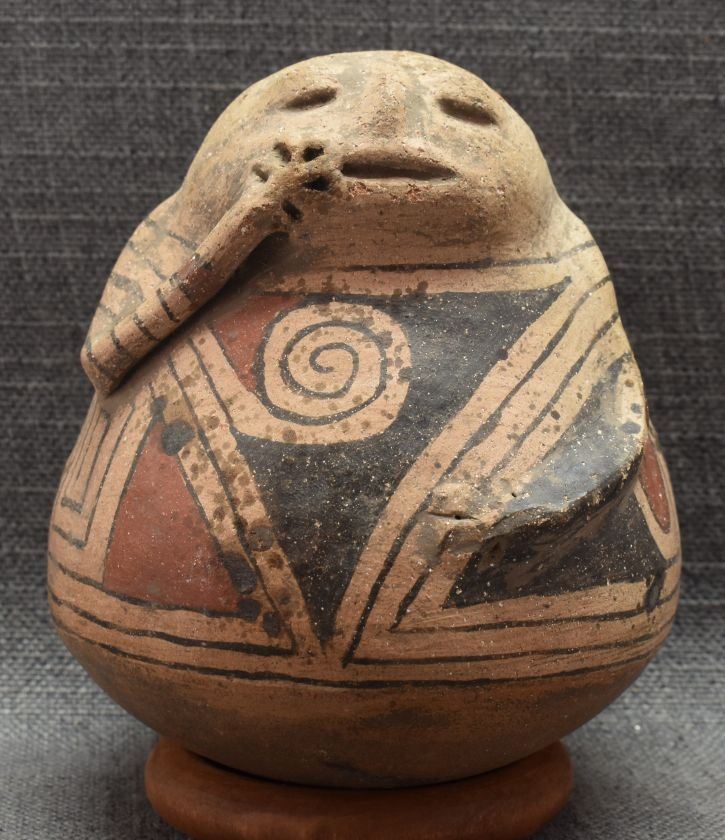 prehistoric Casas Grandes, hand made human effigy pot with polychrome painted design 6.5" x 5.5" as found condition