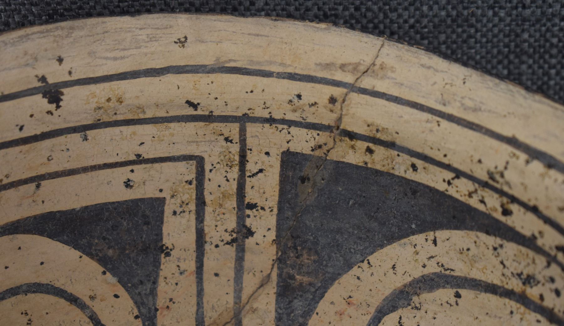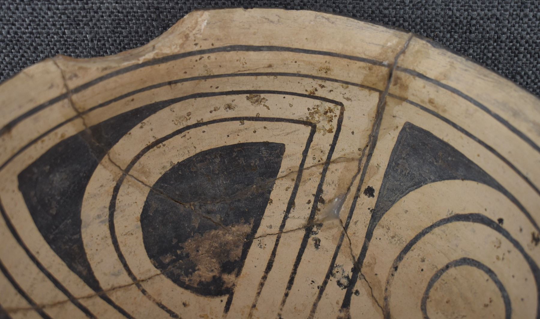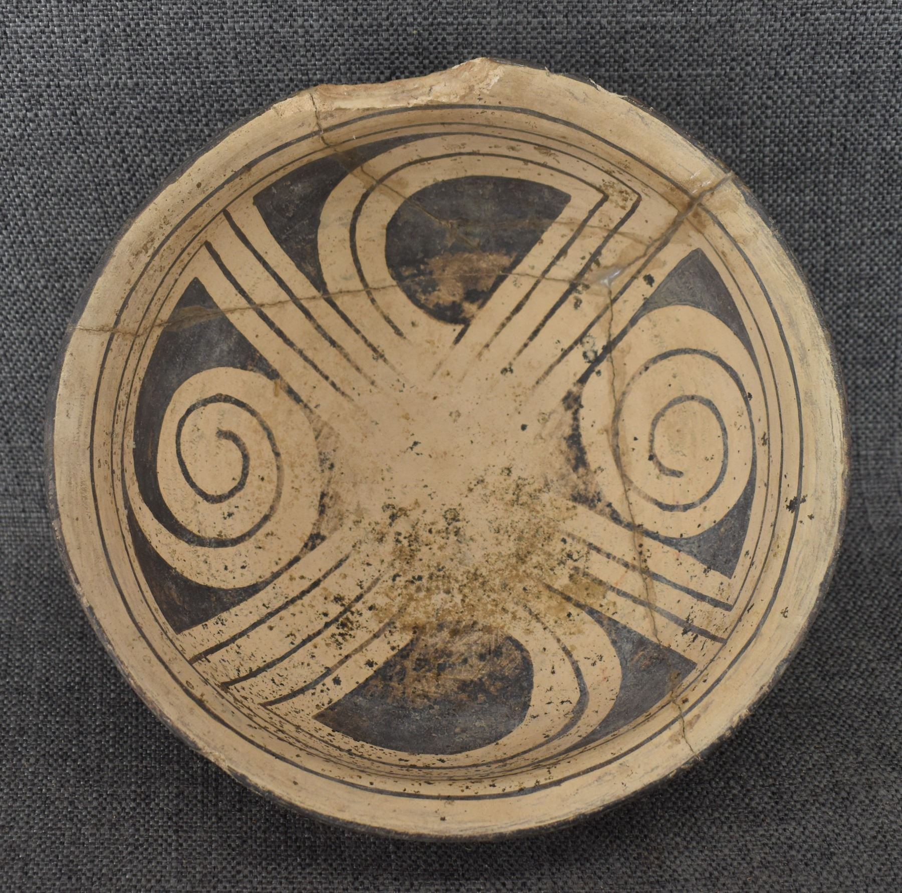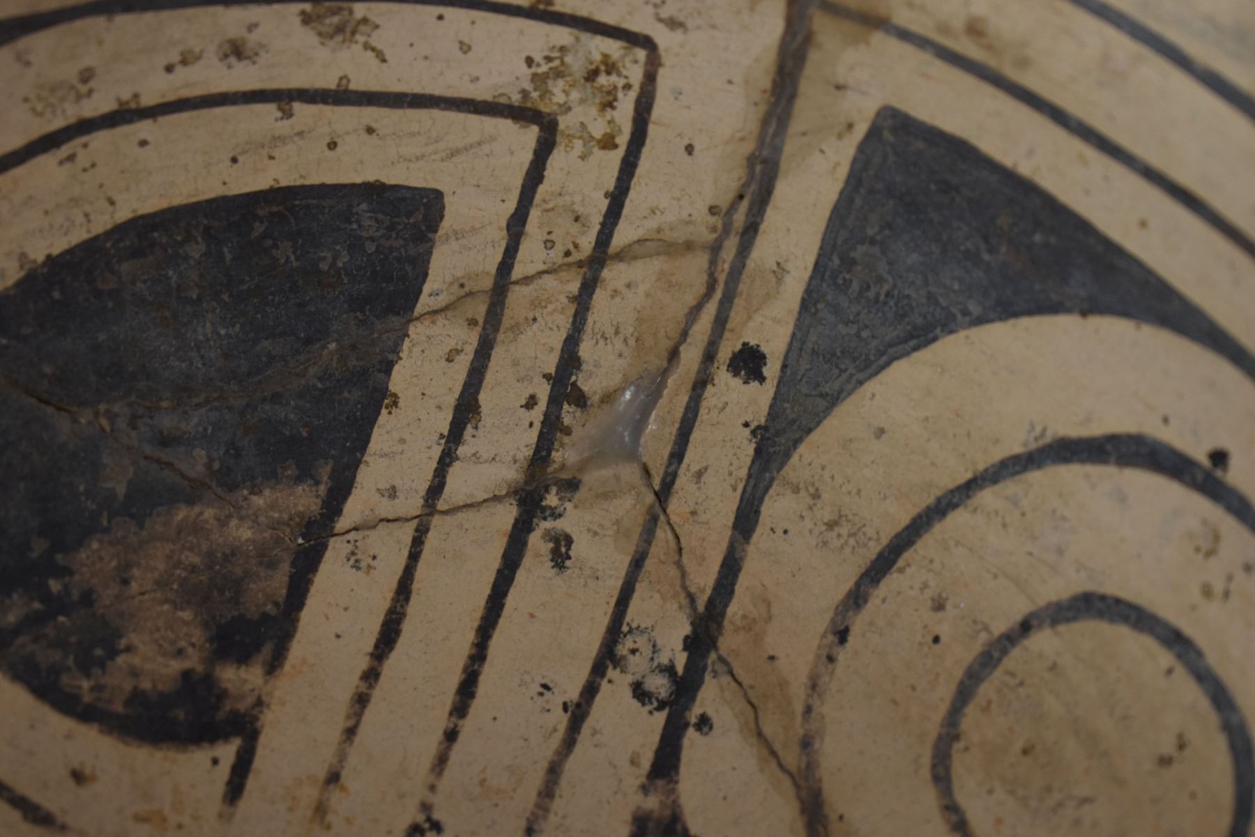 prehistoric Casa Grandes, hand coiled with painted geometric design 4" x 8.5" broken and glued